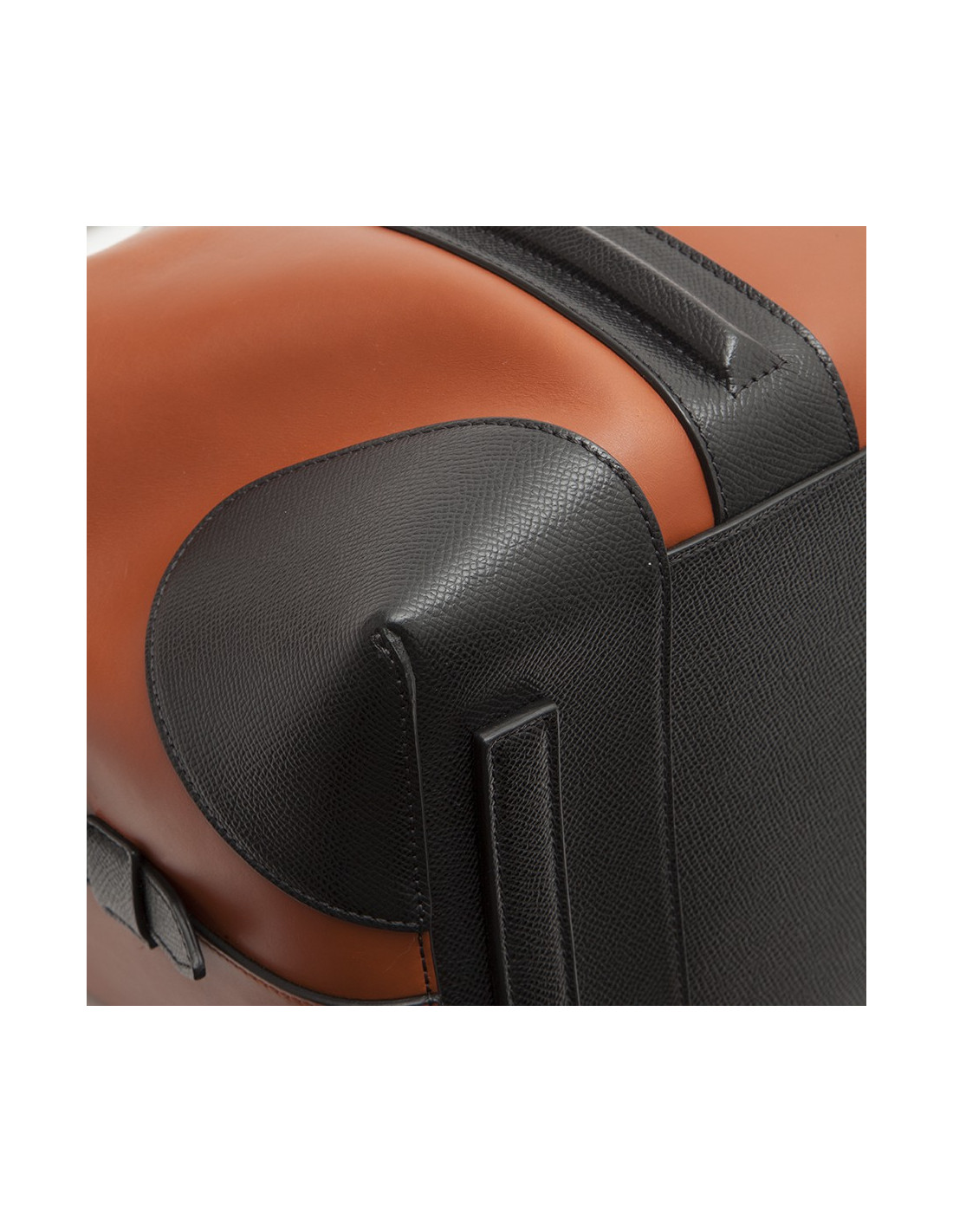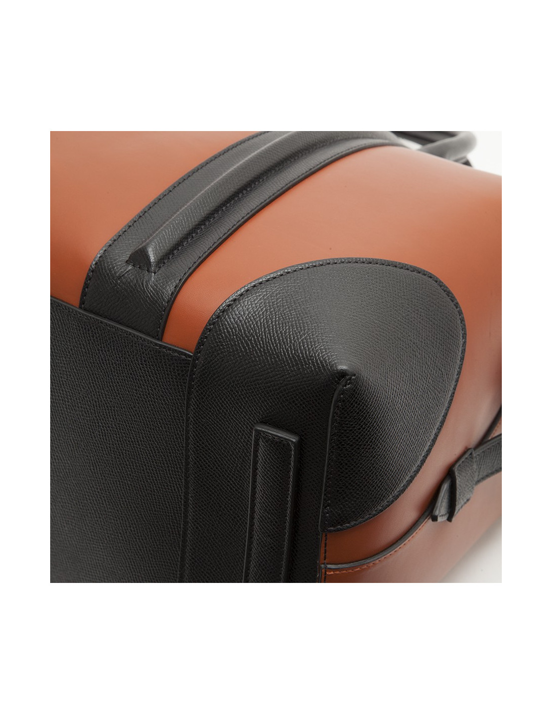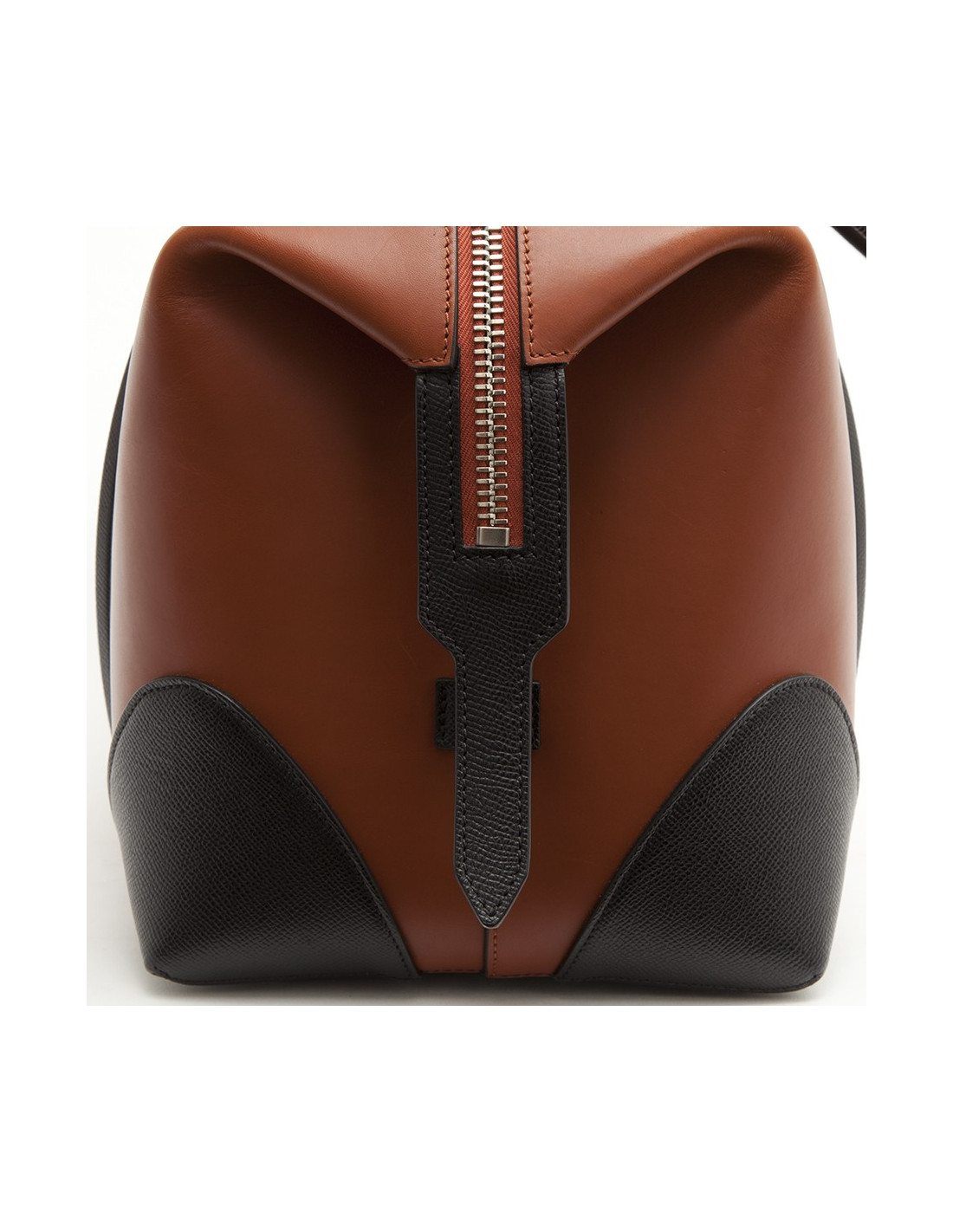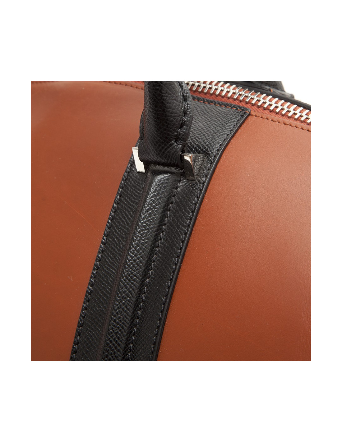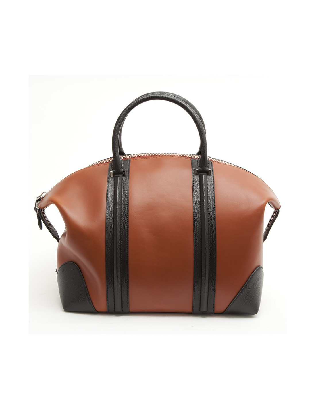 GIVENCHY 24 HOUR bag in box camel leather and black grained leather. Silver metal hardware. It has a double zipper. Worn by hand