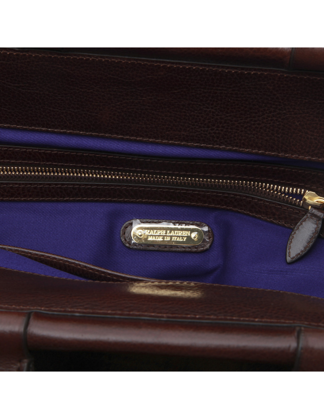 Details : Ralph Lauren bag in wool, English green tartan pattern, brown grained leather. Gold finish metal hardware. Worn by hand or on the shoulder with removable strap. Keys and address holder. Plastics are present on the clasp. It is lined in purple fabric with 4 pockets, one of which is zipped.