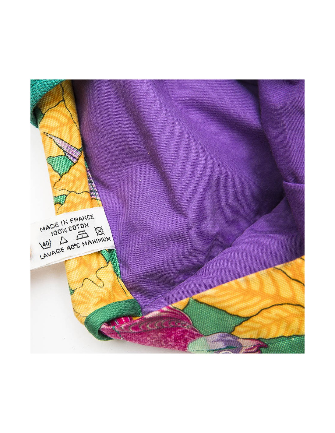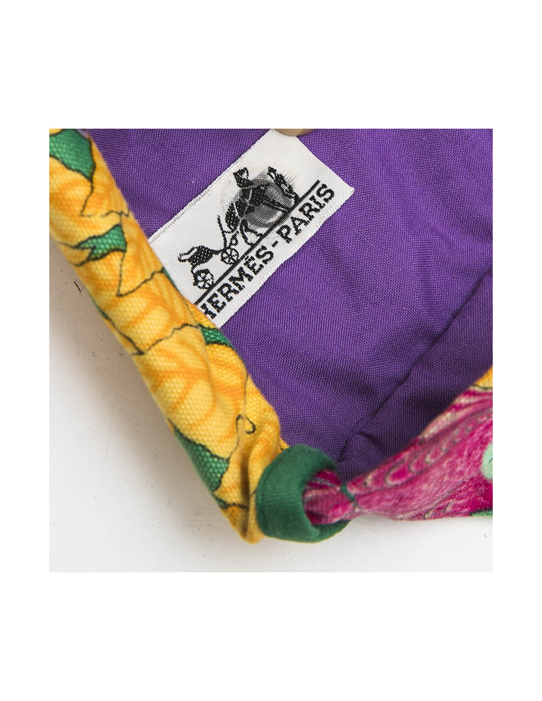 Hermès beach bag in multicolored flower printed cotton. The interior is in purple cotton. Made in France. In very good condition.
