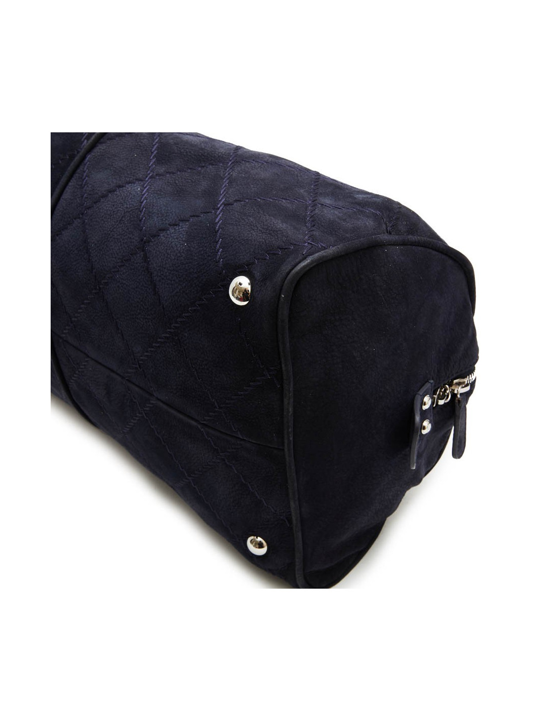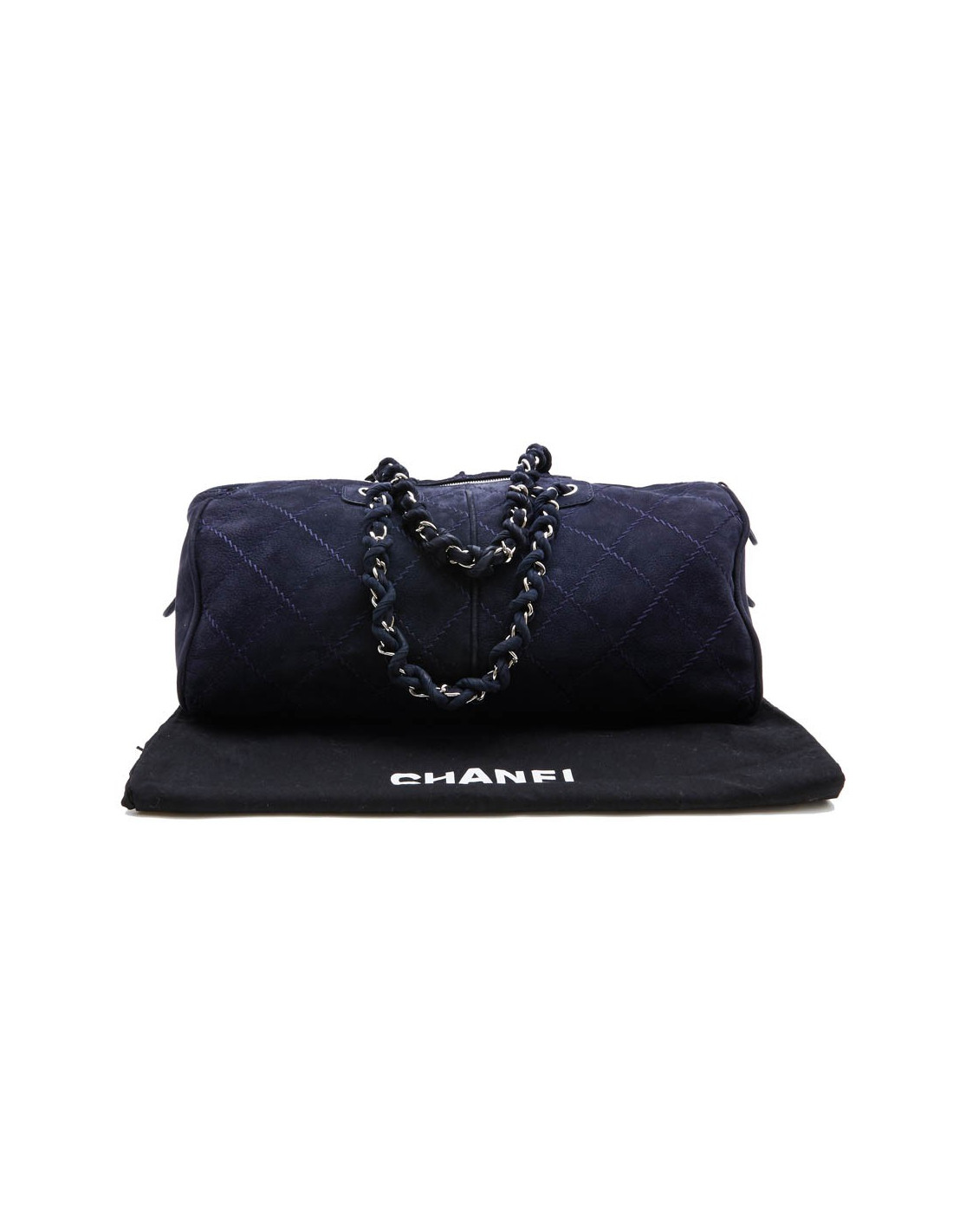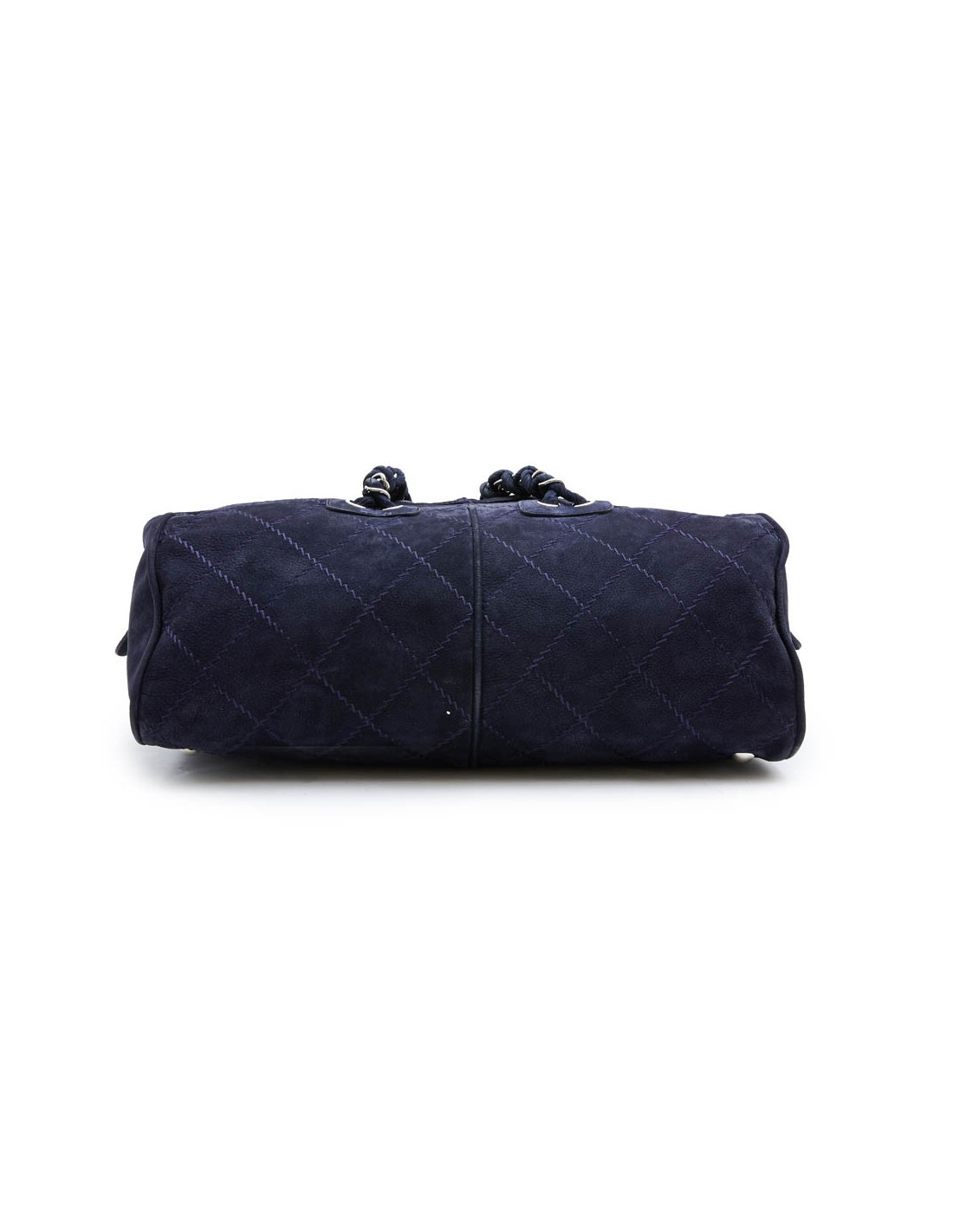 Chanel tote bag in navy blue quilted suede. Palladium silver metal hardware. Double zipper (missing on a closure). The interior is lined in black canvas with 3 pockets, one zipped.