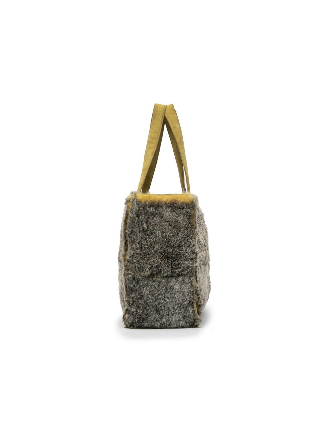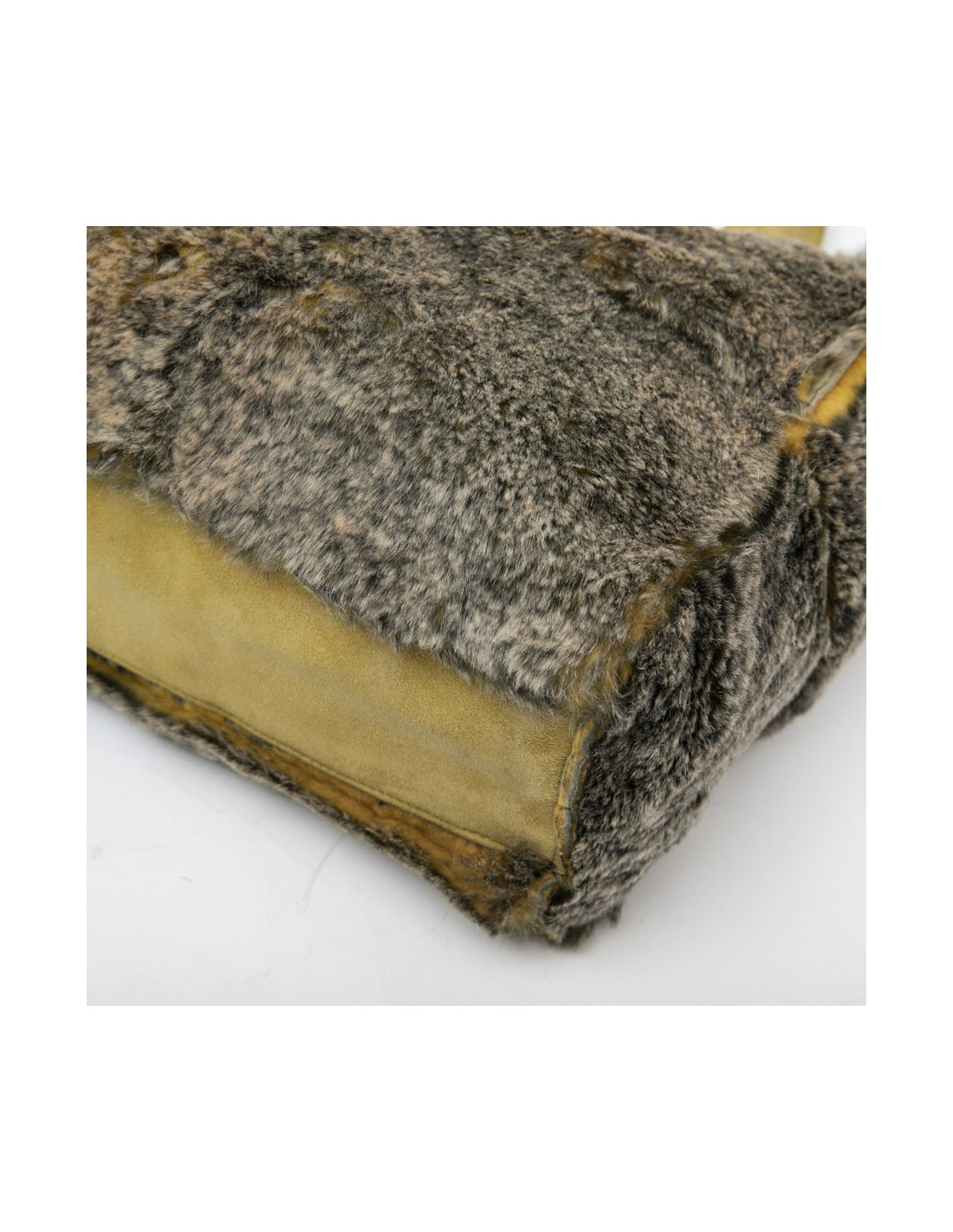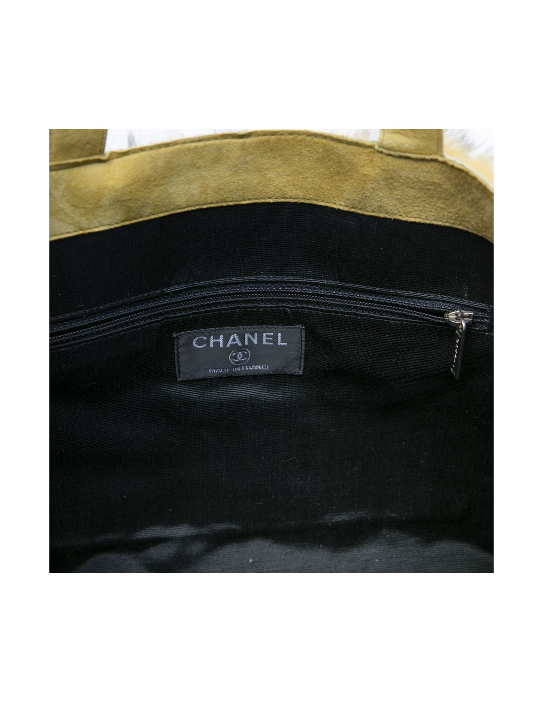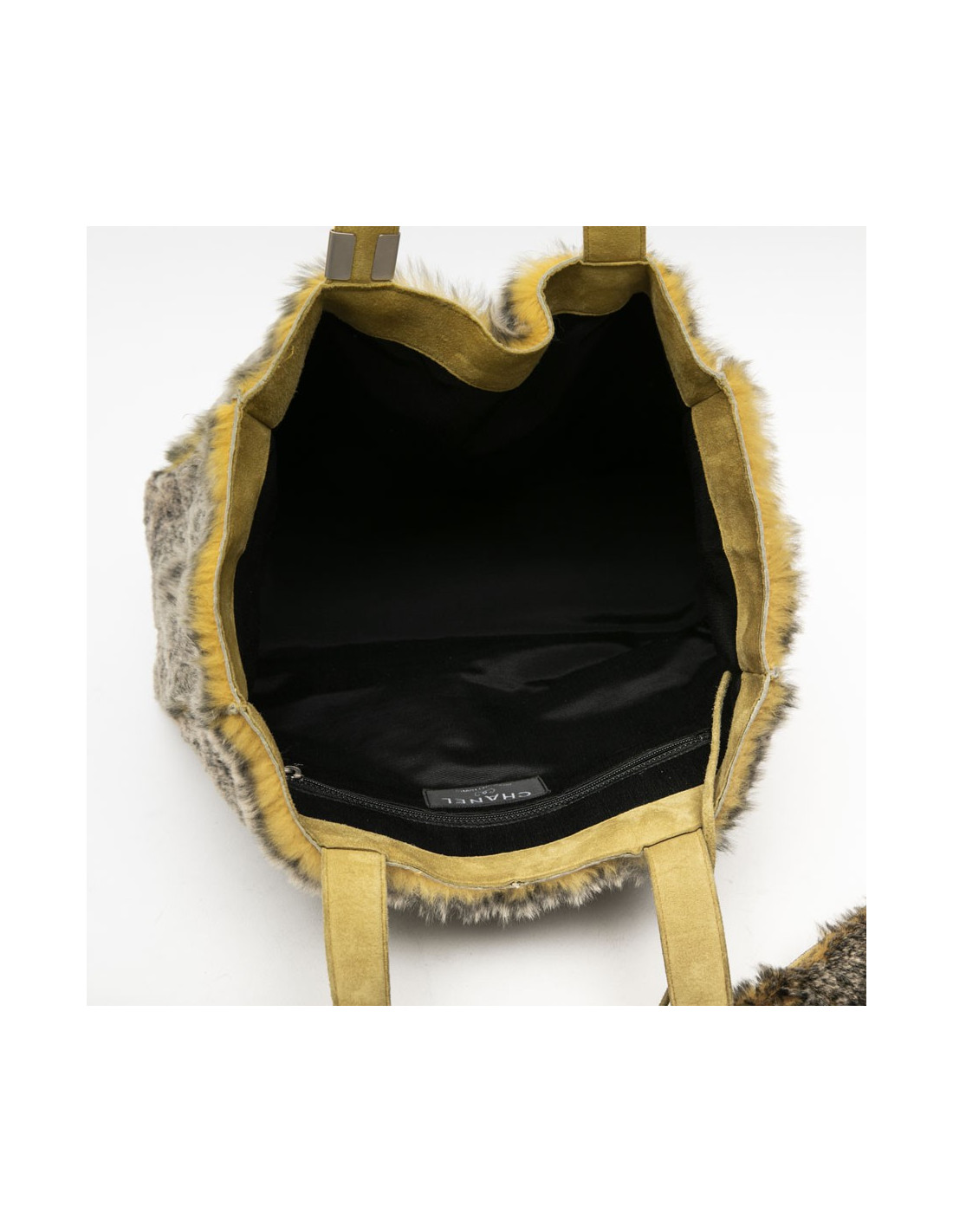Chanel bag in gray and yellow orylag fur. The interior is in black canvas with a pocket with zipper. There is a small removable zip pocket.