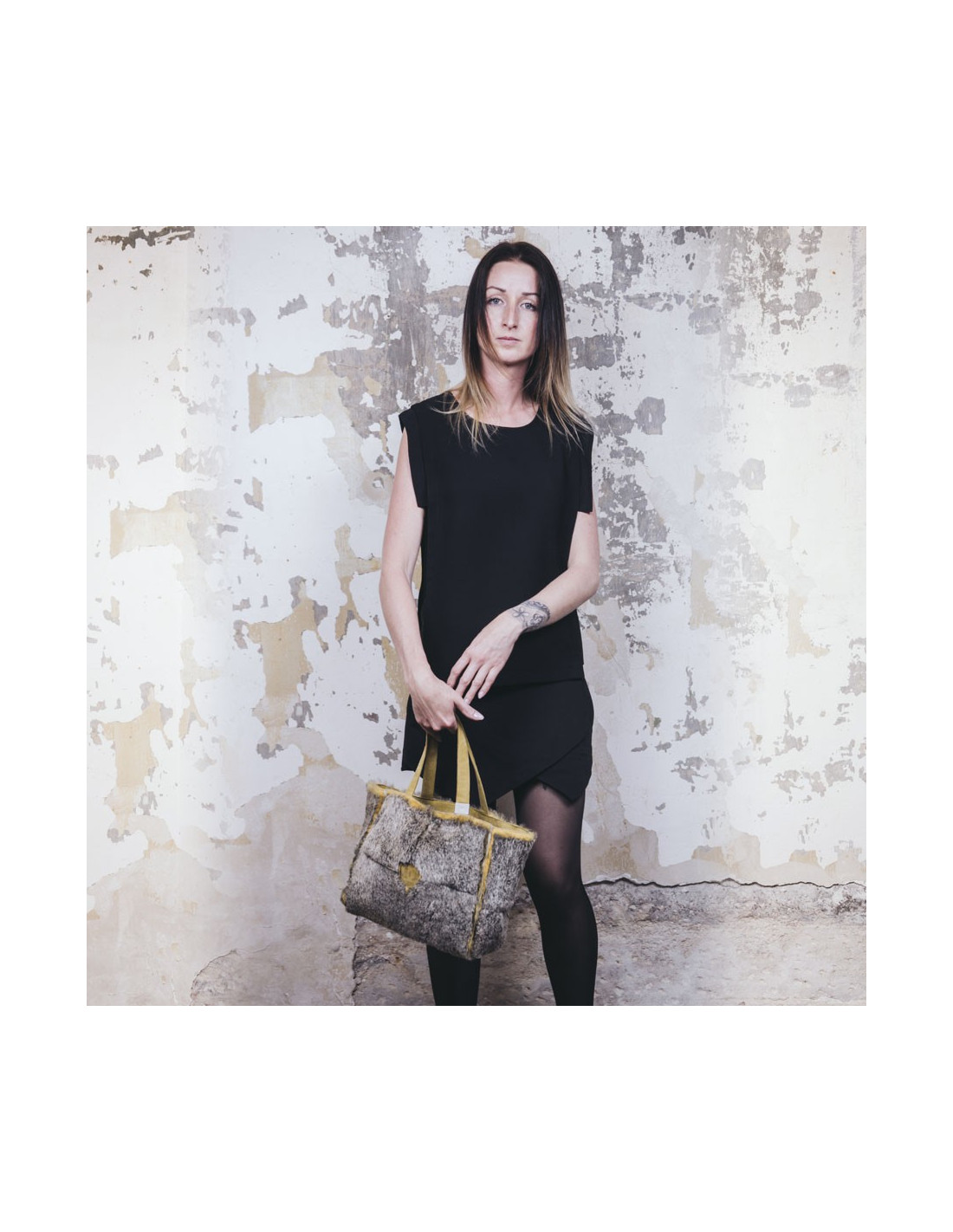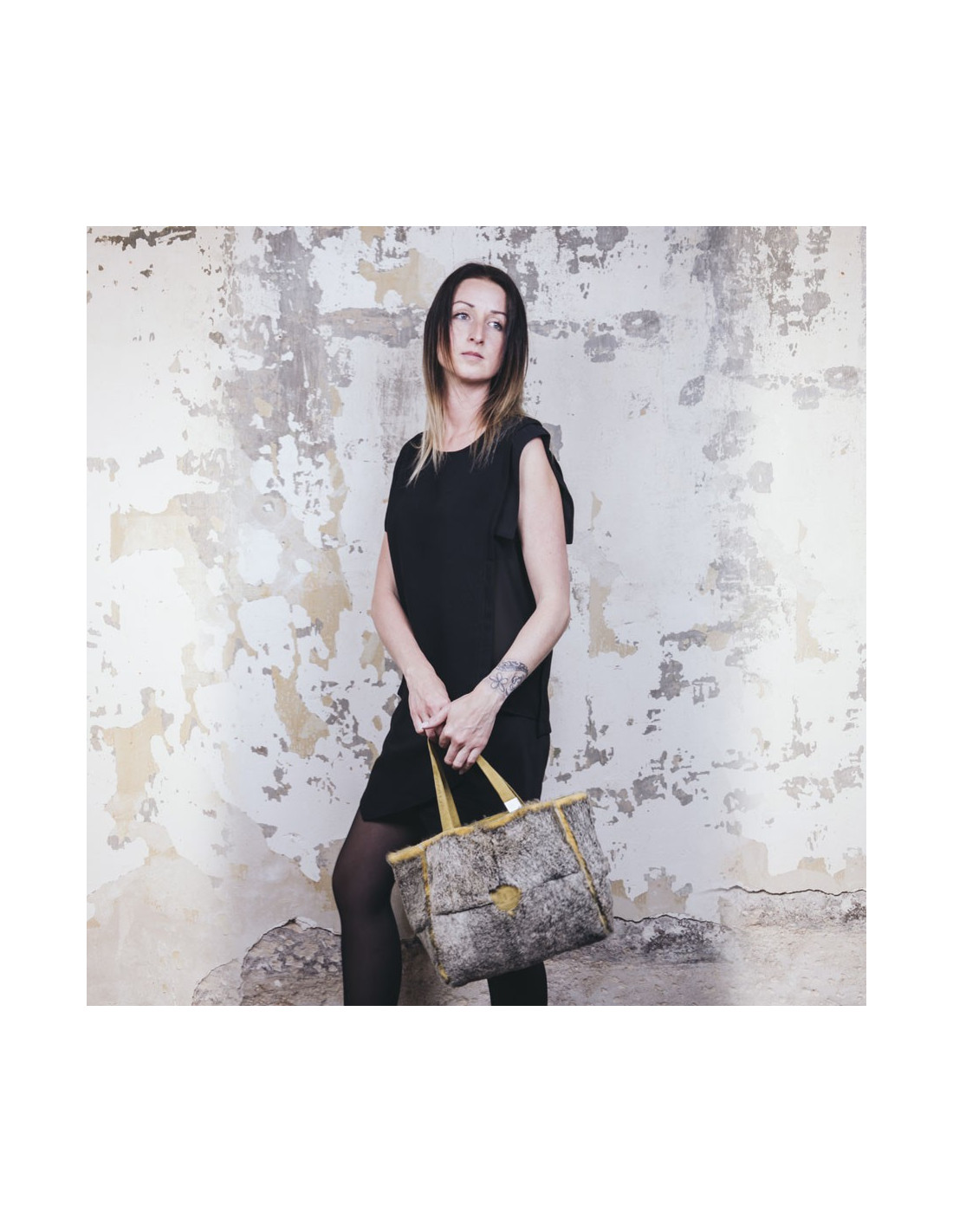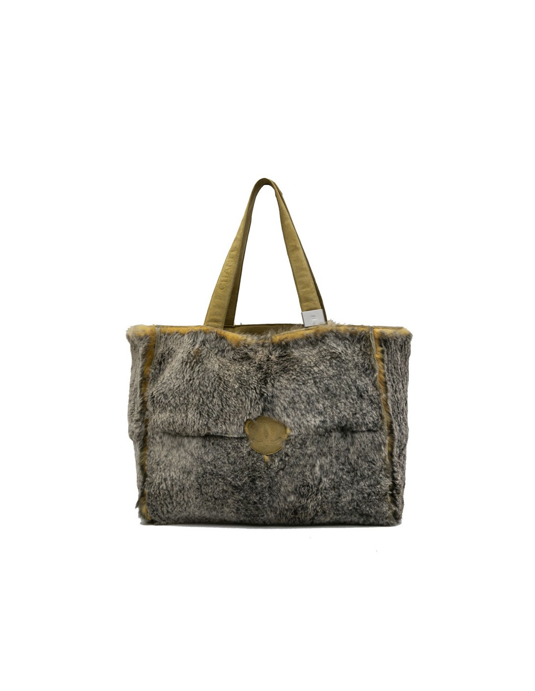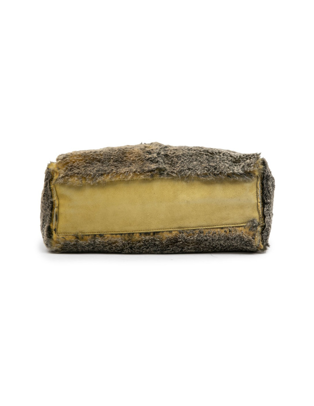 Chanel bag in gray and yellow orylag fur. The interior is in black canvas with a pocket with zipper. There is a small removable zip pocket.