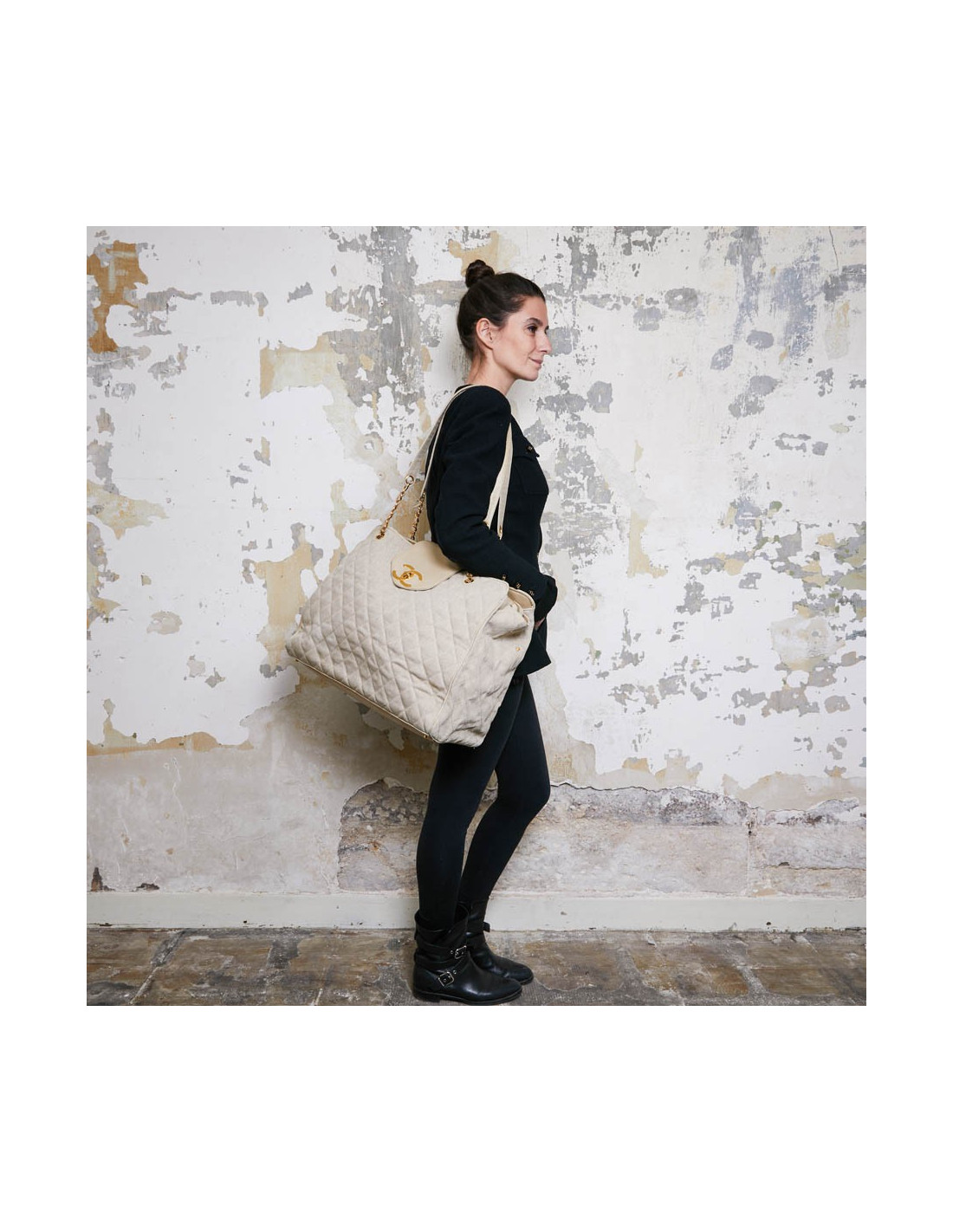 Last items in stock TOTES CHANEL vintage black lambskin tote bag CHANEL 32728 5,500.00 € CHANEL vintage black lambskin tote bag Condition : goodMade in FranceCollection : tote bagGender : womanMaterial : lambskin leatherColor : blackMeasurements (at the bottom) : 30 x 30 x 20 cmHandles : 76 cmHologram: yes (torn)Year : 1991-1994Hardware : gold finish metalLining: leatherDetails: 1 large zipped pocket Advantage Valois Vintage Paris : comes in... Add to cart