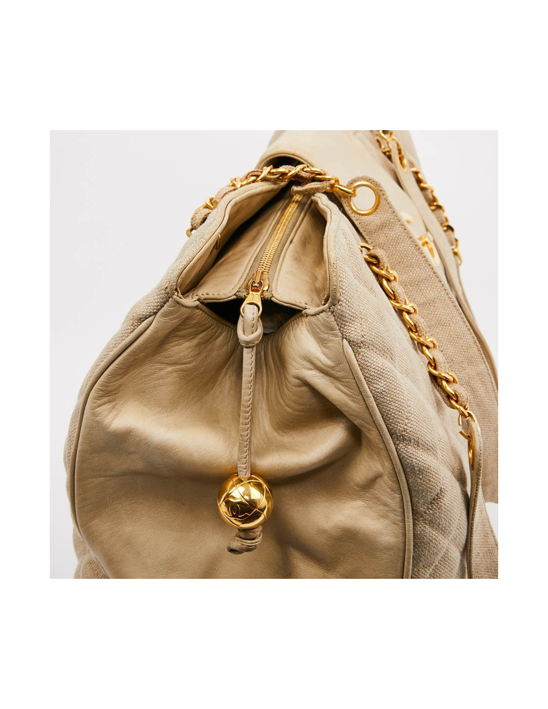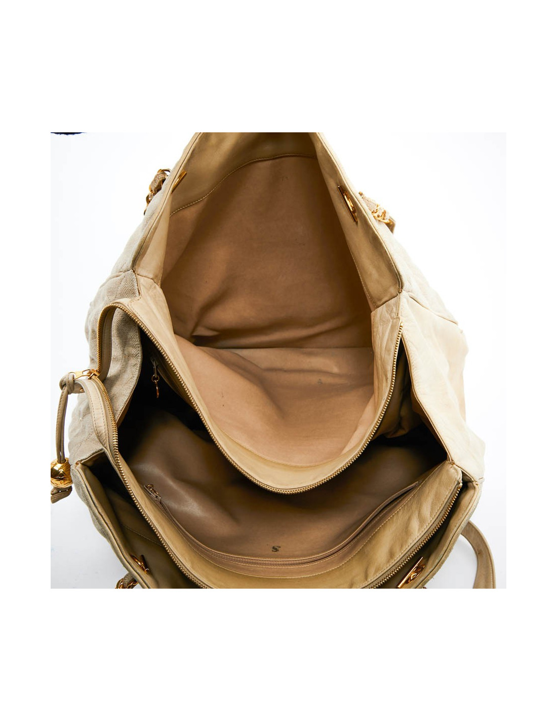 Last items in stock TOTES CHANEL tote bag quilted brown leather with gold threads CHANEL 28554 2,750.00 € CHANEL tote bag quilted brown leather with gold threads Condition: very goodMade in ItalyMaterial : lambskin leatherColor : dark brownMeasurements : 33 x 25 x 15 cmHardware: ruthenium silver finish metal Add to cart