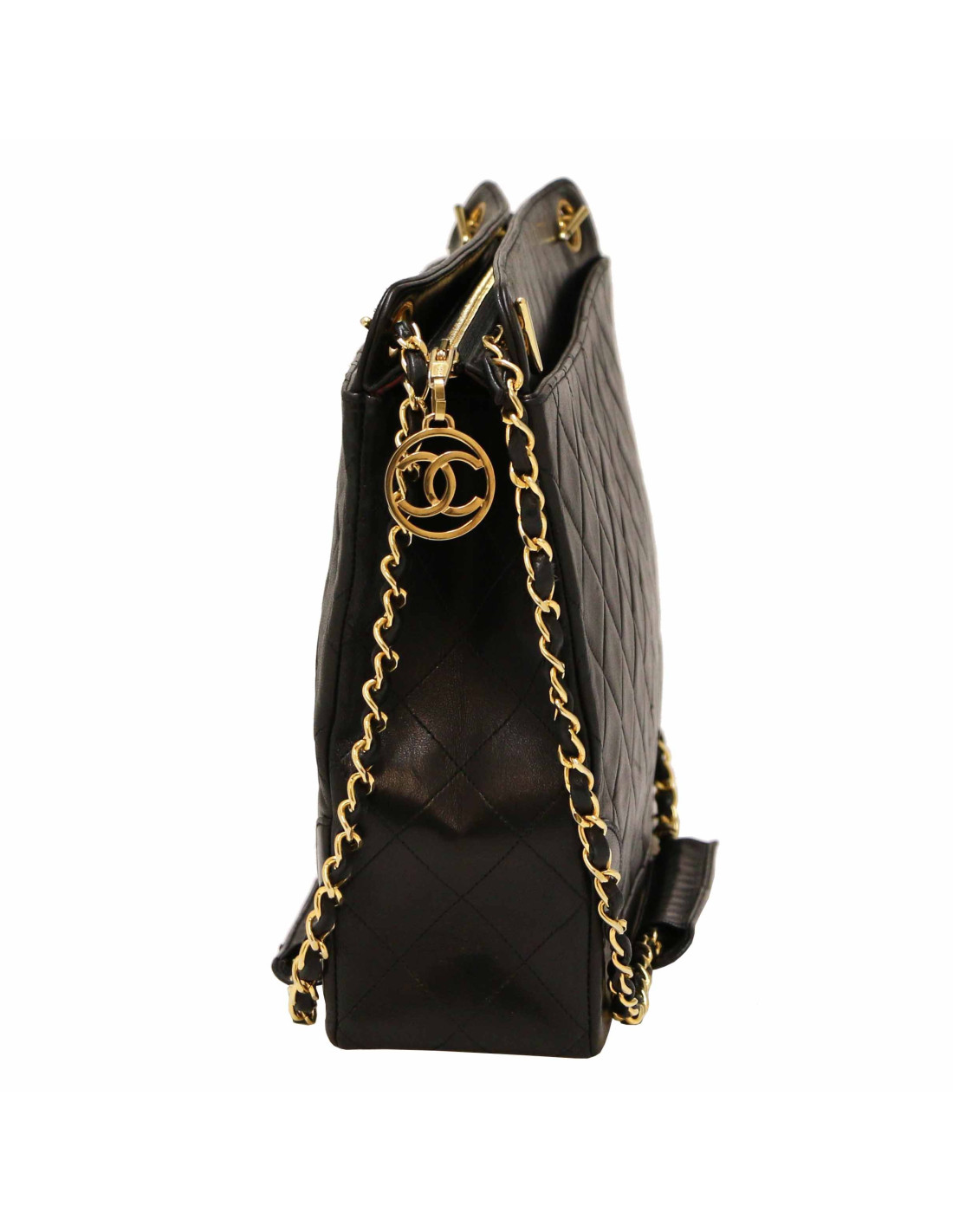 Last items in stock TOTES CHANEL vintage black lambskin tote bag CHANEL 32728 5,500.00 € CHANEL vintage black lambskin tote bag Condition : goodMade in FranceCollection : tote bagGender : womanMaterial : lambskin leatherColor : blackMeasurements (at the bottom) : 30 x 30 x 20 cmHandles : 76 cmHologram: yes (torn)Year : 1991-1994Hardware : gold finish metalLining: leatherDetails: 1 large zipped pocket Advantage Valois Vintage Paris : comes in... Add to cart