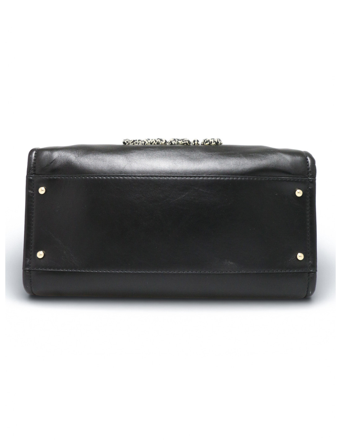 The leather handles allow structured hand carry while the leather interwoven chain strap offers comfortable and sophisticated shoulder wear.