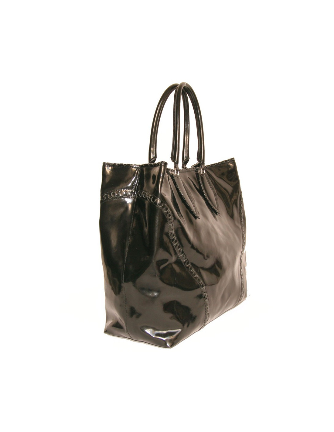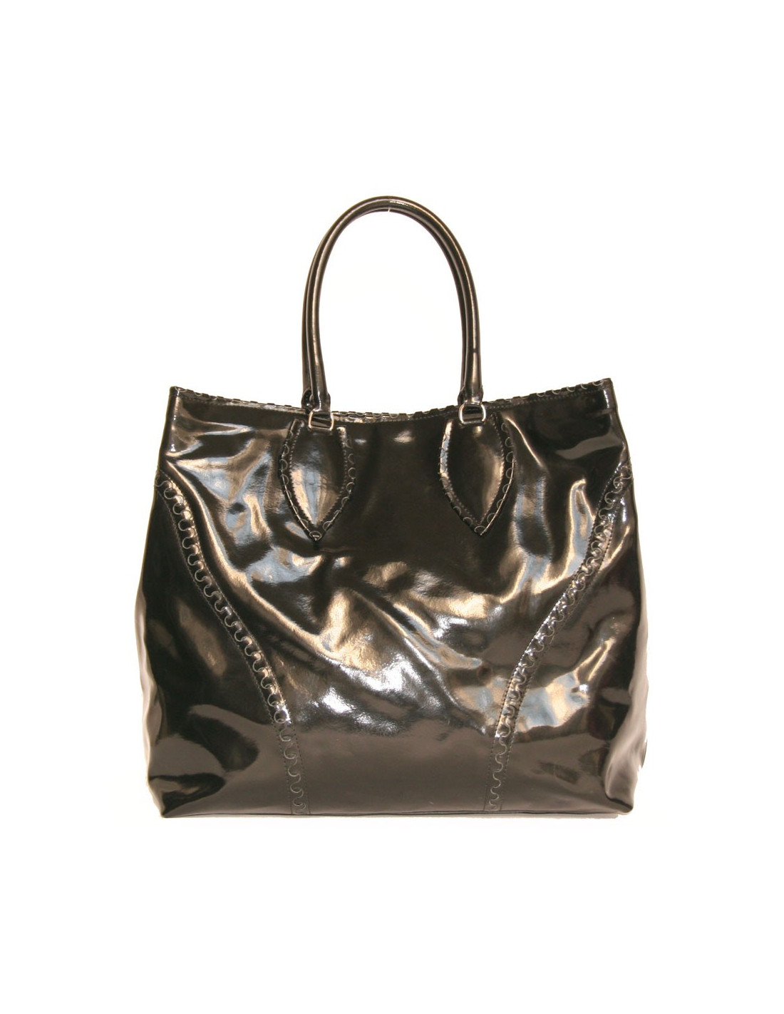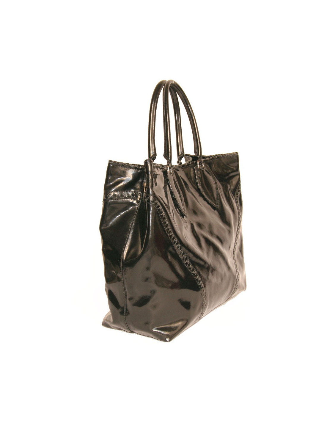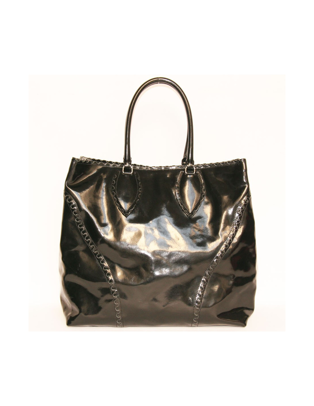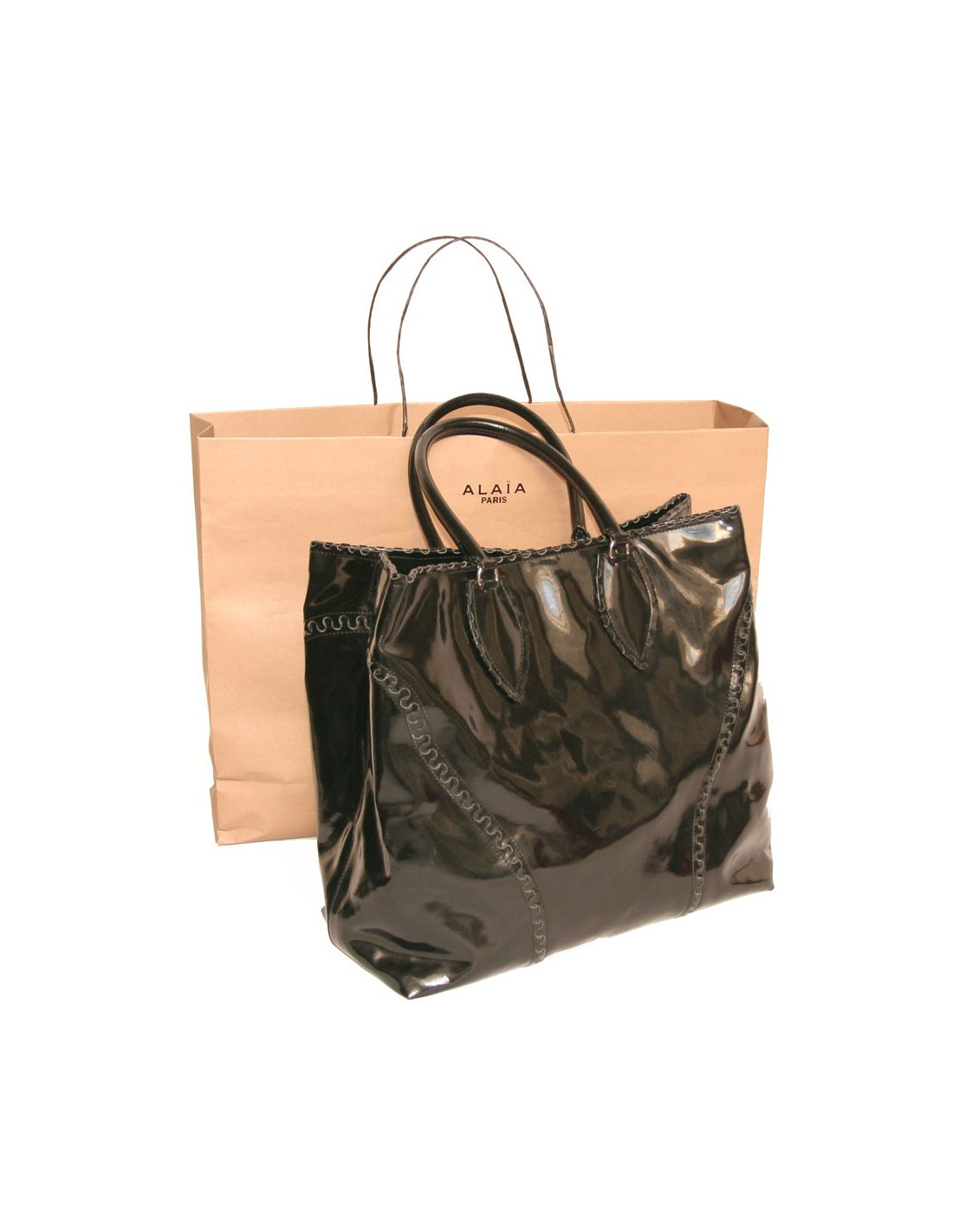 Alaïa Large tote bag in black patent leather. The hardware is in silver metal.
