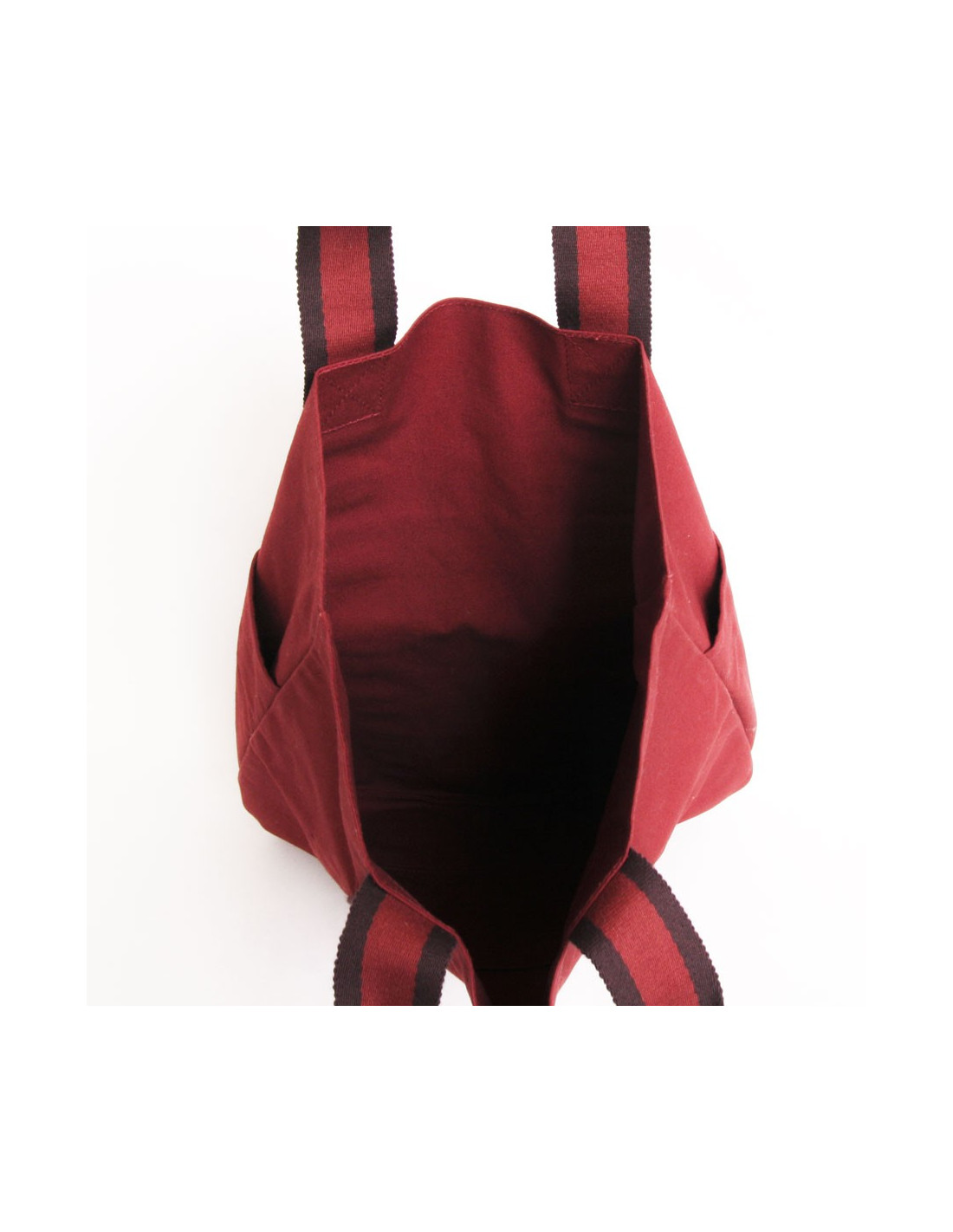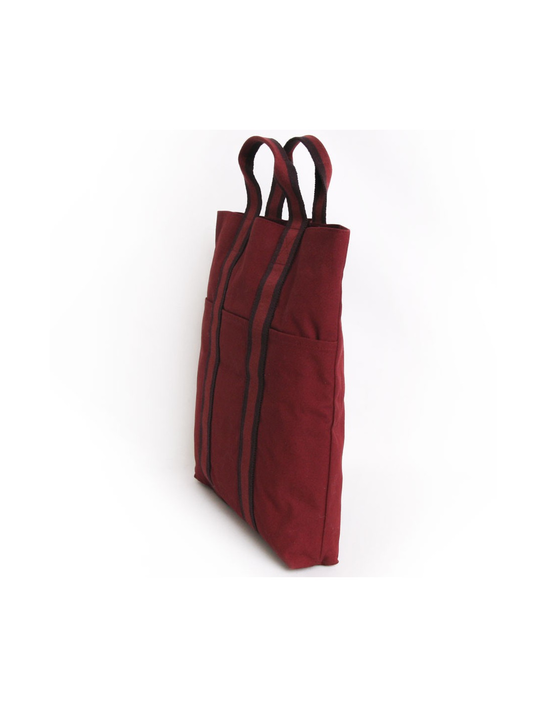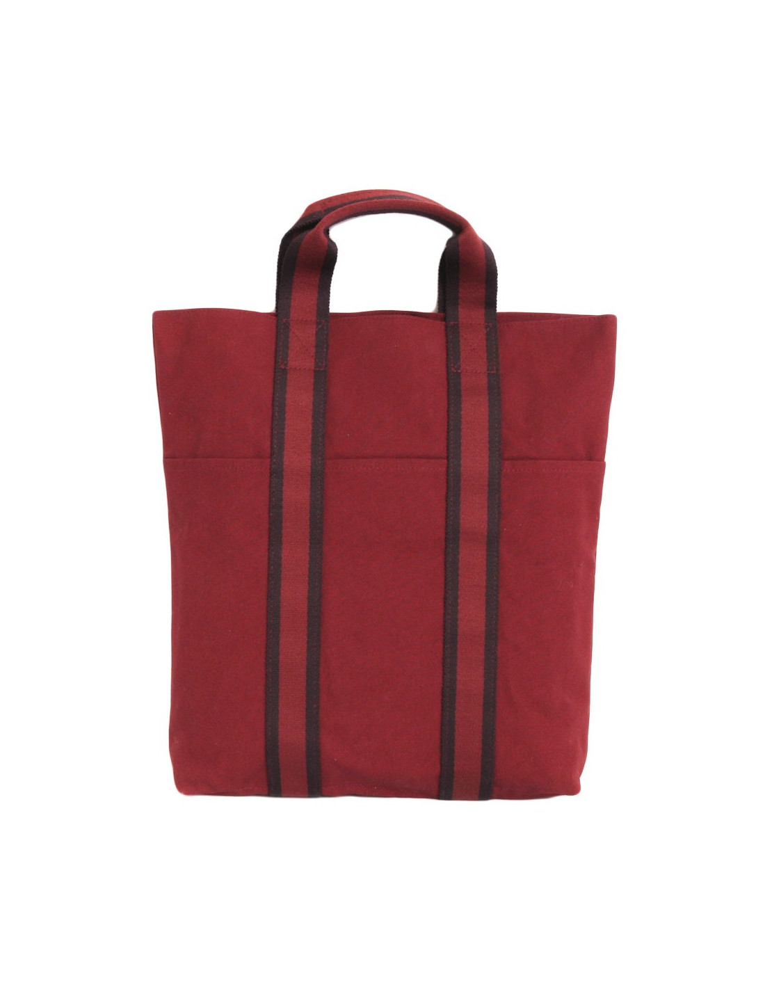 Hermes, red tote bag with red strips H and dark purple H, missing brand label. New condition. It is handmade and may contain folders or even a computer.