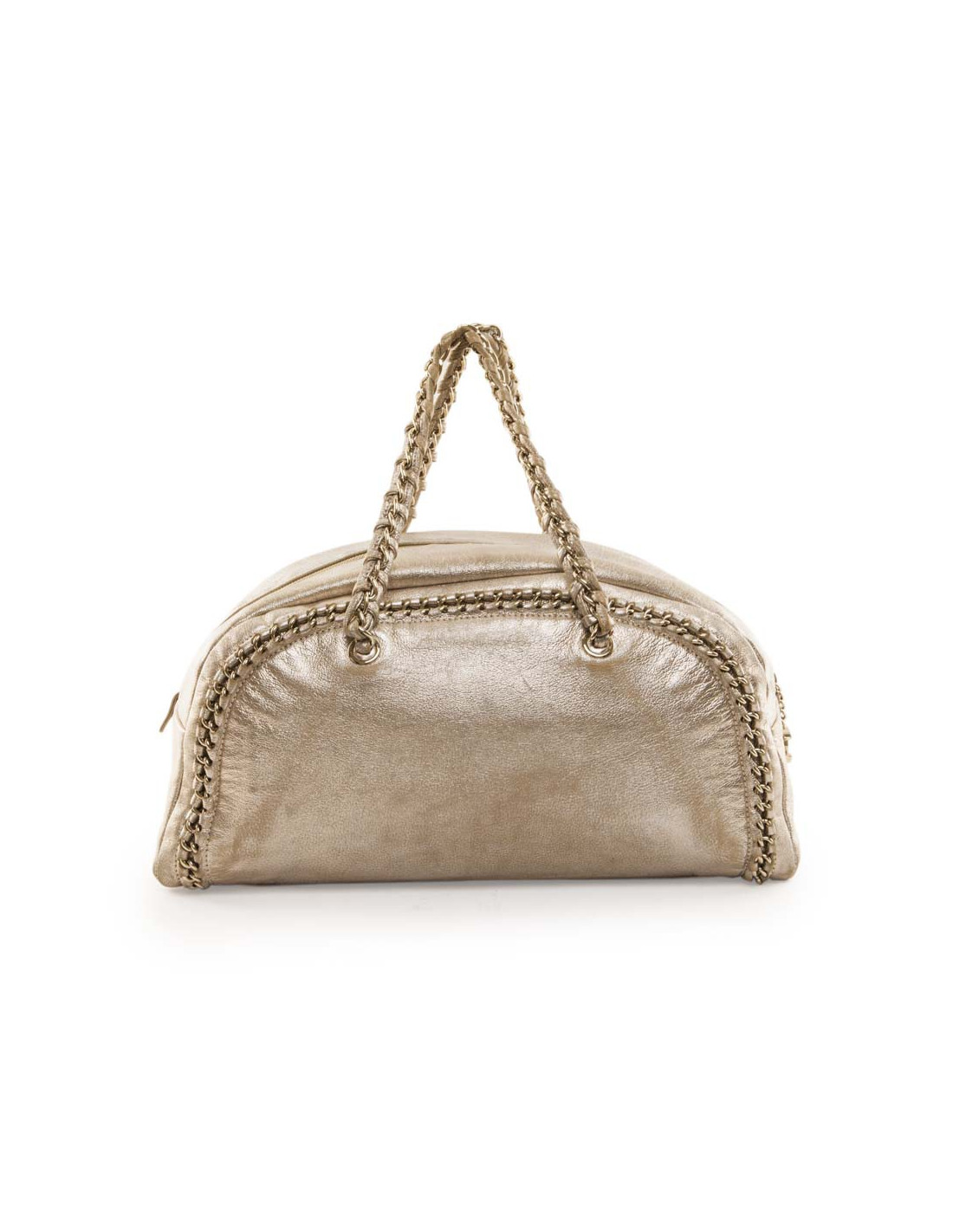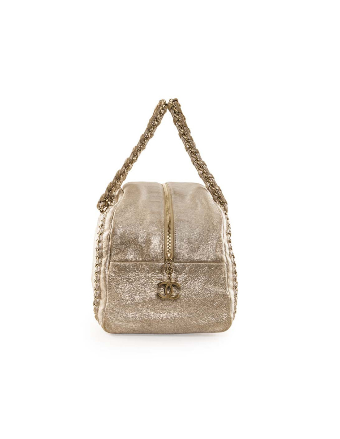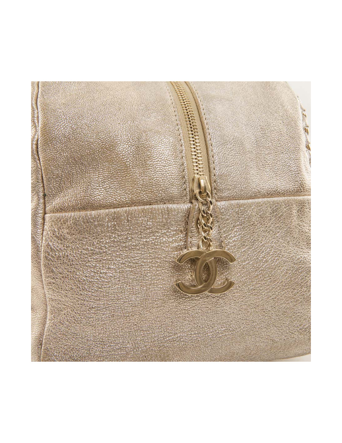 Chanel 'Bowling' bag in gilt distressed leather with Gilded hardware. Zip closure. The interior is in beige smooth lamb leather with a large zipped pocket and two smaller ones.