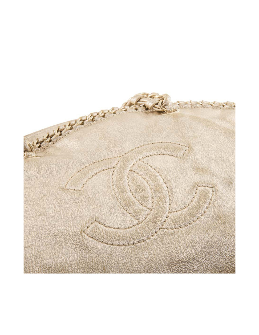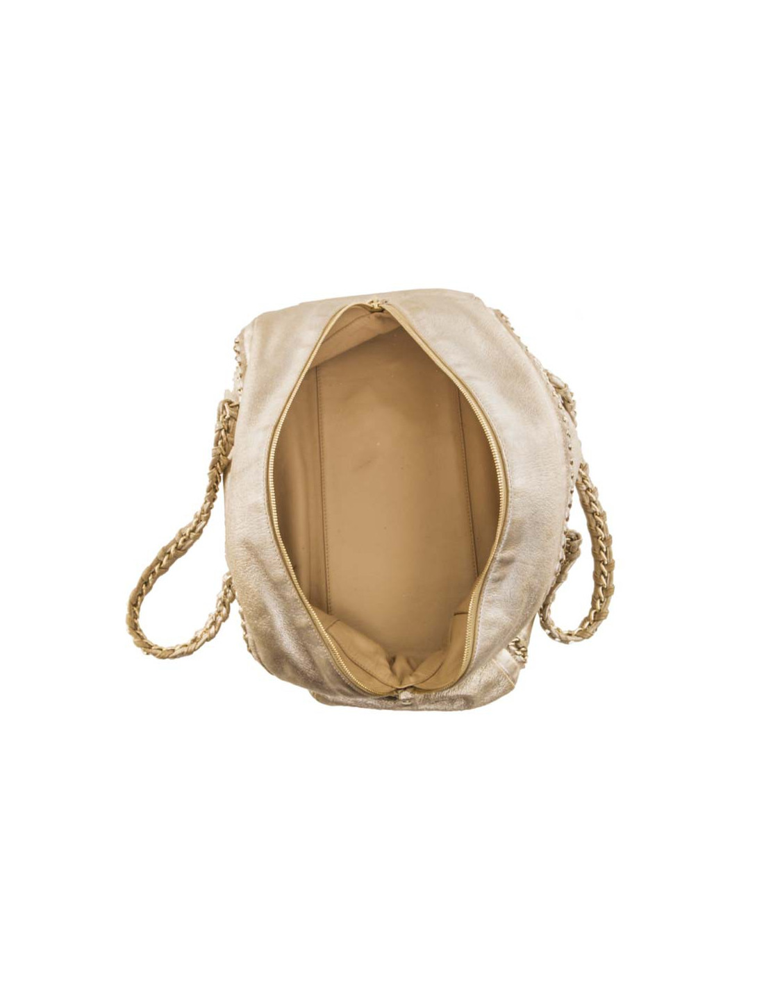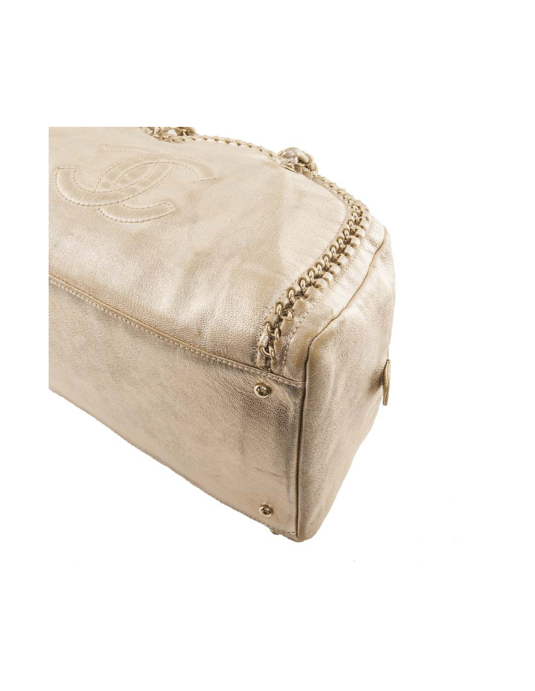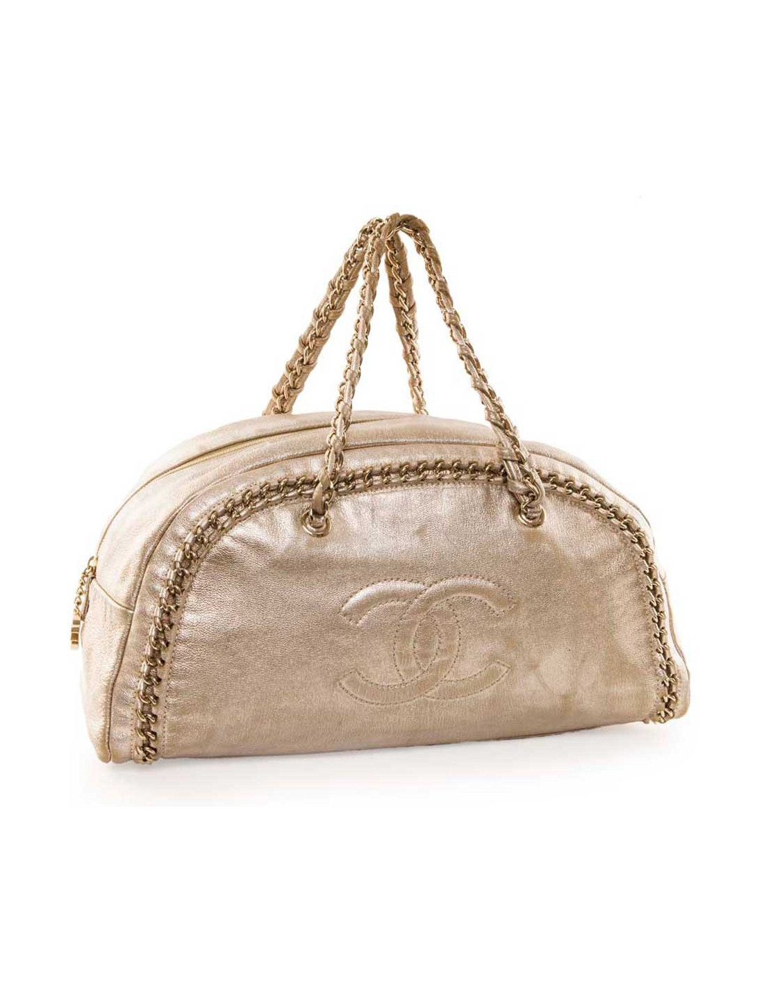Chanel 'Bowling' bag in gilt distressed leather with Gilded hardware. Zip closure. The interior is in beige smooth lamb leather with a large zipped pocket and two smaller ones.