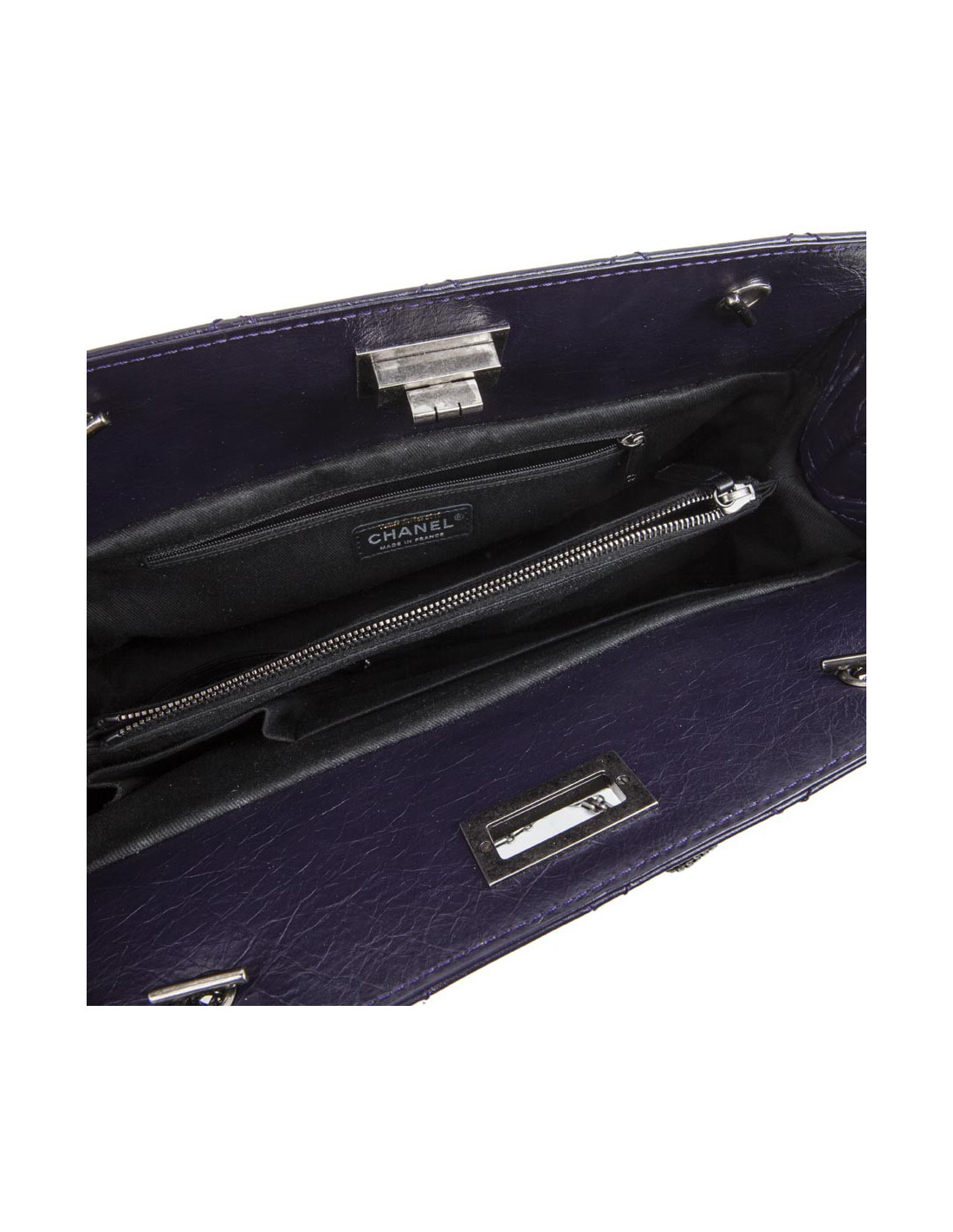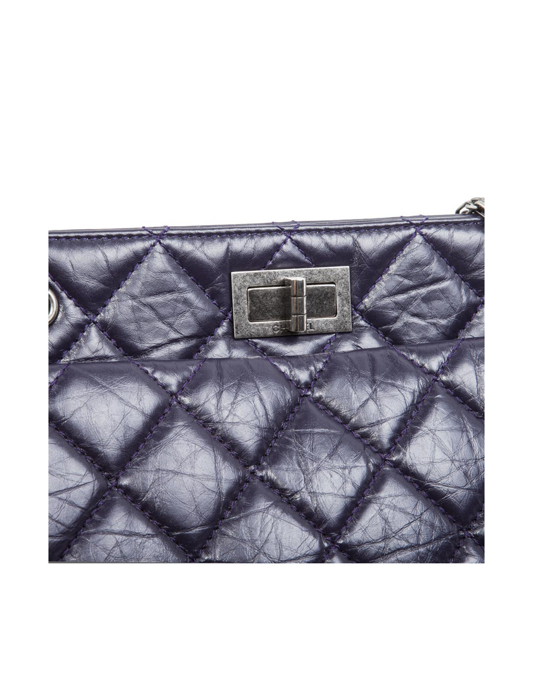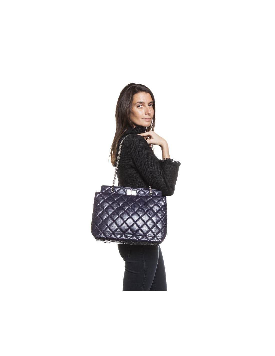 Sac de la Maison Chanel en cuir matelassé violet. Accastillage en métal argenté vieilli. Fermoir 2.55. Hologramme : 1719.... pas de carte d'authenticité. L'intérieur est en toile noir avec un grand espace de rangement une poche zippée et 2 poches plus petites, séparé par une poche zippée centrale. sur les 2 côtés extérieurs il y a 2 fentes. Il se porte à l'épaule En très bon état. Très peu porté.