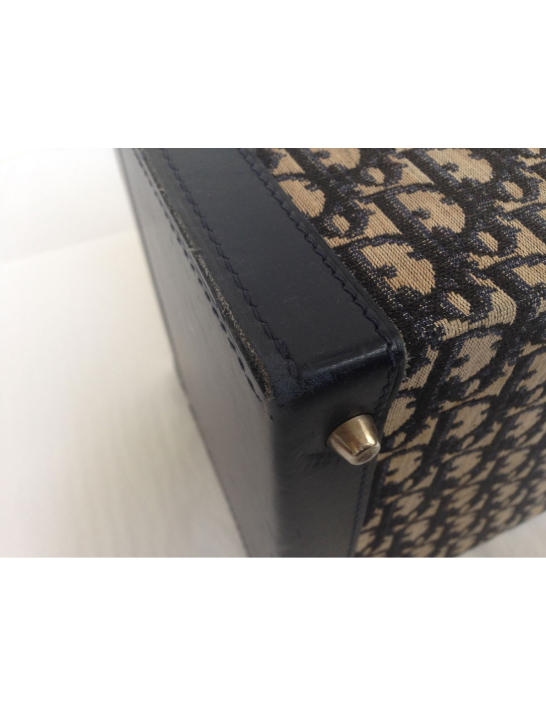 Lovely vanity case Dior vintage monogram Dior Navy Blue and off-white. A few traces of wear to report: at the level of closures, silver metal parts are rusted patchy, the bottom corners are a bit worn (see photos) The general State of the vanity, in view of his age, is quite good. The Interior is well preserved and is in a coated fabric with a waterproof film. A mirror and many pockets is. 2 keys and a Bell are supplied with this vanity. Length: 31 cm, Height: 18.7 cm, Width: 20.4 cm