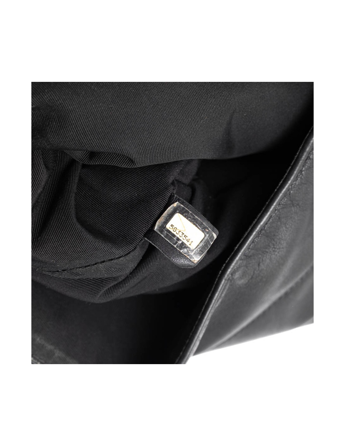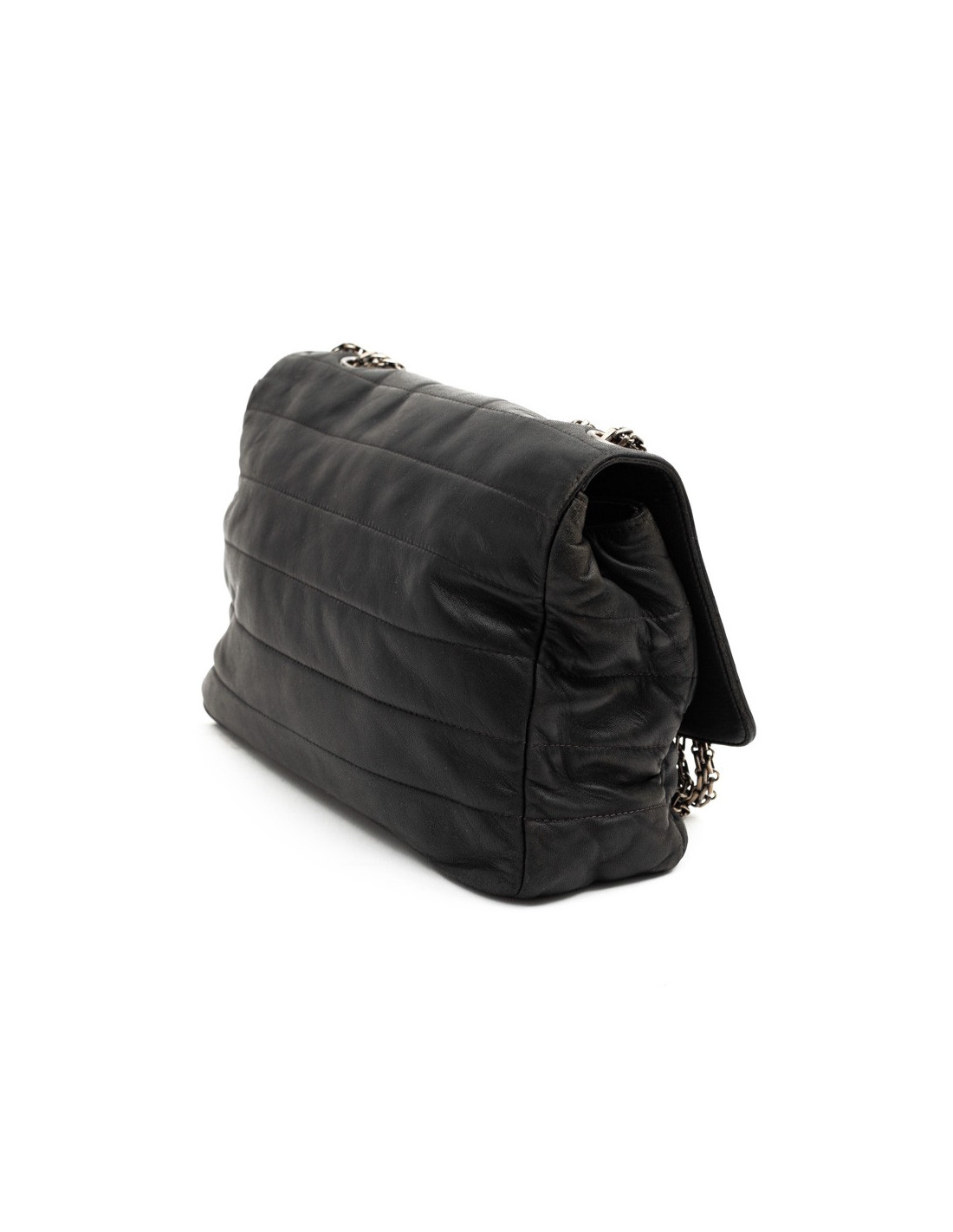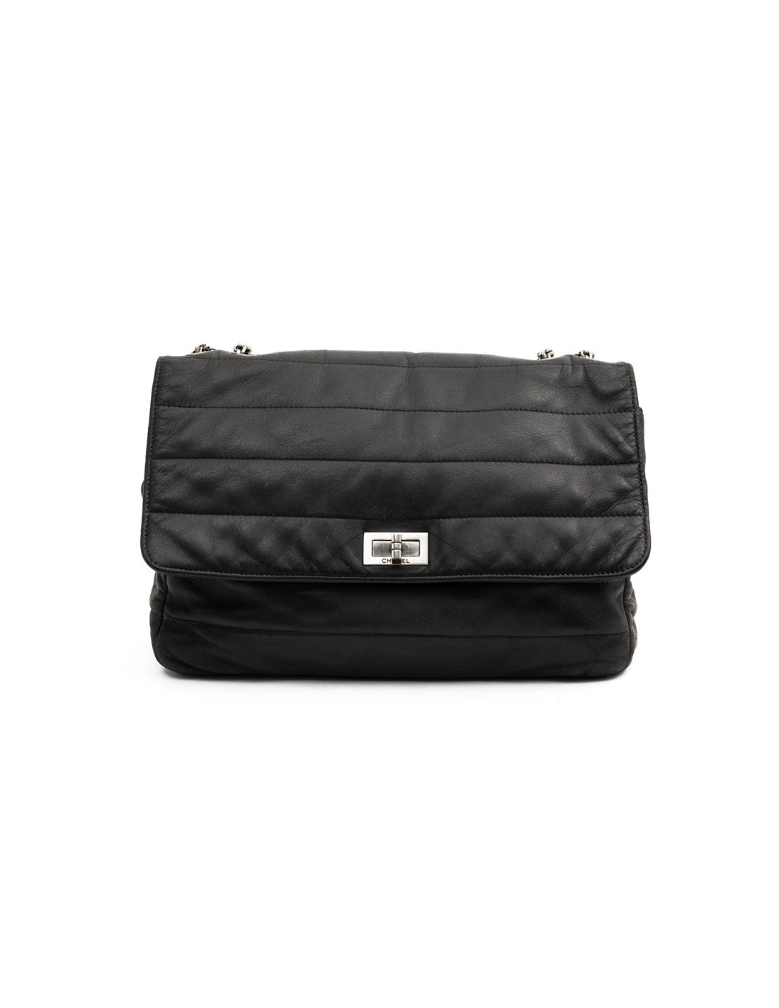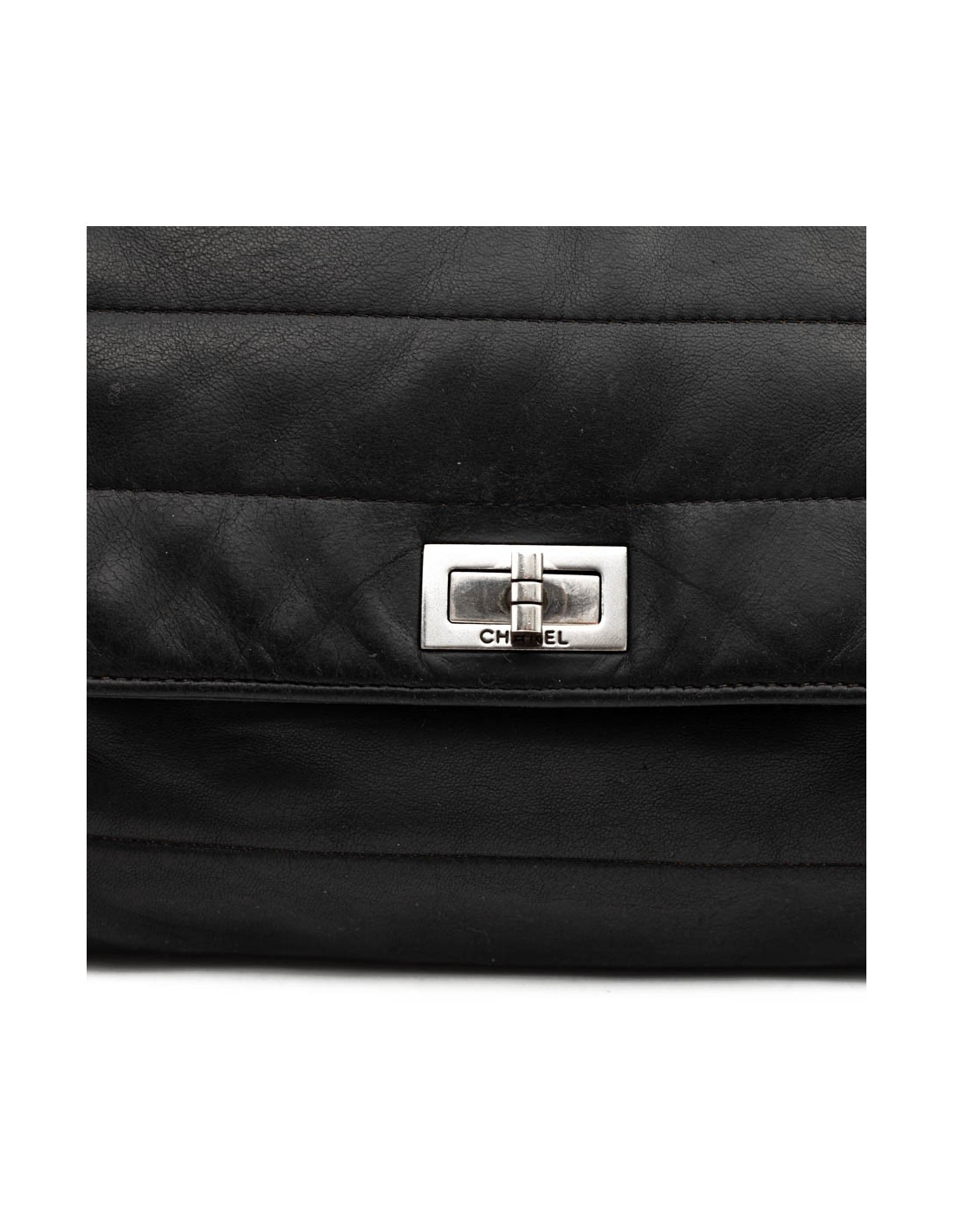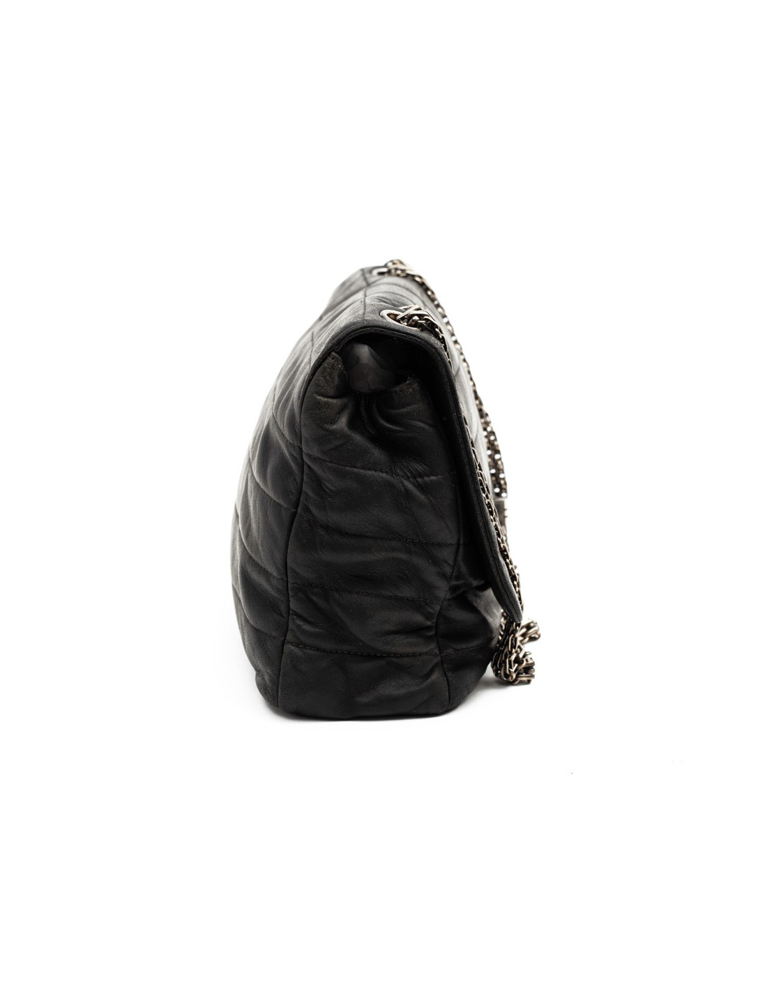 De grande légèreté, ce sac avec boucle 2.55, en cuir d'agneau lisse noir. Il est en bon état d'usage. Il se porte à l'épaule ou croisé. Les attributs sont en métal argent vieilli (micro rayures). L'intérieur est doublé en toile noire par endroits elle est légèrement marquée par l'utilisation du sac., avec une poche zippée.