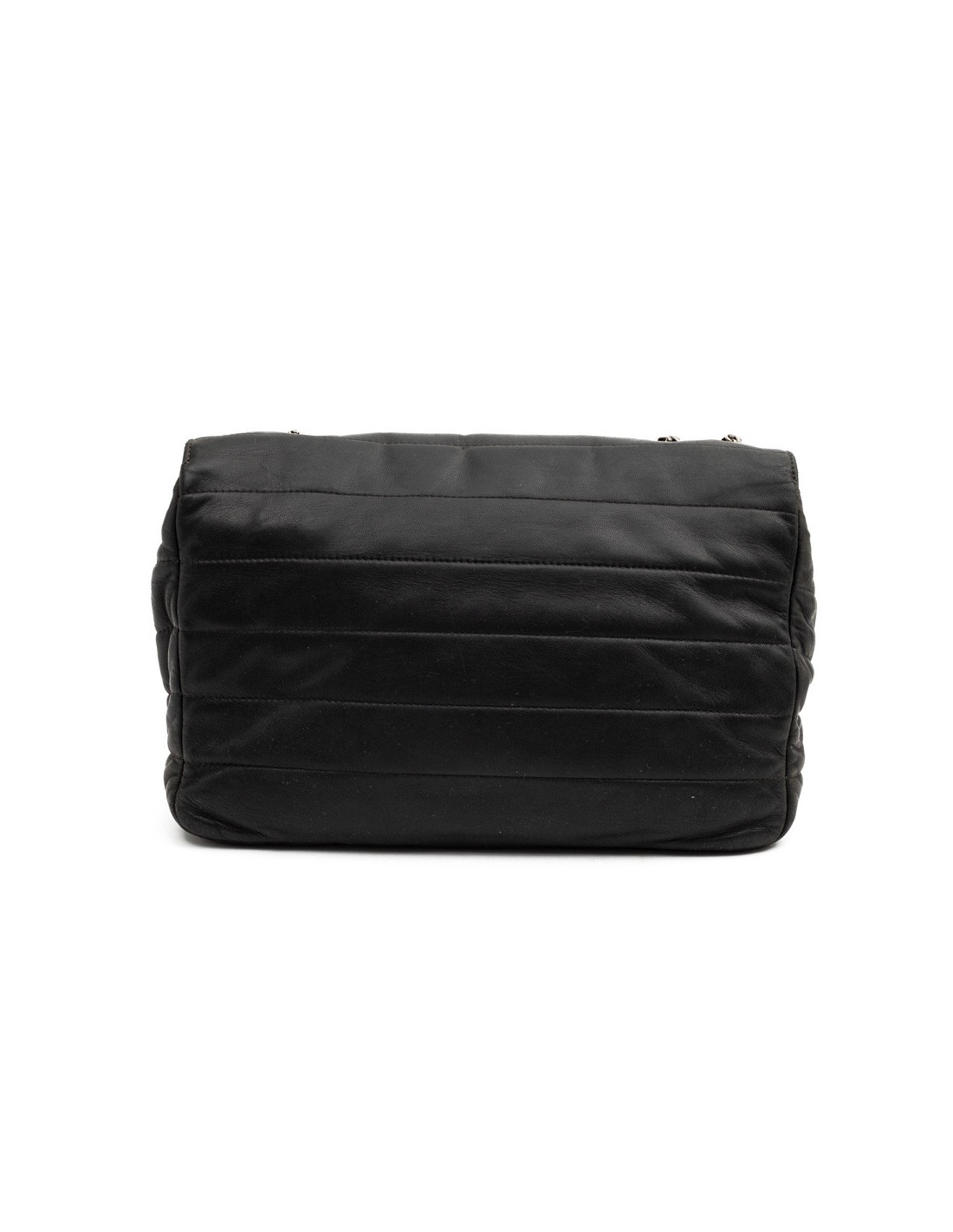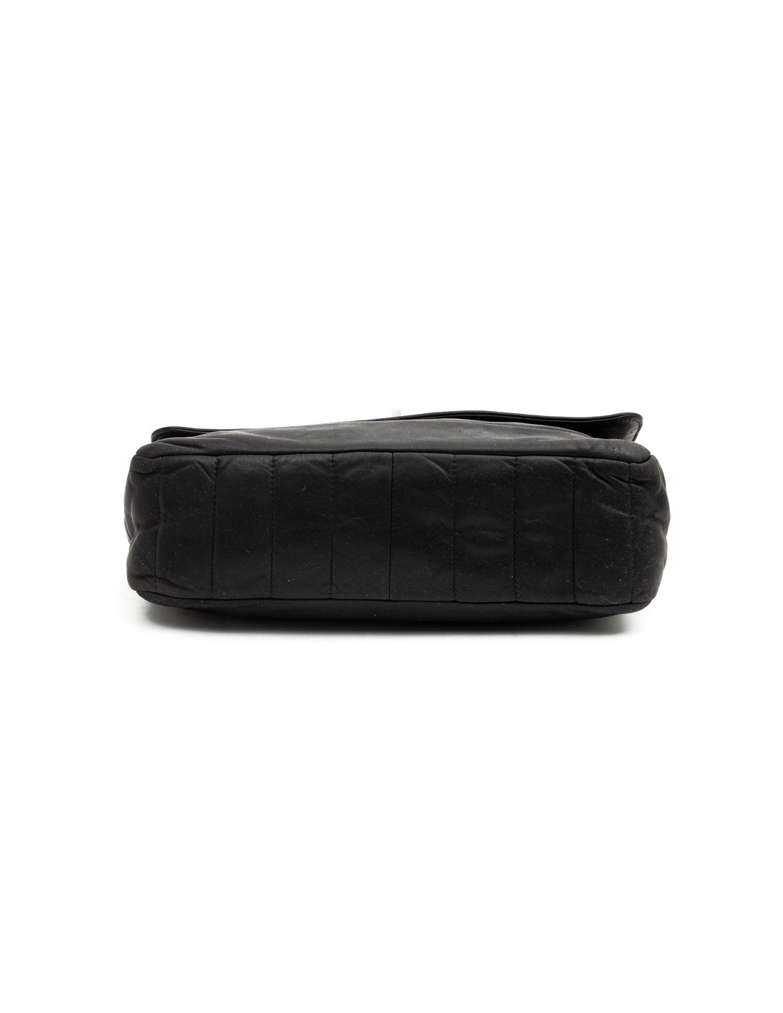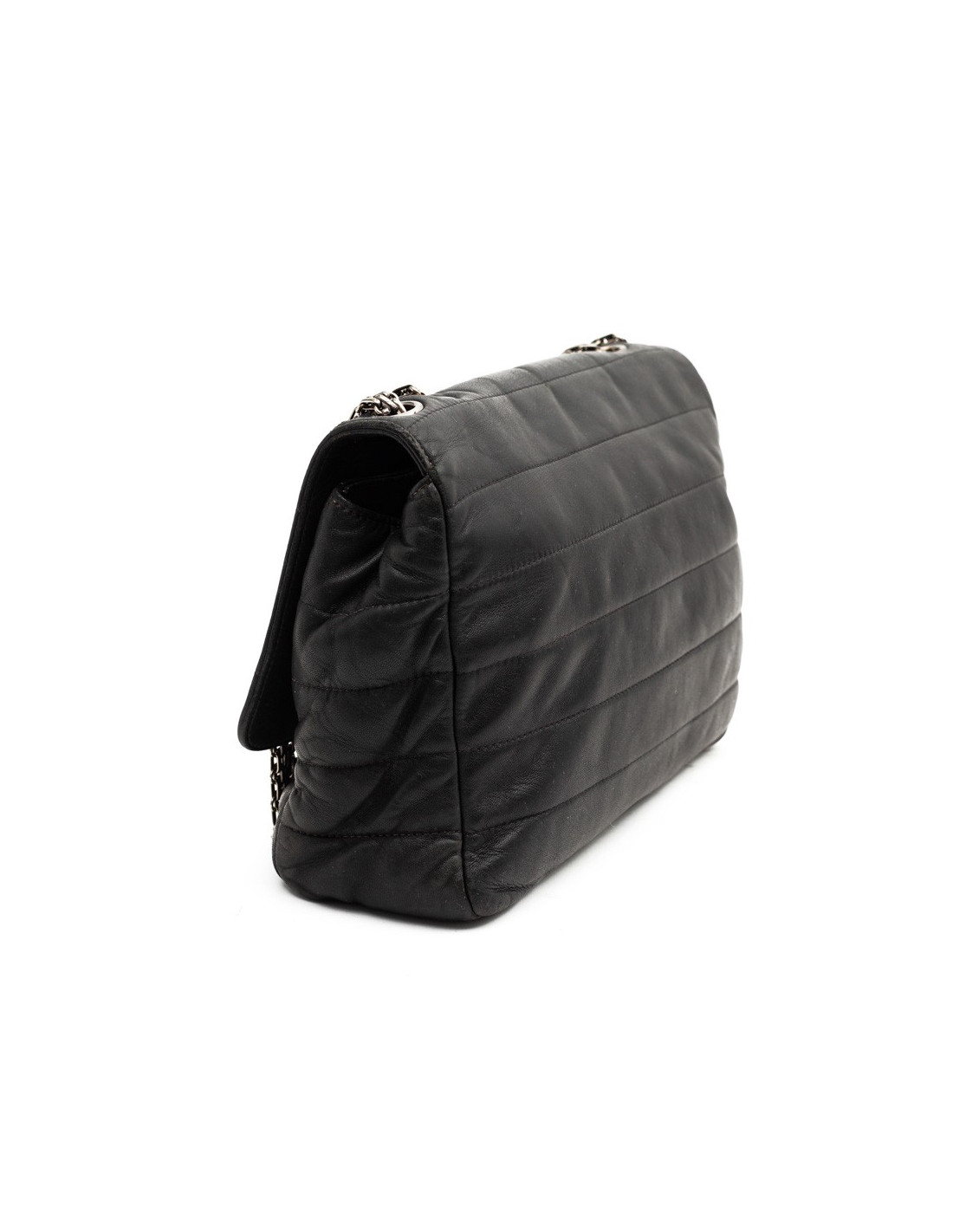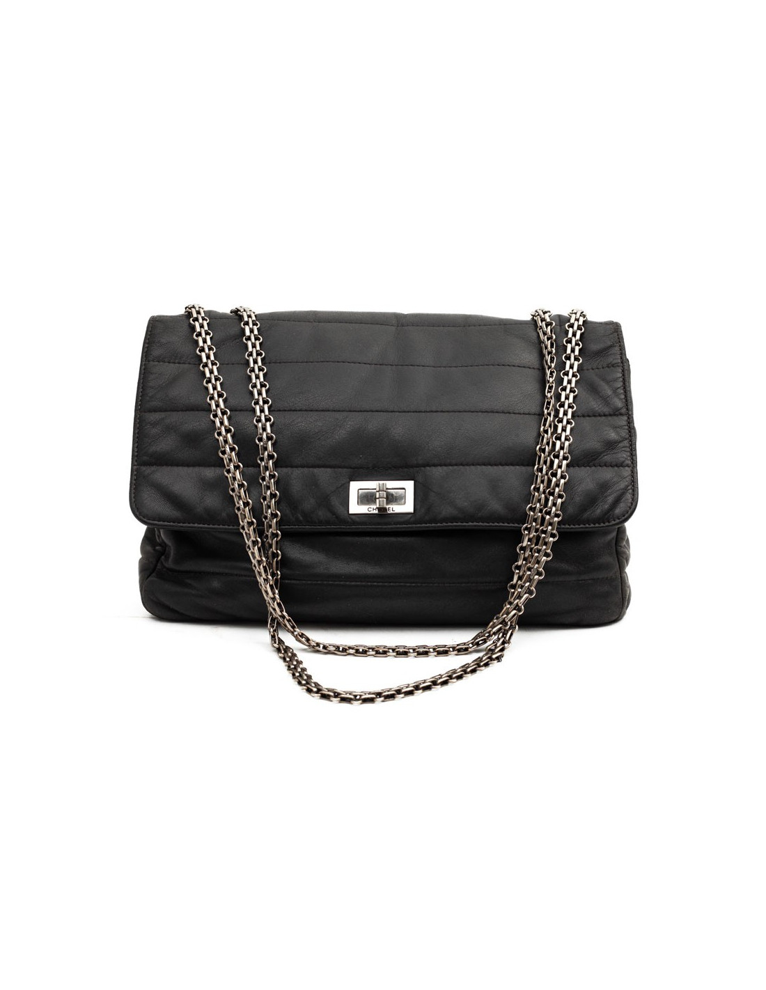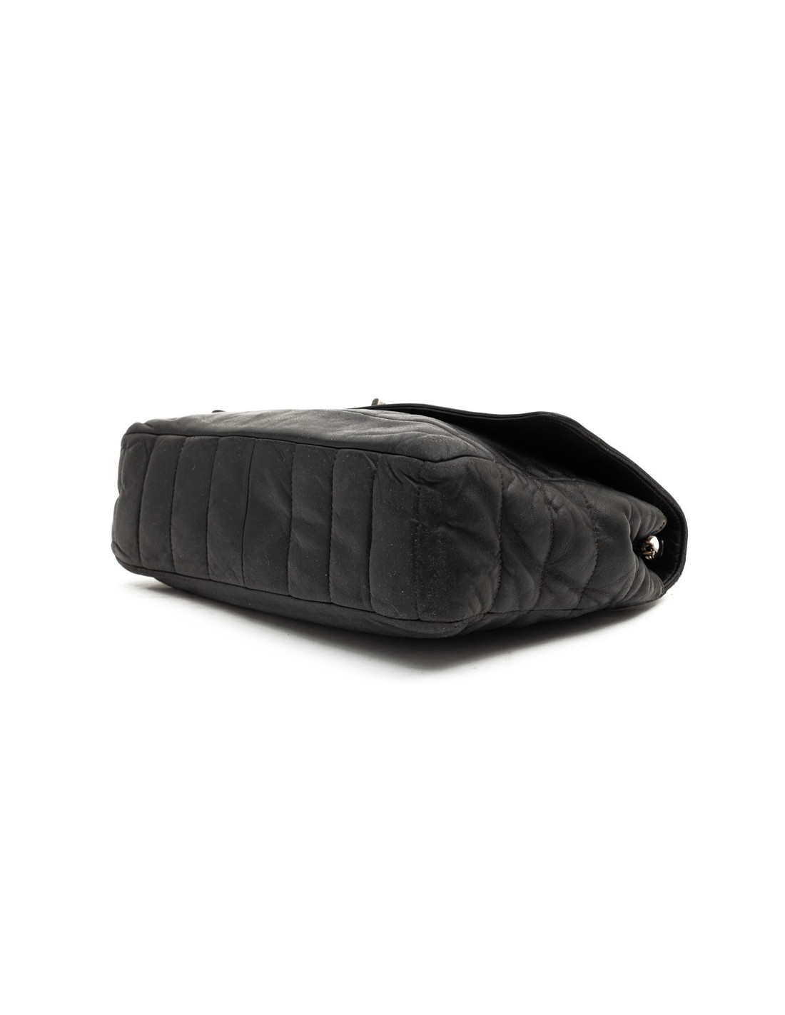 De grande légèreté, ce sac avec boucle 2.55, en cuir d'agneau lisse noir. Il est en bon état d'usage. Il se porte à l'épaule ou croisé. Les attributs sont en métal argent vieilli (micro rayures). L'intérieur est doublé en toile noire par endroits elle est légèrement marquée par l'utilisation du sac., avec une poche zippée.