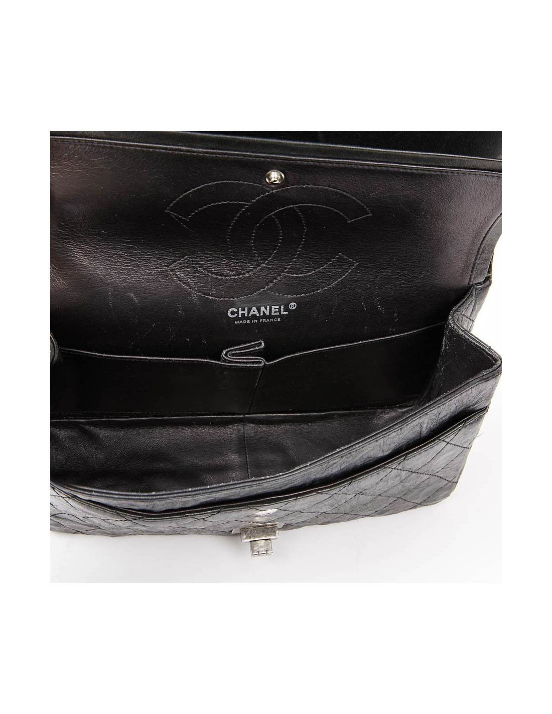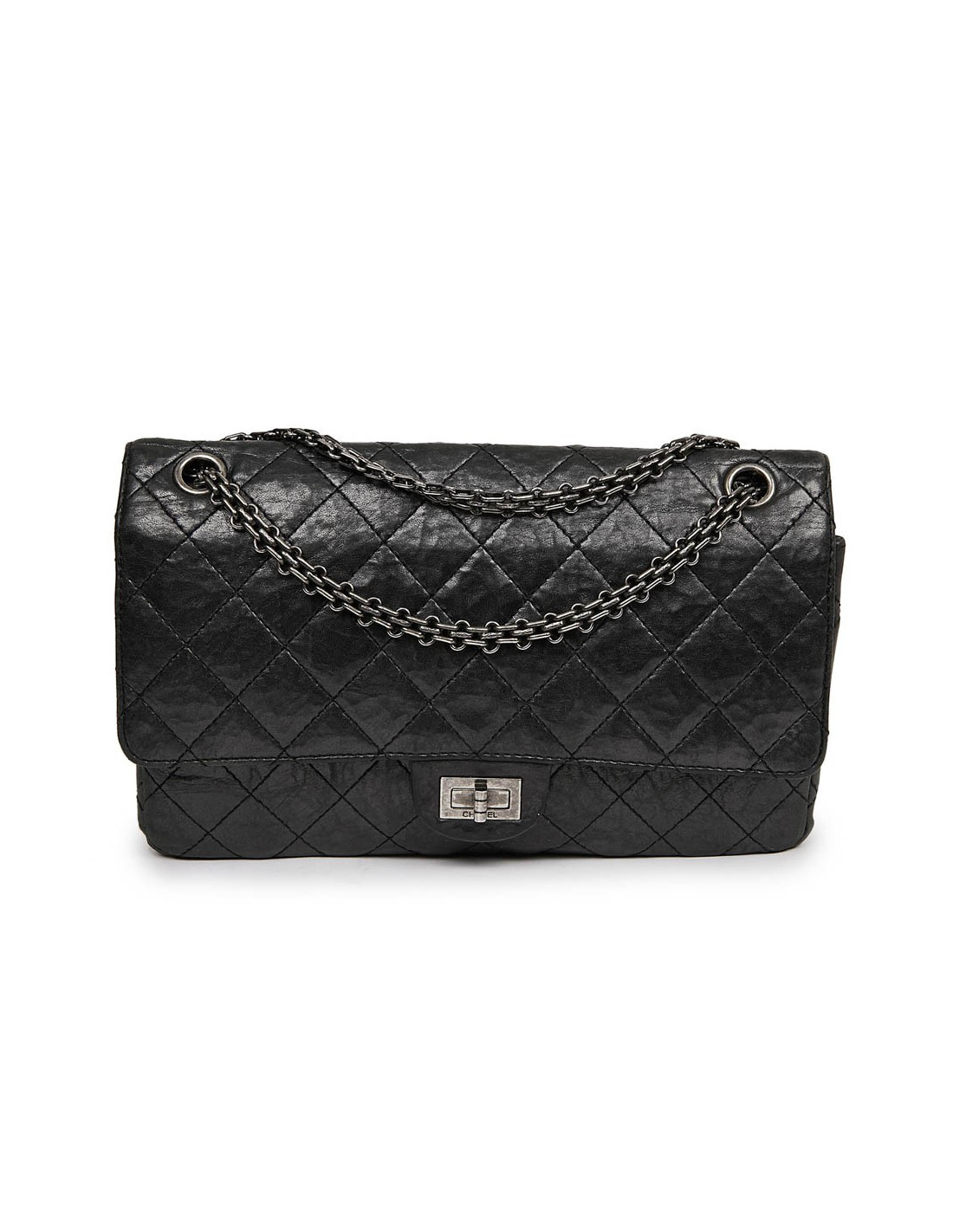 Depuis sa création en février 1955 par Mademoiselle Coco Chanel, le 2.55 ne cesse d'évoluer et sa côte de grimper. Celui-ci se caractérise de par sa forme rectangulaire, par son aspect extérieur martelé, sa chaîne gourmette argentée vieilli ruthénium, son double rabat et son fermoir "Mademoiselle" gravé CHANEL.