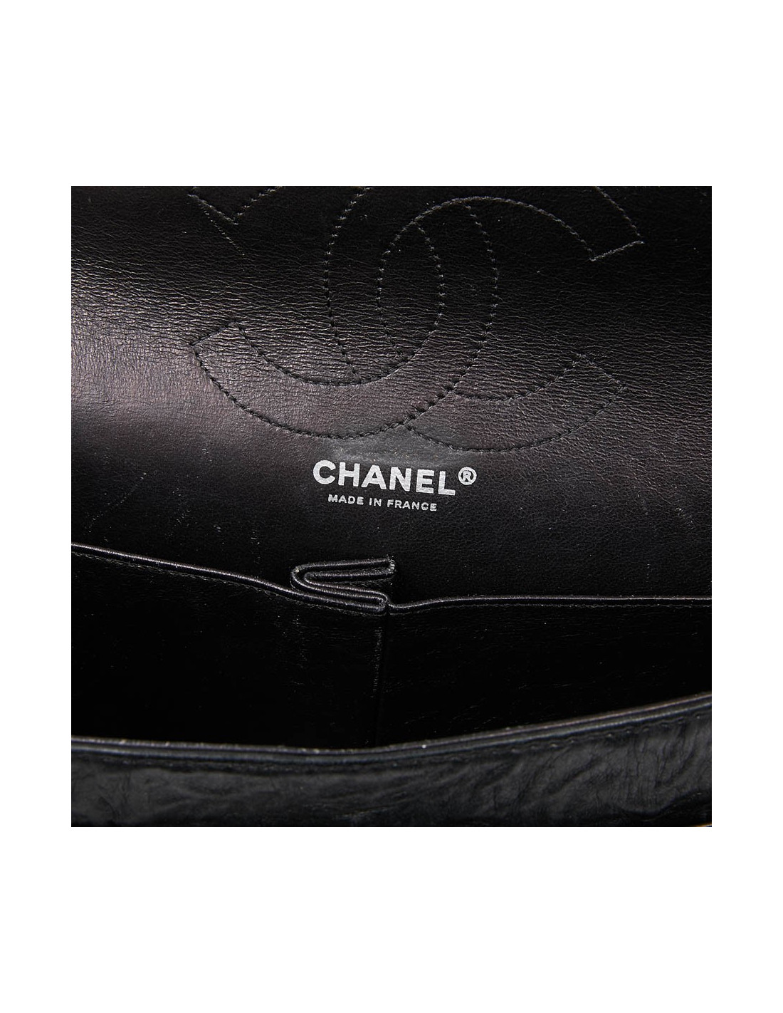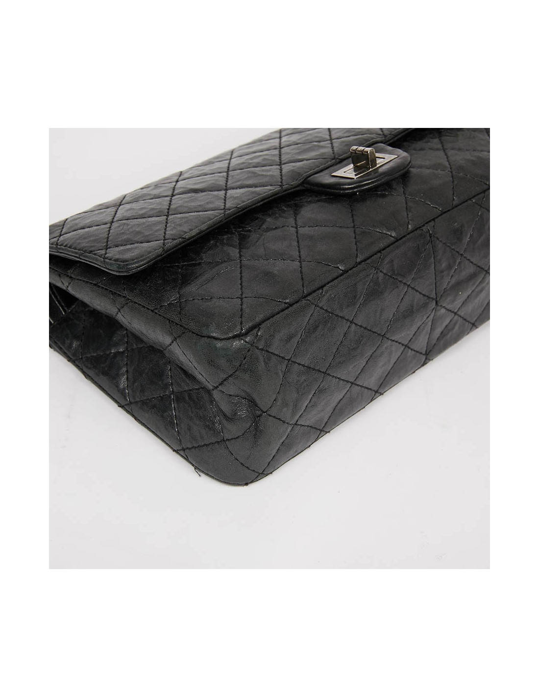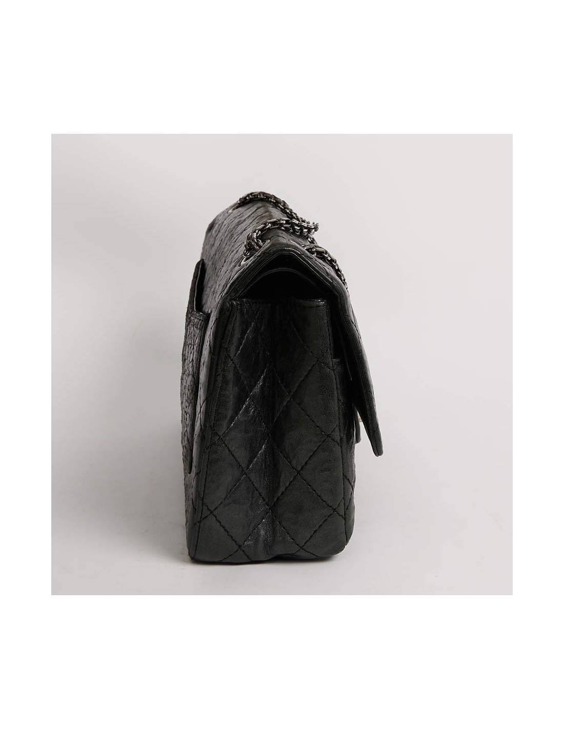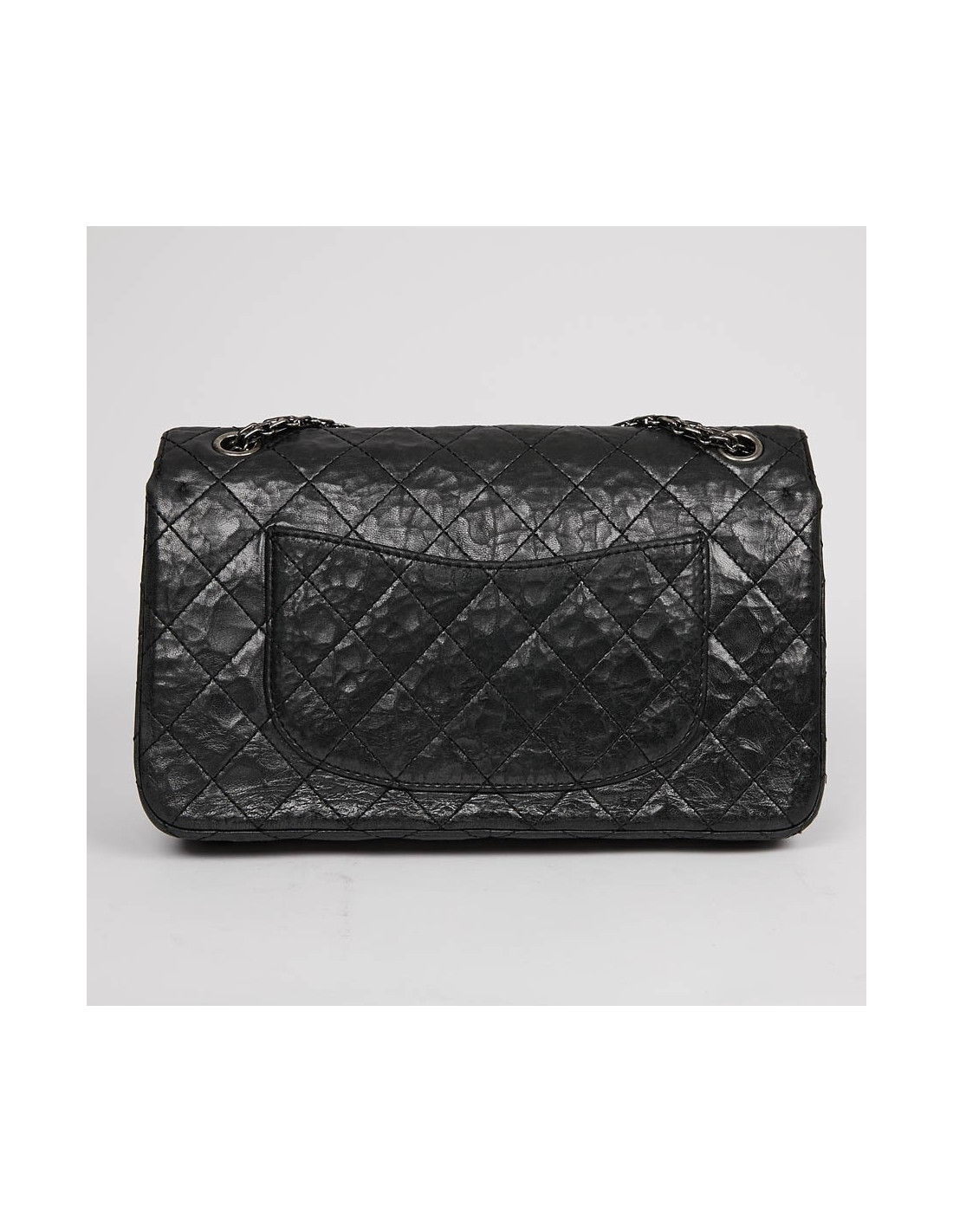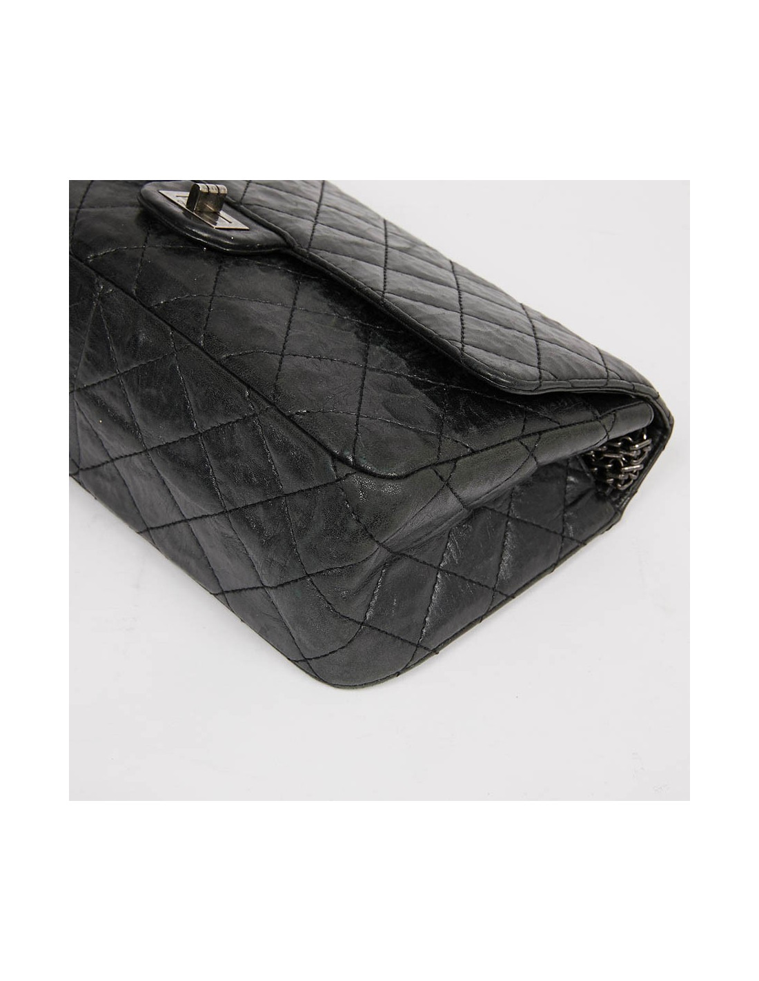 Sac 2.55 CHANEL gris métallisé foncé, détails