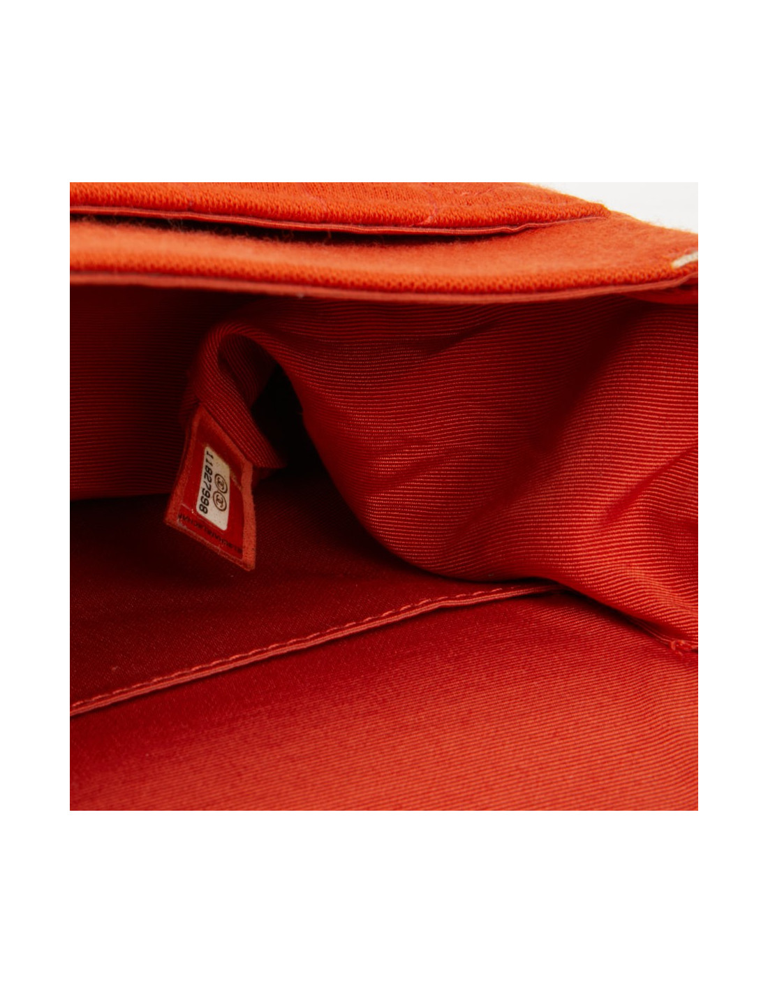 Sac à main Chanel, fermoir 2.55 en jersey couleur corail. Il est brodé façon crocodile. Il a un double rabat avec un miroir inclus. L’intérieur est doublé en piqué de coton. Il se porte à l’épaule ou croisé. Le jersey est déchiré par endroits voir photos.
