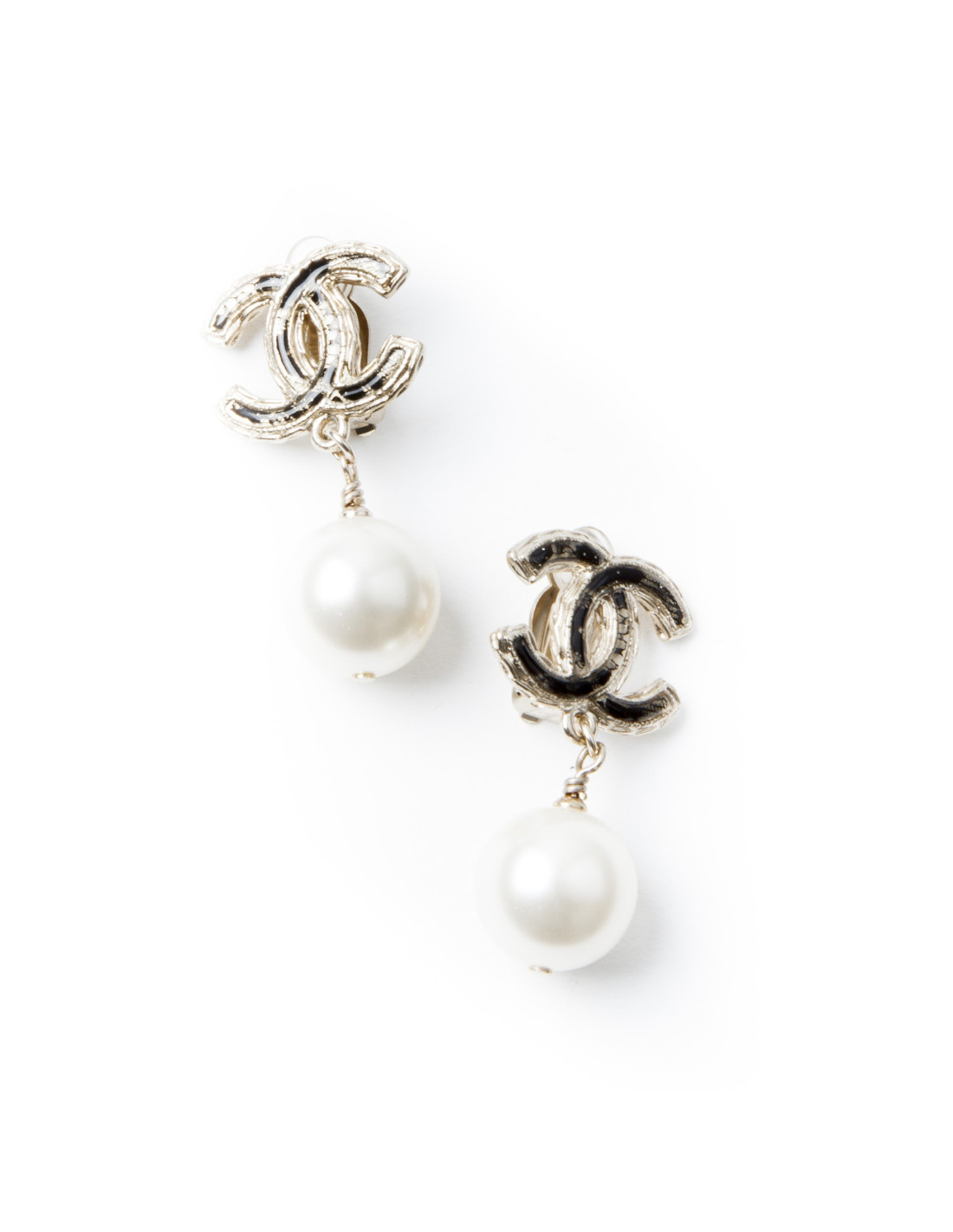 Boucles d'oreille clous CHANEL pendantes perles nacrées
