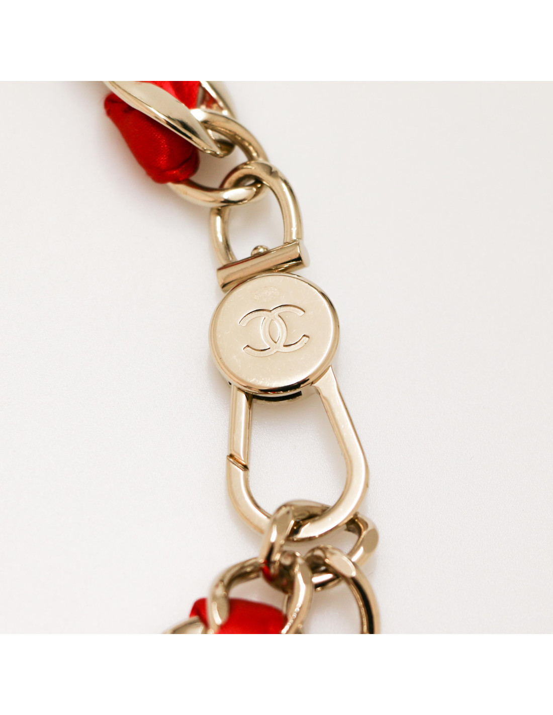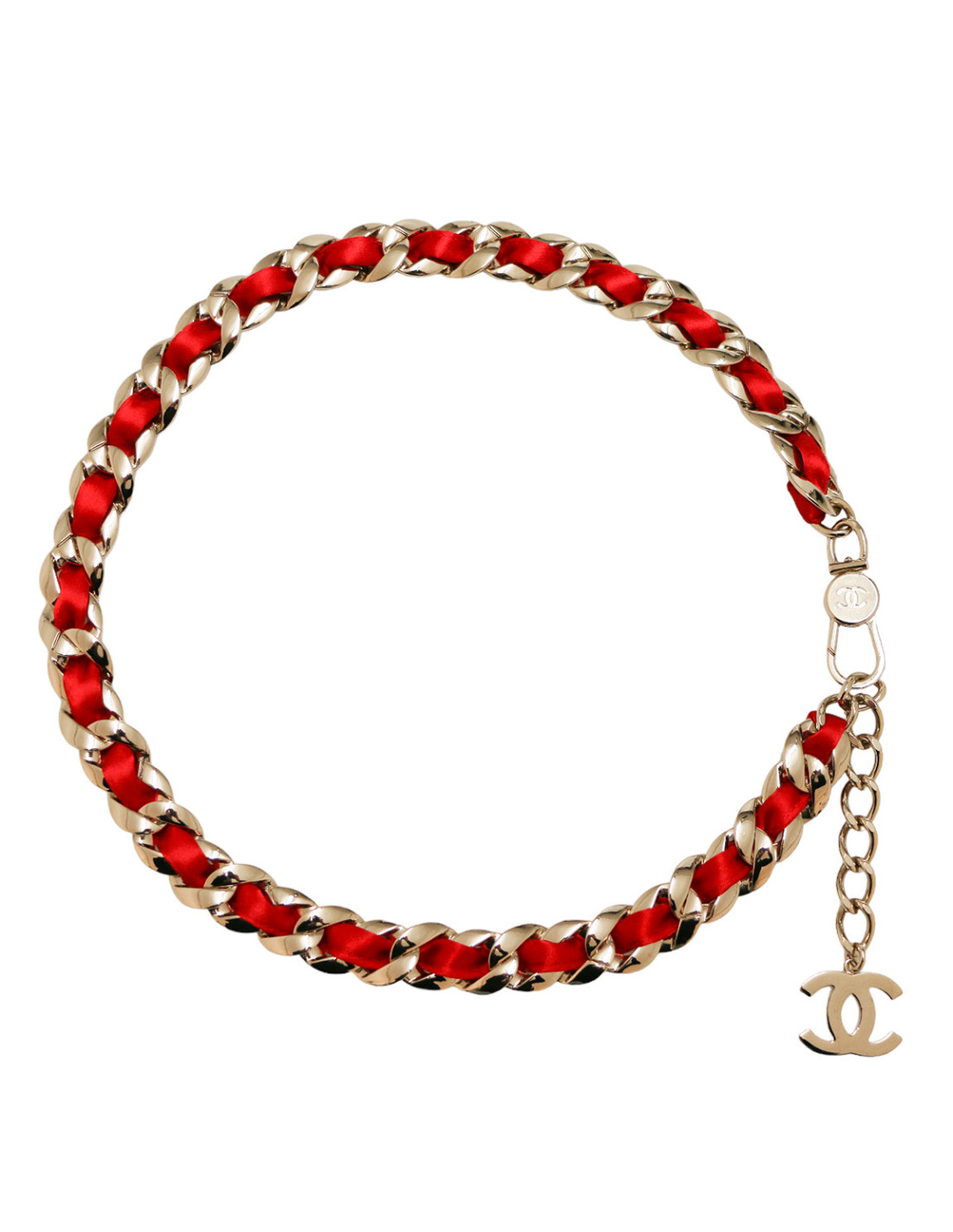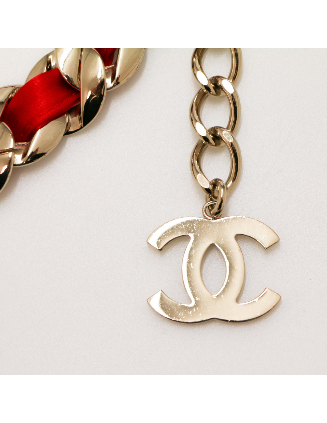 Ceinture CHANEL chaine métal entrelacée de satin rouge