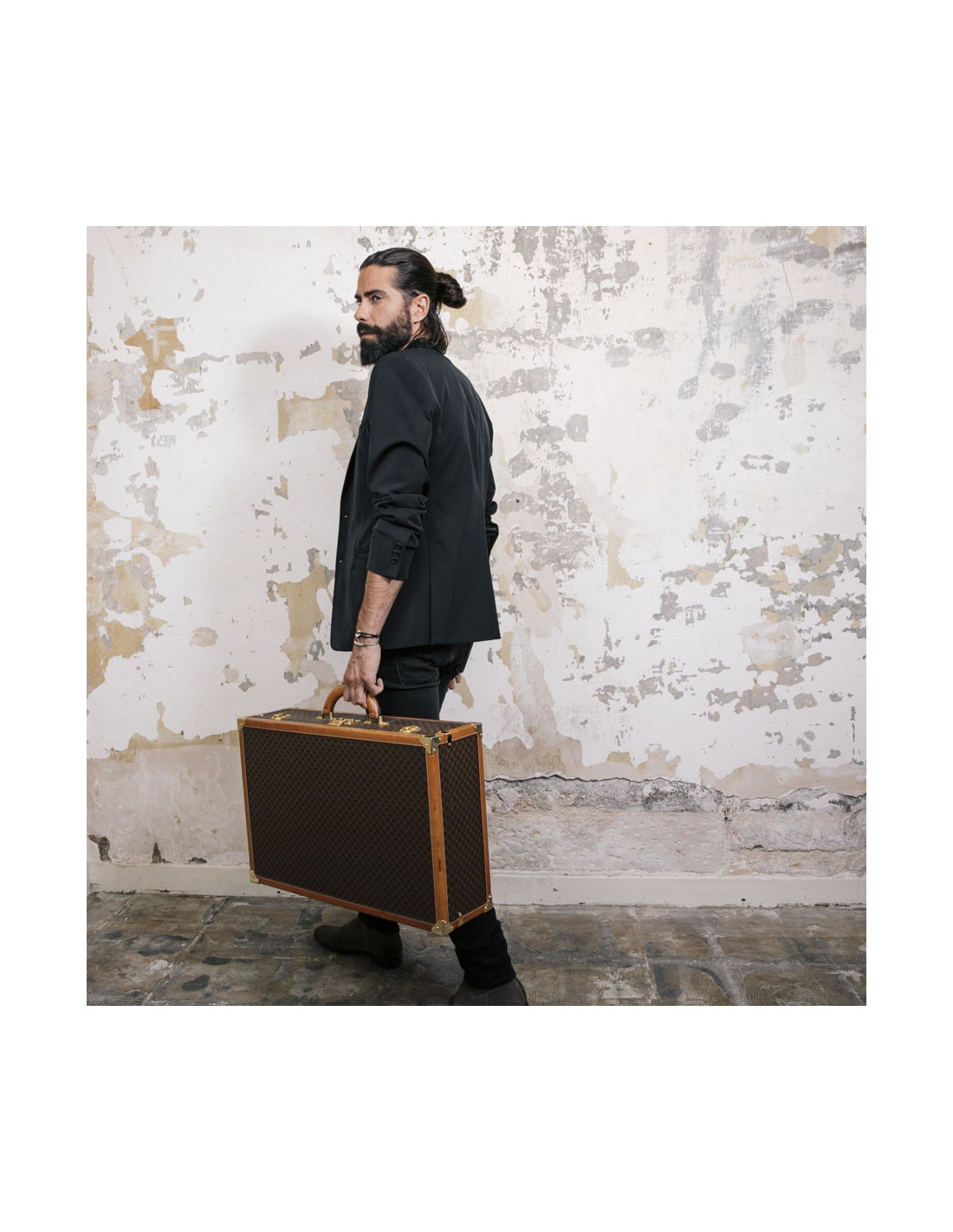 Cette malle en toile triomphe (marron) est Made in Italy. Elle porte un numéro de série.