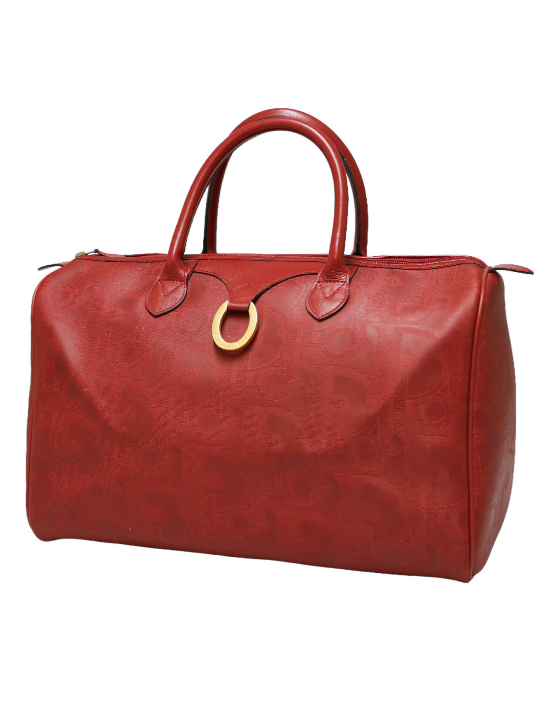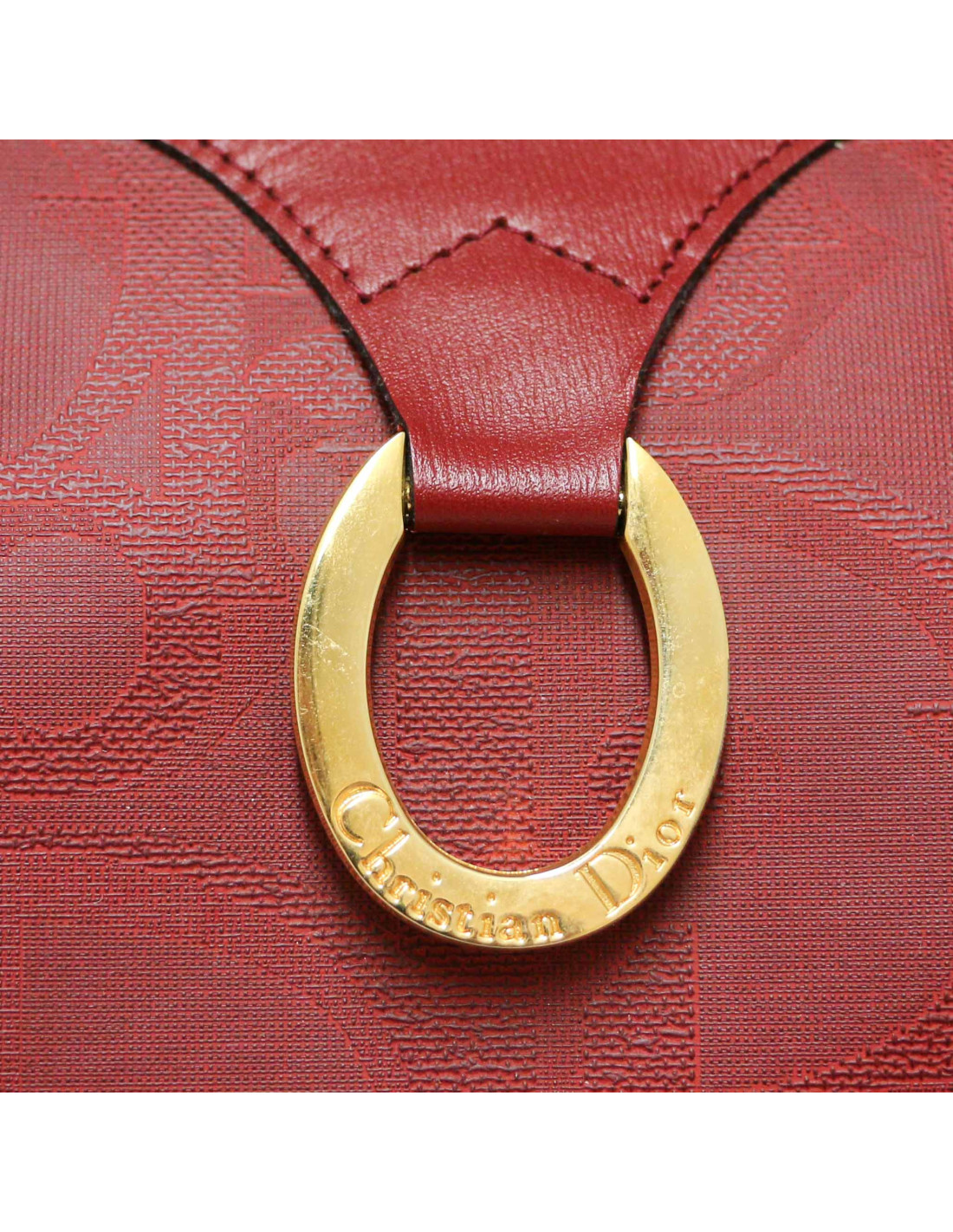 Détails : toile embossée monogramme Dior, anneau signé Christian Dior doré sur l'avant du sac, une poche plate à l'intérieur. Le sac se porte à la main par deux anses en cuir.