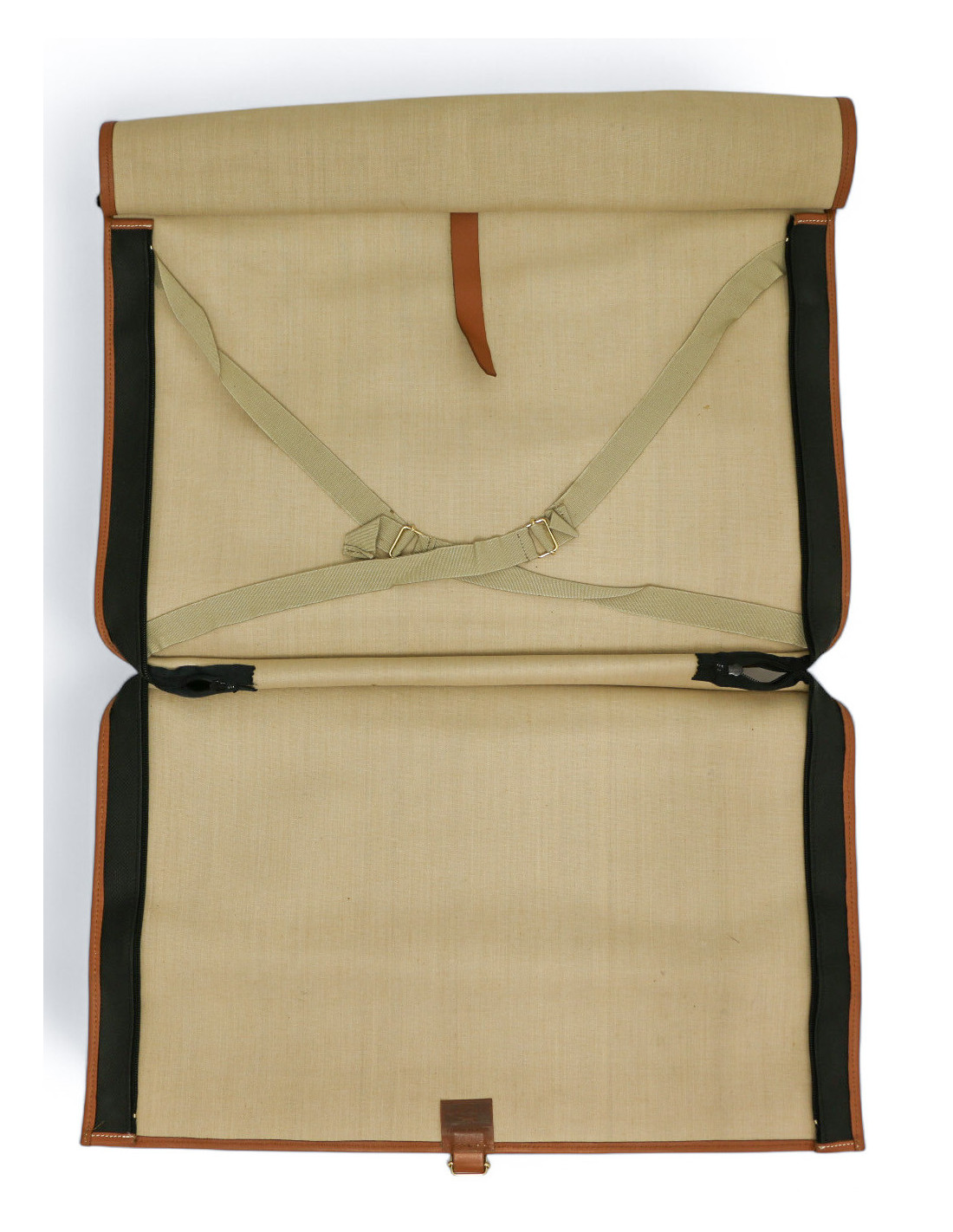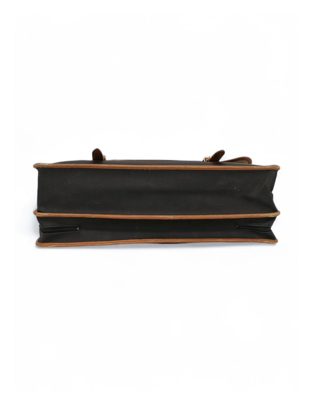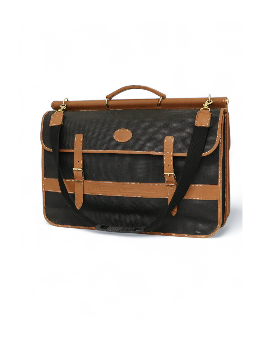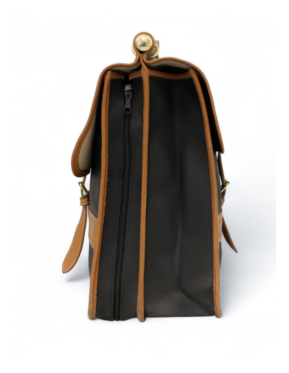 Détails : sac business de voyage, deux espaces de rangement distincts à rabat fermé avec double boucle ardillon et une grande poche zippée extérieure.