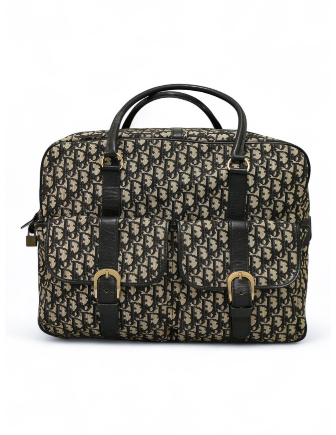 Détails : grande poche intérieure et trois petites poches dont une fermée par un zip. Deux poches avant fermées par une boucle. Il peut se porter main ou à l'épaule. Légères marques d'usure sur les empiècements en cuir et à l'intérieur.