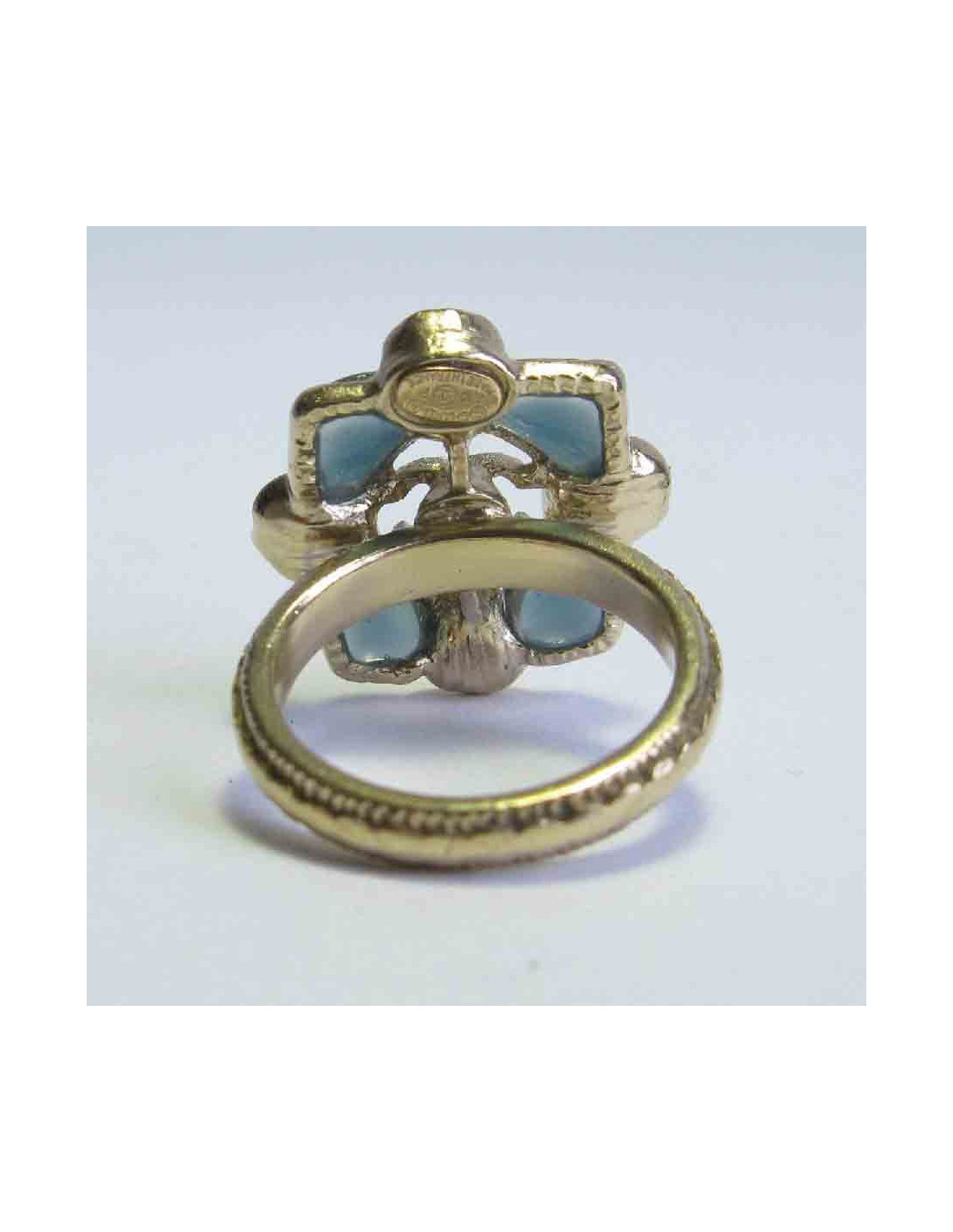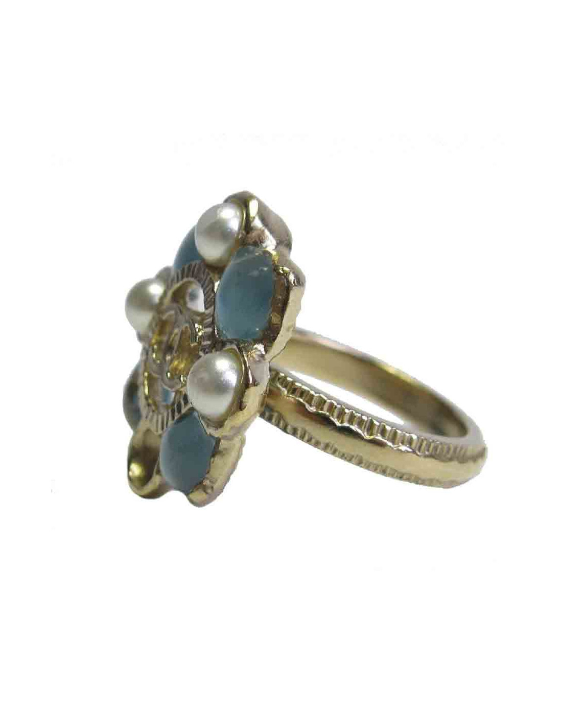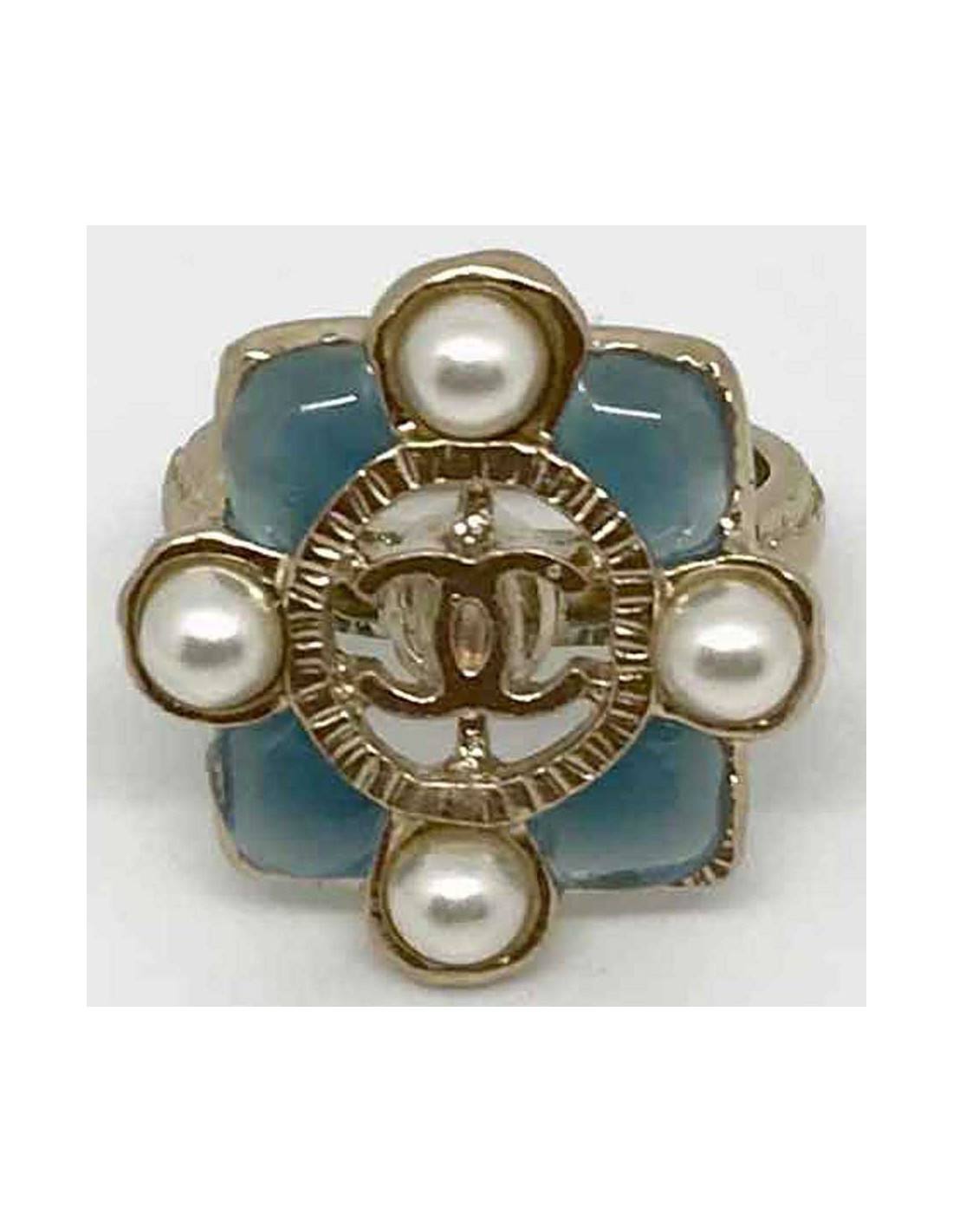 Bague CHANEL T52 en métal doré perles nacrées et bleues