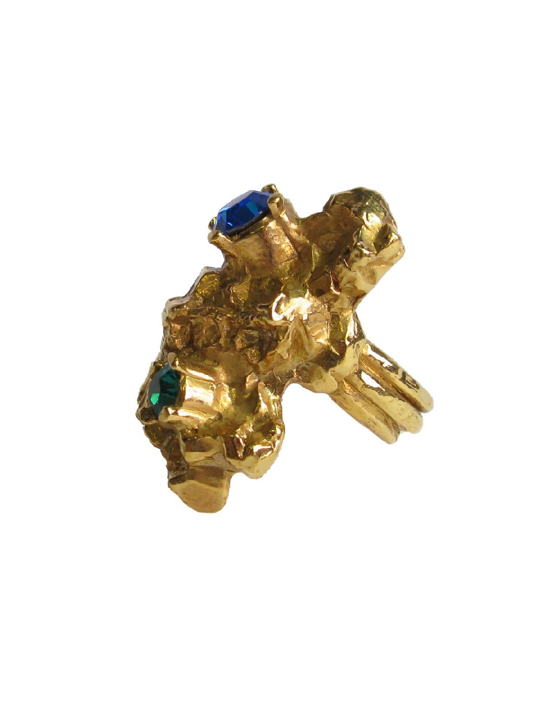 Bague YSL YVES SAINT LAURENT T48 en métal doré, brillants bleu vert et rose