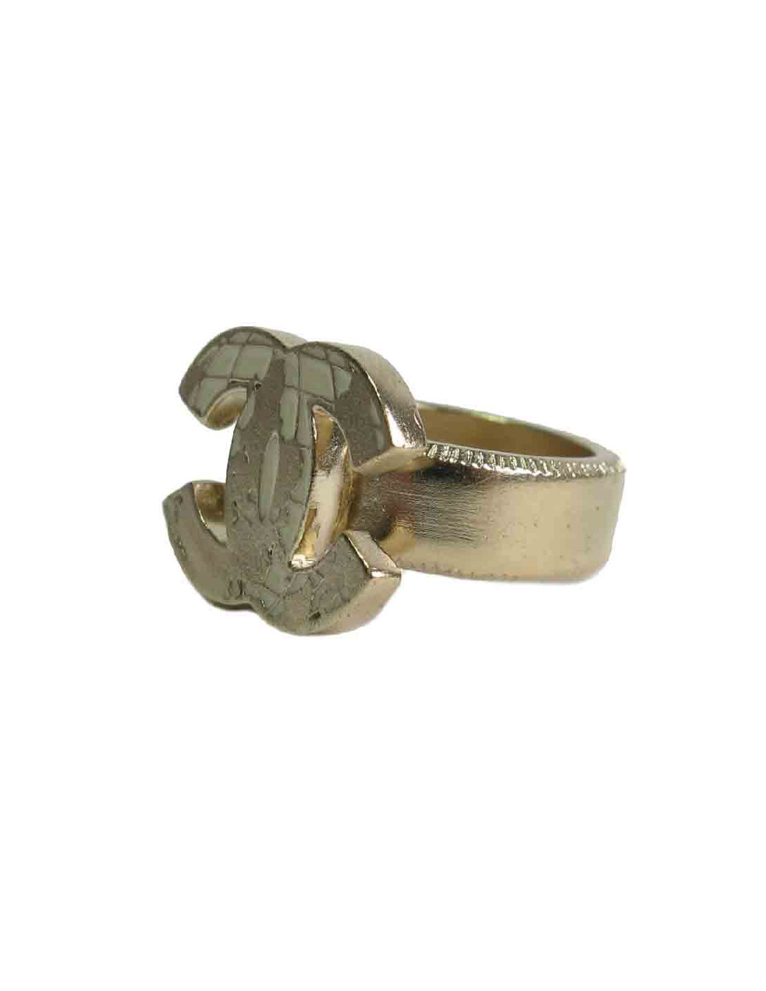 Bague CHANEL T 51 CC mappemonde en métal doré