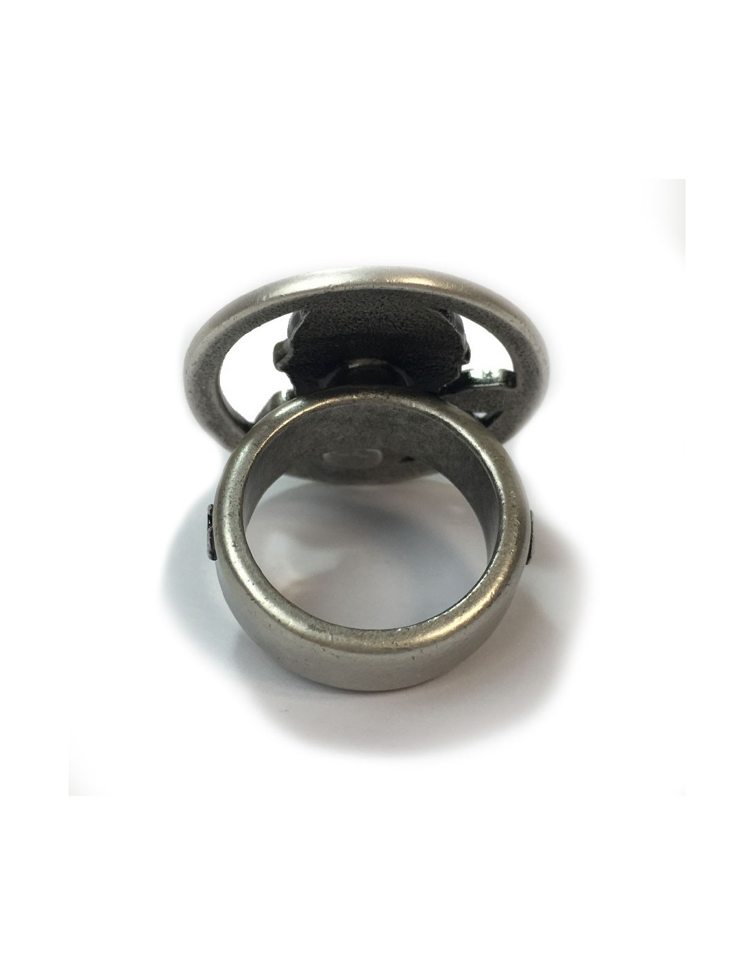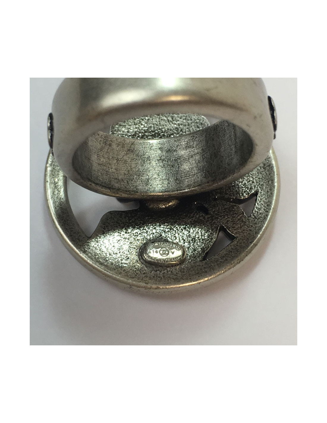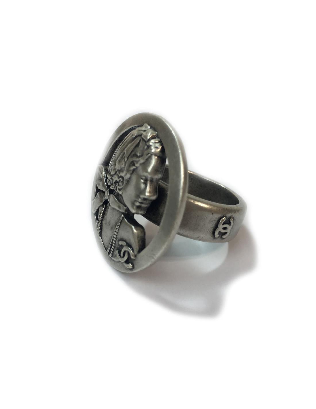 Cette bague CHANEL représente madame Coco Chanel. Elle est en métal argenté mat, de forme ronde. Issue des collections automne 2014, made in France.