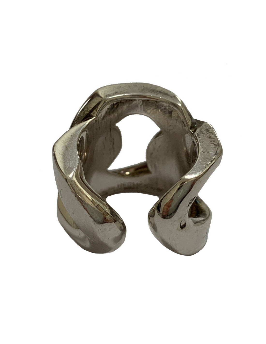 Bague HERMES en argent représentant trois maillons entrelacés.