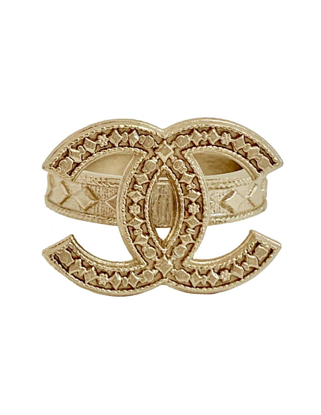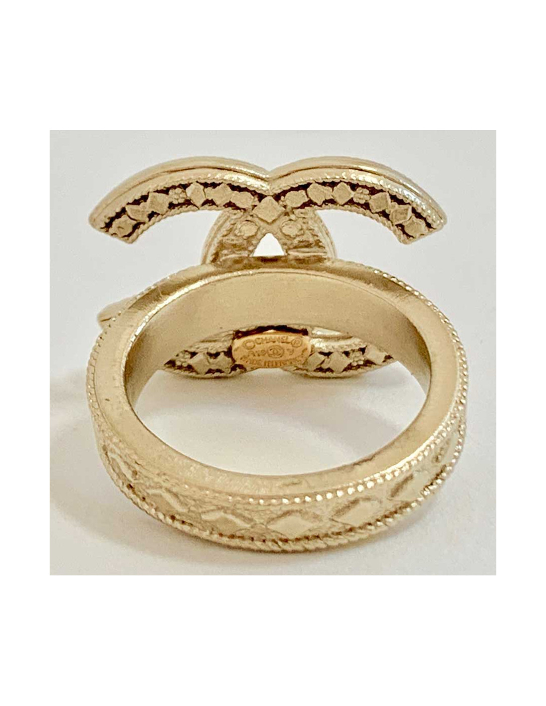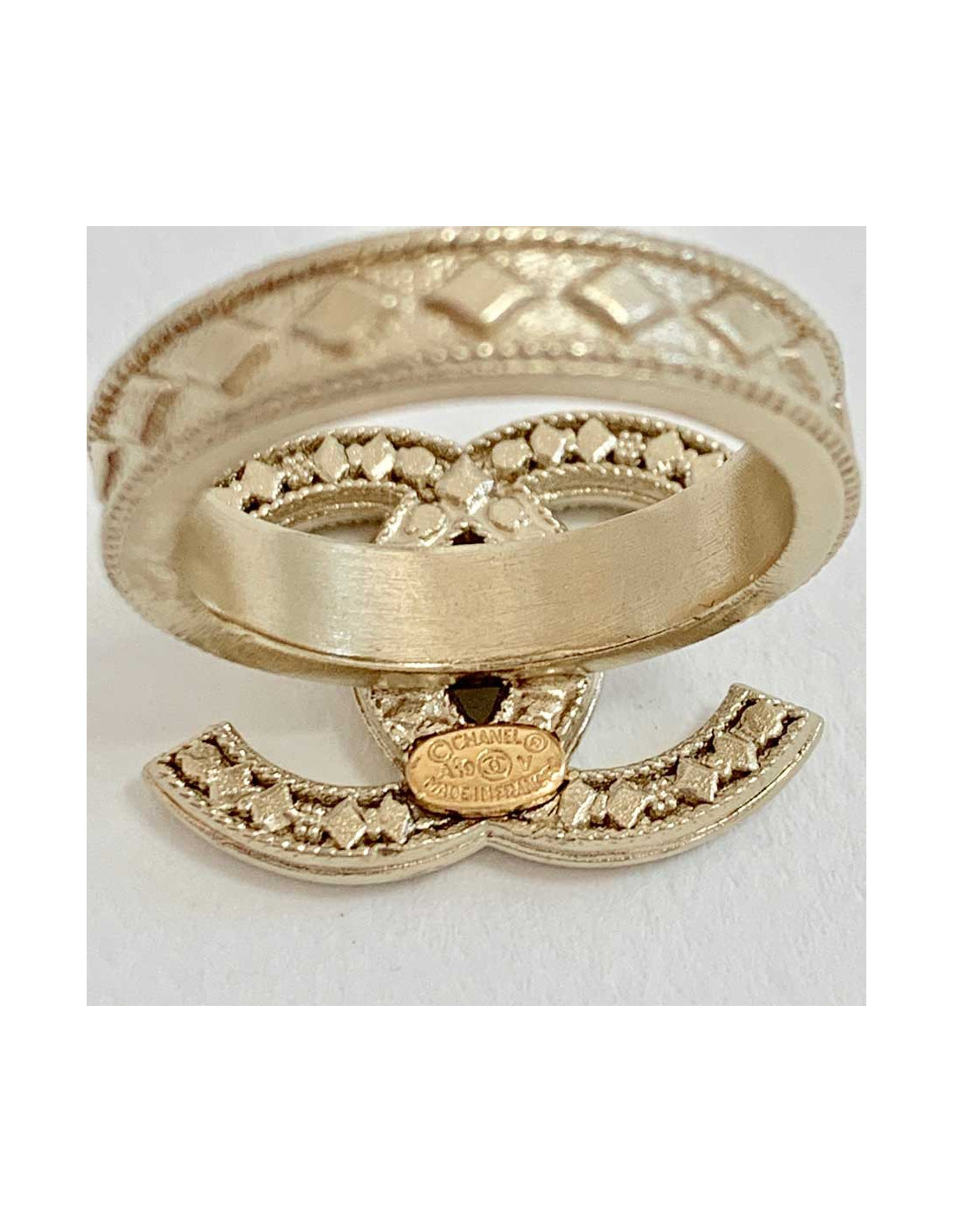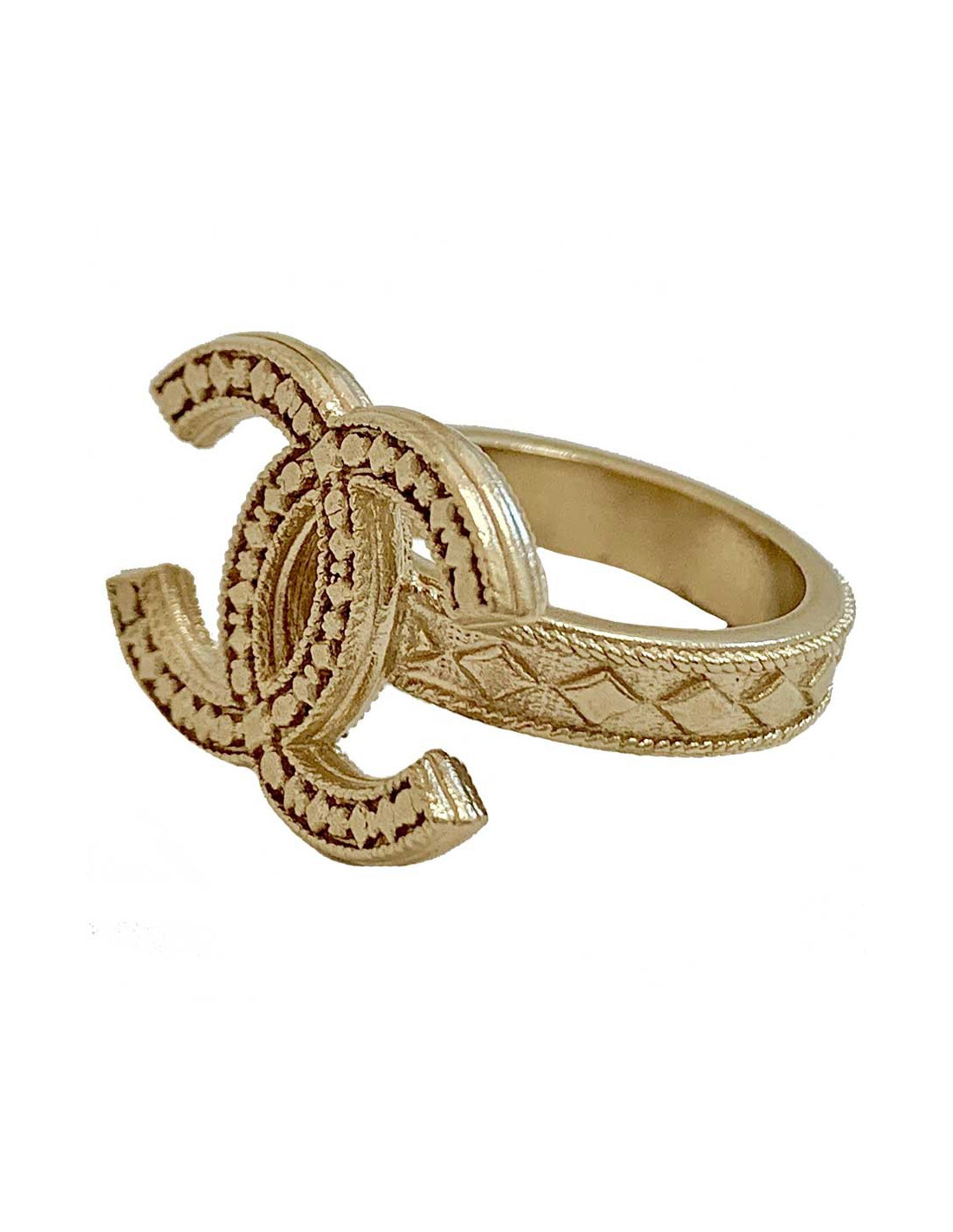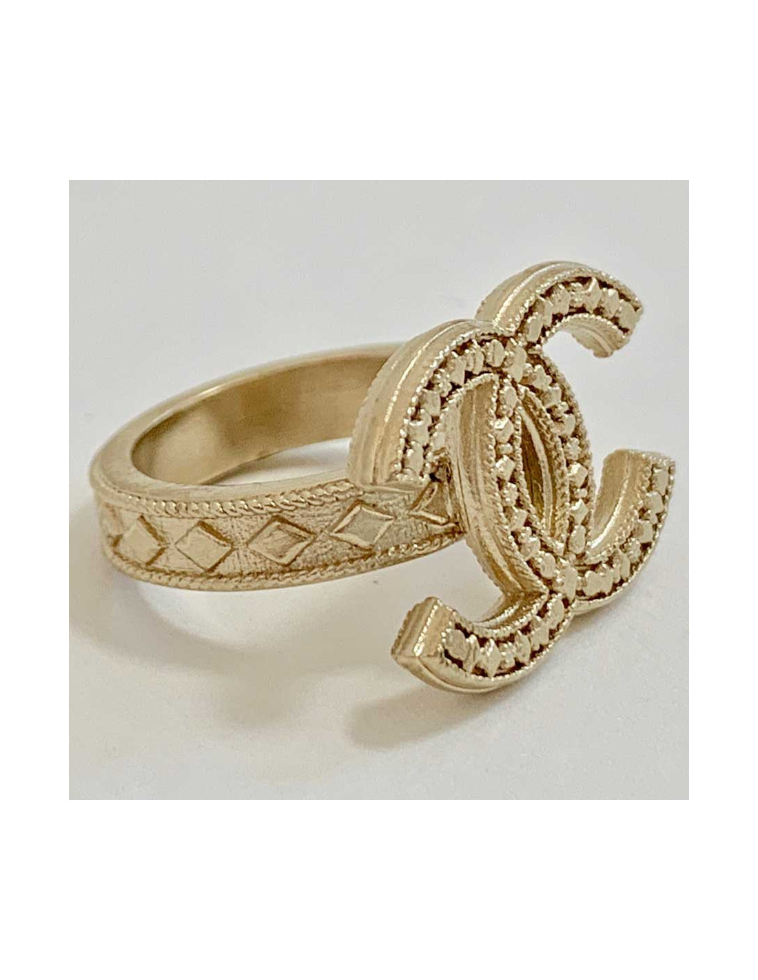 Un intemporel de la Maison CHANEL, bague CC en métal doré. Le métal est travaille avec raffinement.