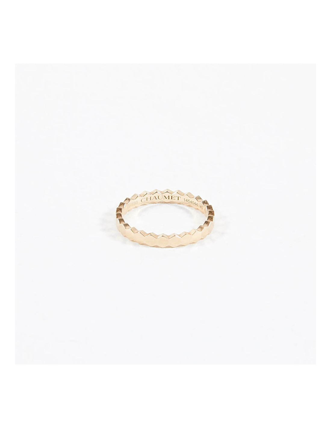 Cette bague taille 49, est une création géométrique de la Maison Chaumet, un clin d'oeil à la reine des abeilles "Bee my love". Etat neuf. Elle est en or rose 18 carats. Elle est numérotée.