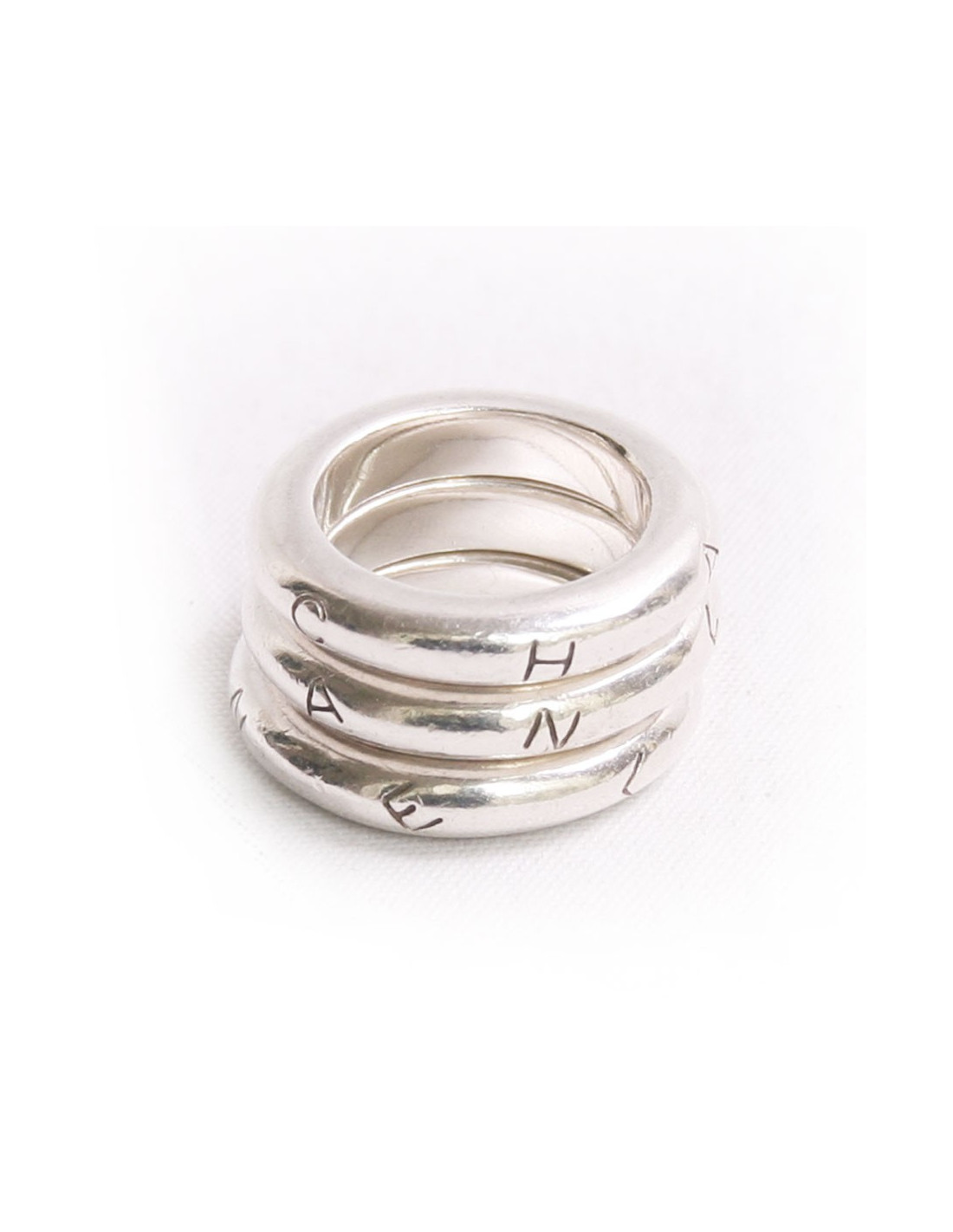 Les lettres C-H-A-N-E-L sont gravées sur les trois bagues.
