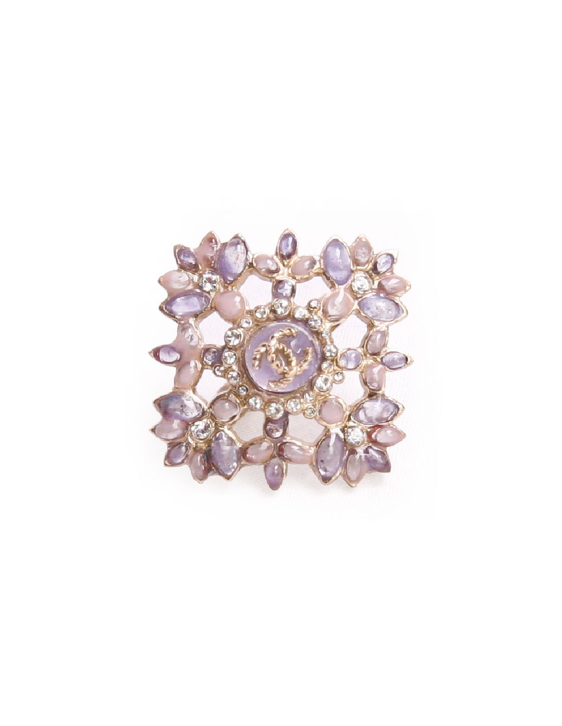 Belle bague t 54 ajustable dorée or pâle, de la Maison Chanel, en pâte de verre améthyste, rose pâle et strass, forme carrée, surmontée d'un double "C". Elle est en très bon état. Les mesures : 3 cm x 3 cm -Jamais portéé.