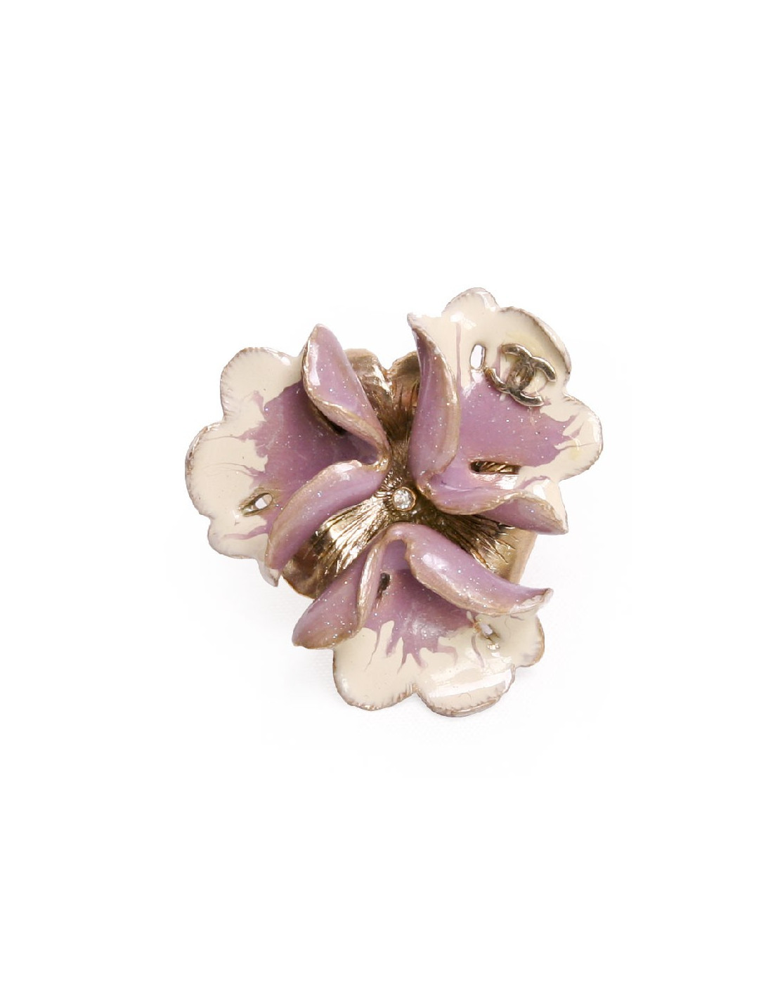 Bague Fleur CHANEL émail mauve et ivoire