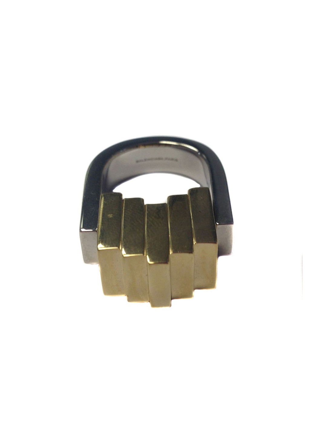 Très belle bague Balenciaga, taille 55, en acier palladium et doré. Très bon état