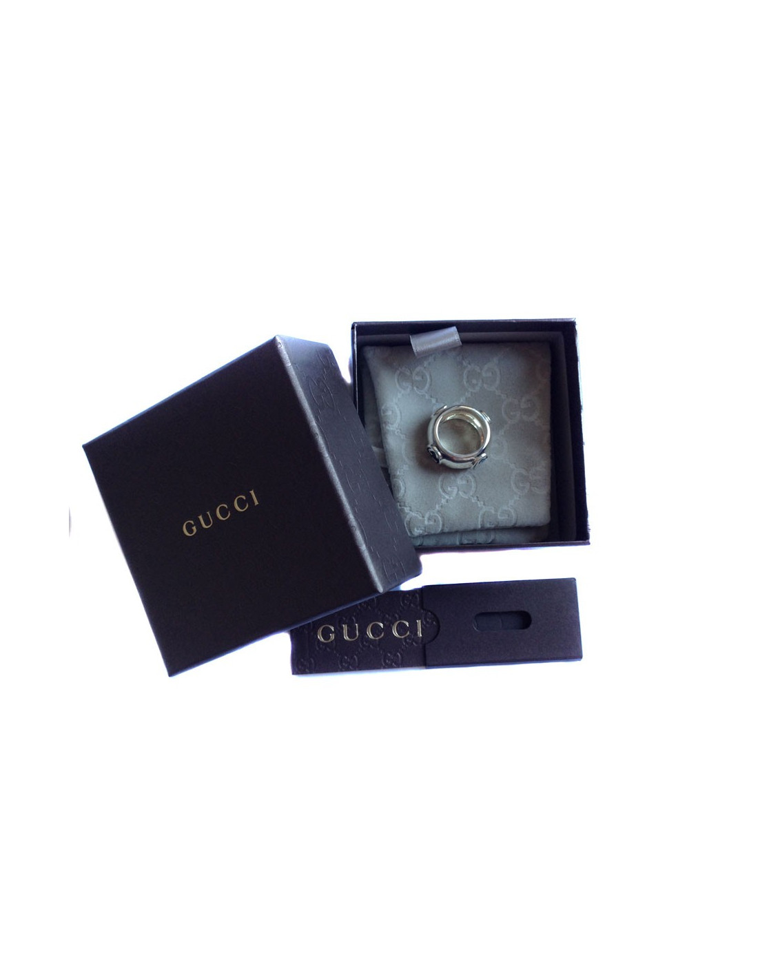 Très jolie bague Gucci, en argent 925 ornée de logos "GG" sur chaque face. En très bon état.