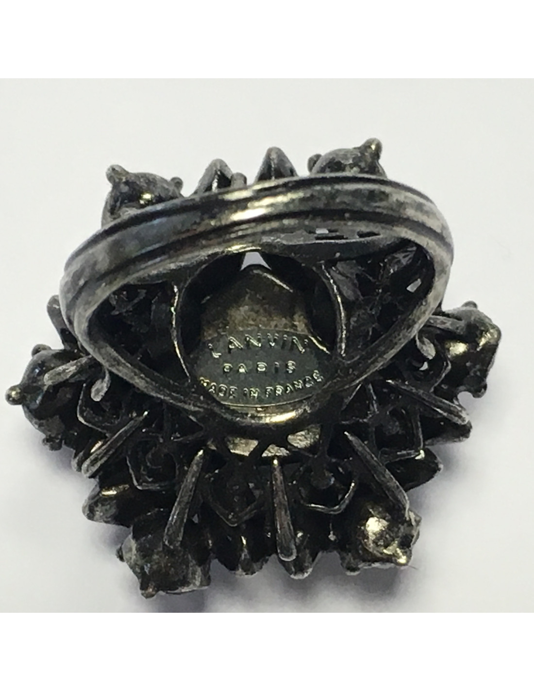 Bague LANVIN T 52 en métal argenté et strass blanc et or pâle