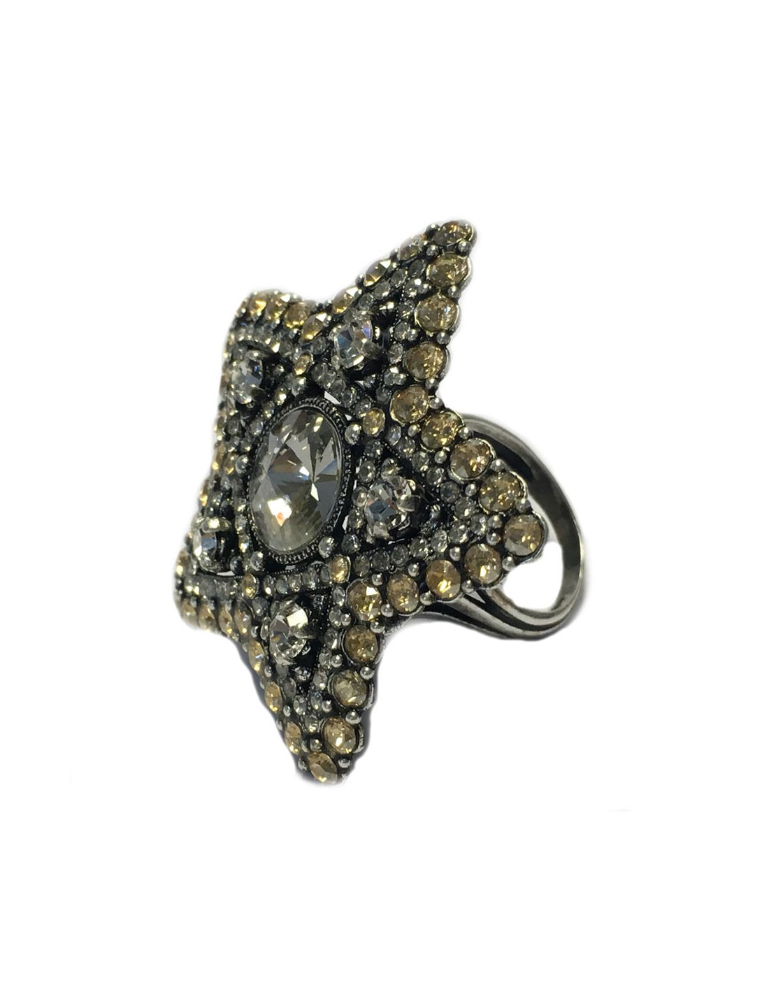 Bague LANVIN T51 étoile en métal argenté et strass blanc et or