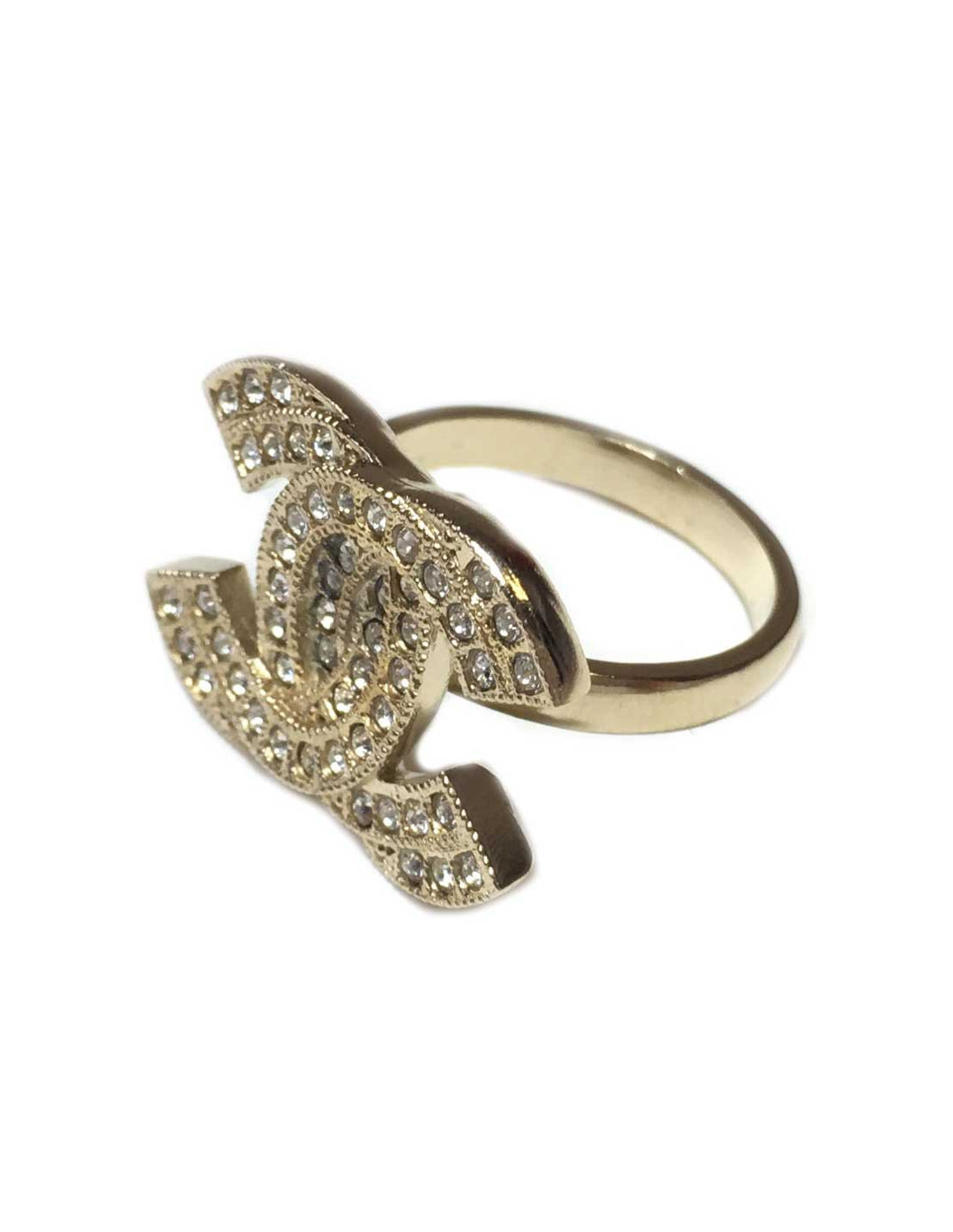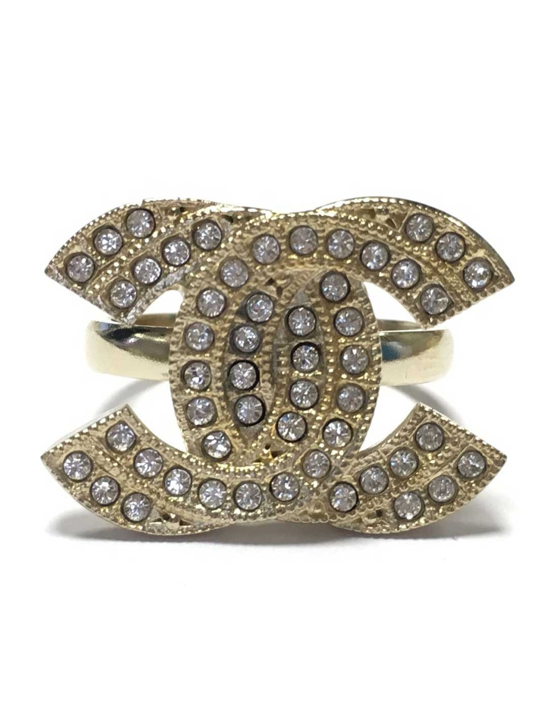 Très belle bague CHANEL CC en métal doré et sertie de strass Swarovski. Made in France, collection croisière 2015