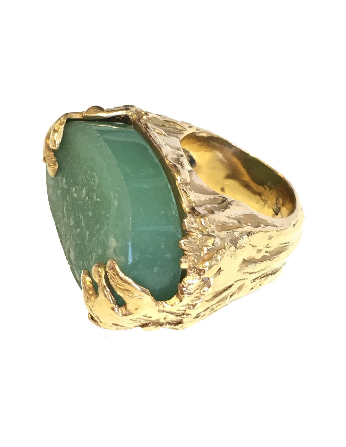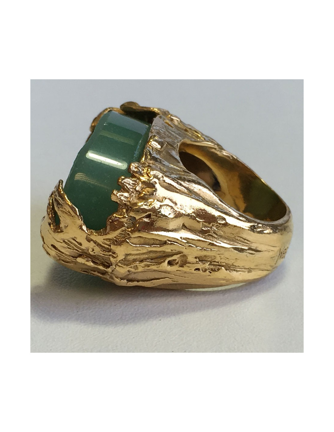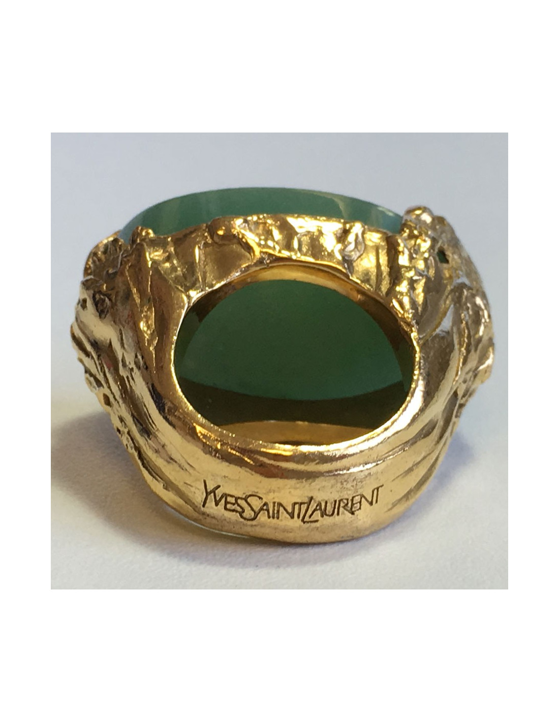 Bague YVES SAINT LAURENT vintage pierre vert jade T53