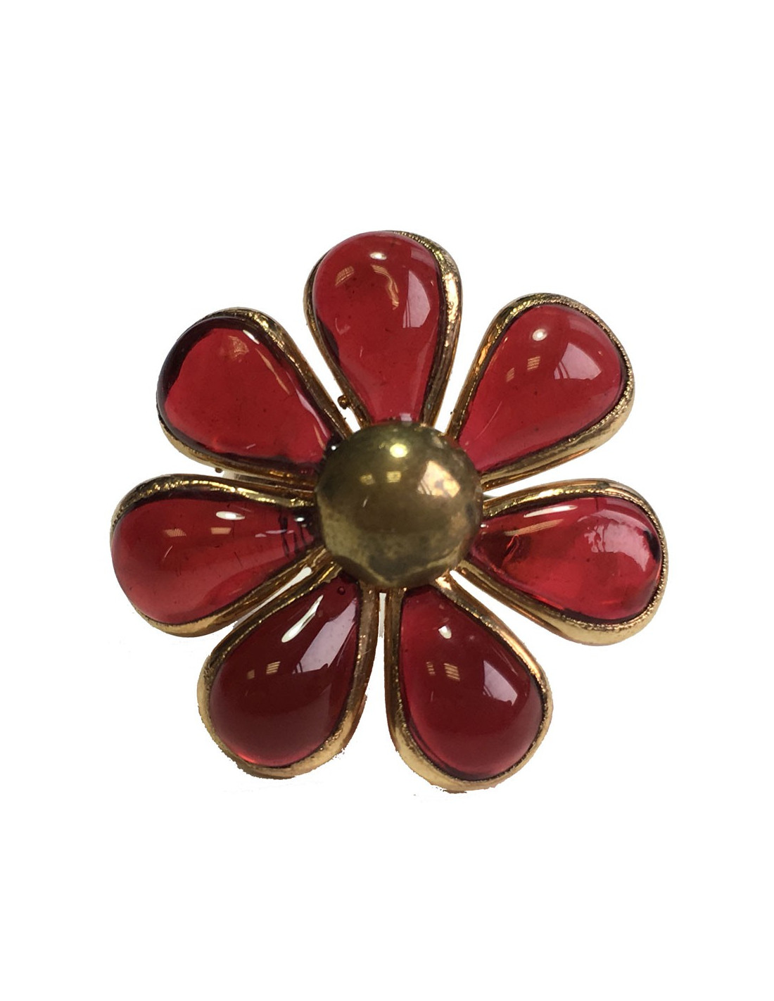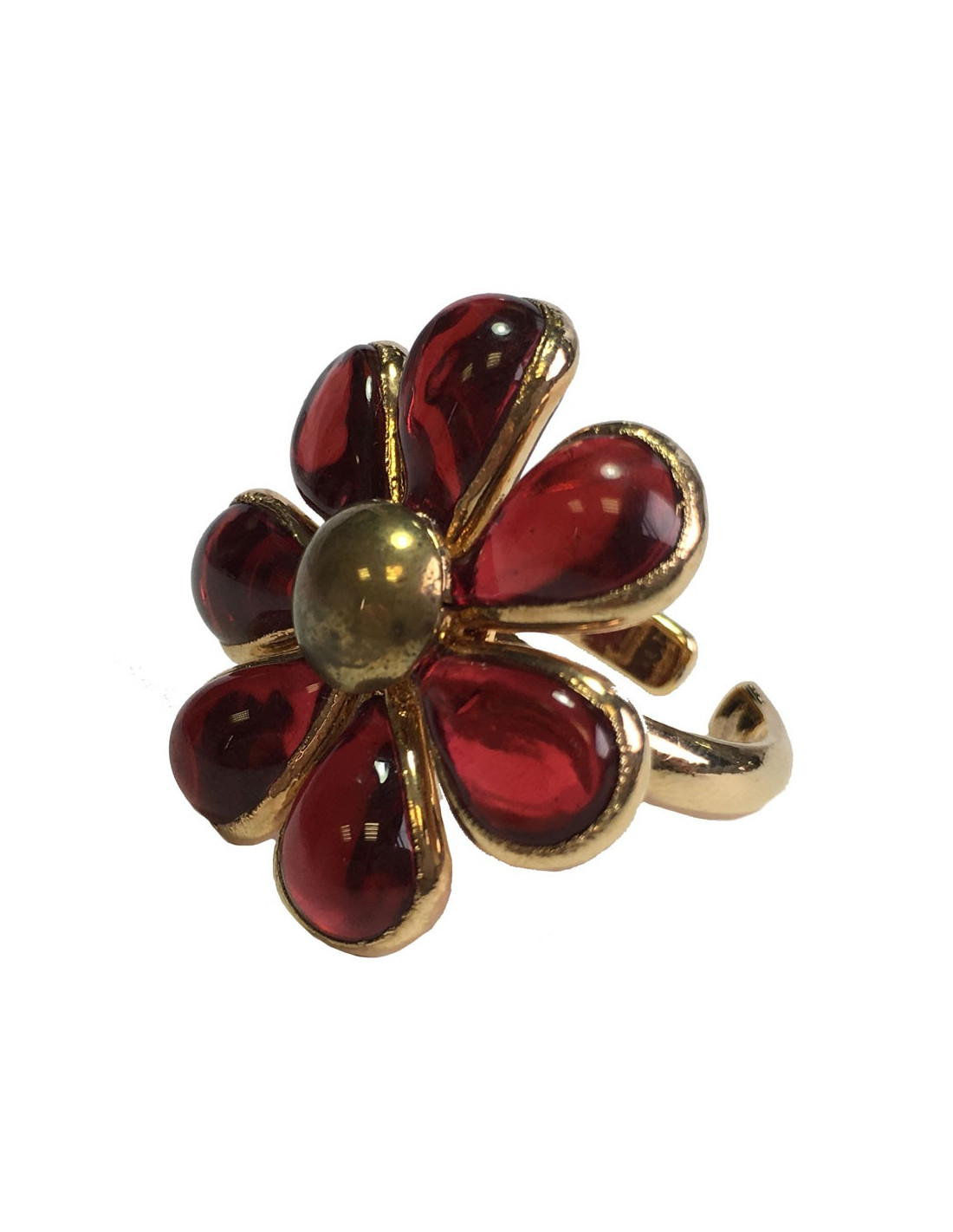 Bague MARGUERITE DE VALOIS fleur en pâte de verre rouge et métal doré à l'or fin.