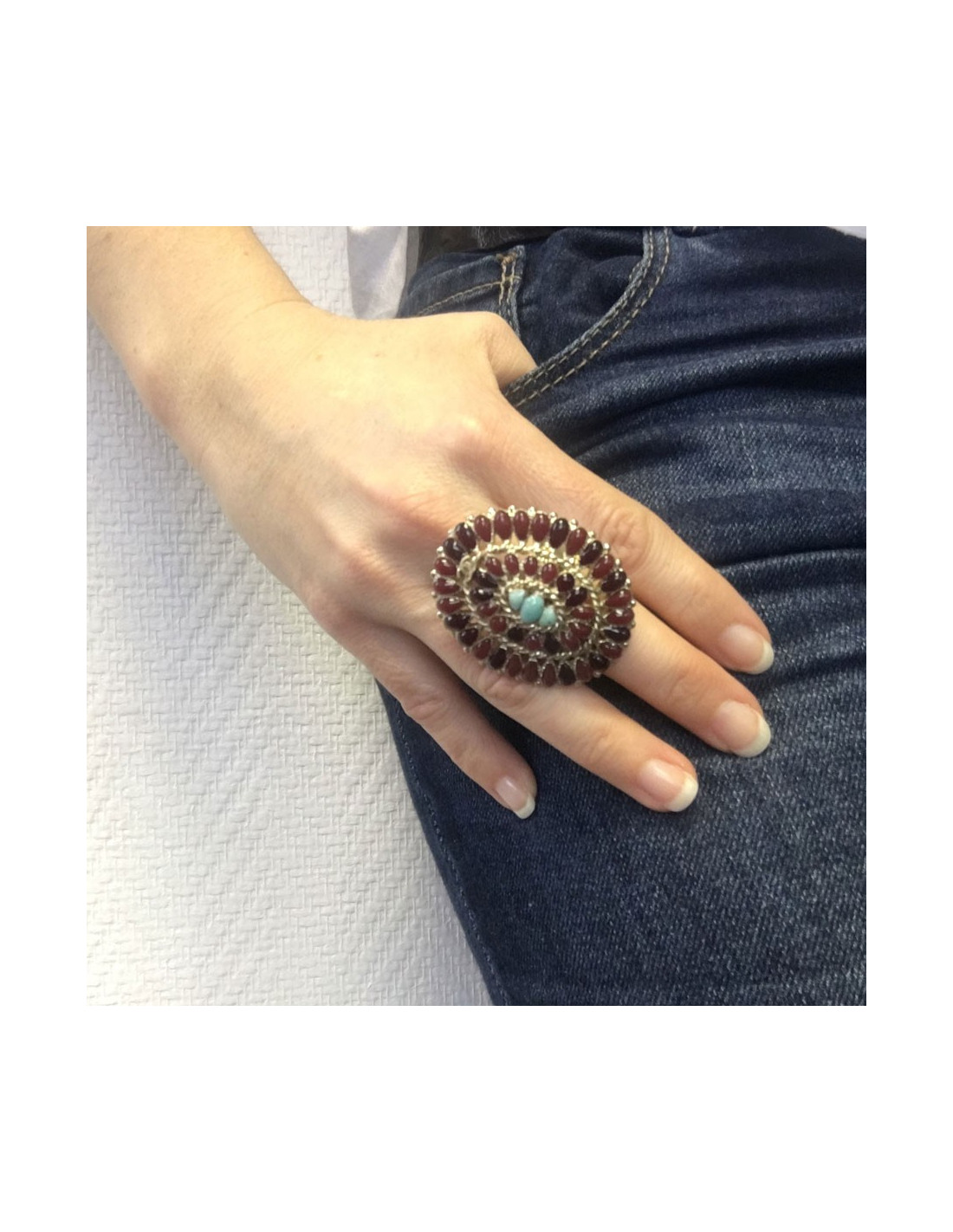 Dimensions : diamètre intérieur : 1,9 cm - taille du bijou en pâte de verre : 5x4 cm