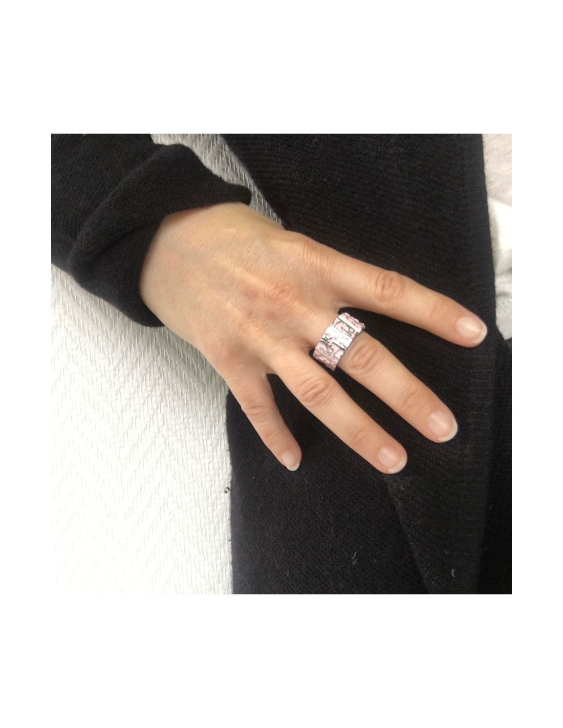 Belle bague DIOR monogram en émail rose et métal argenté. Taille 54.