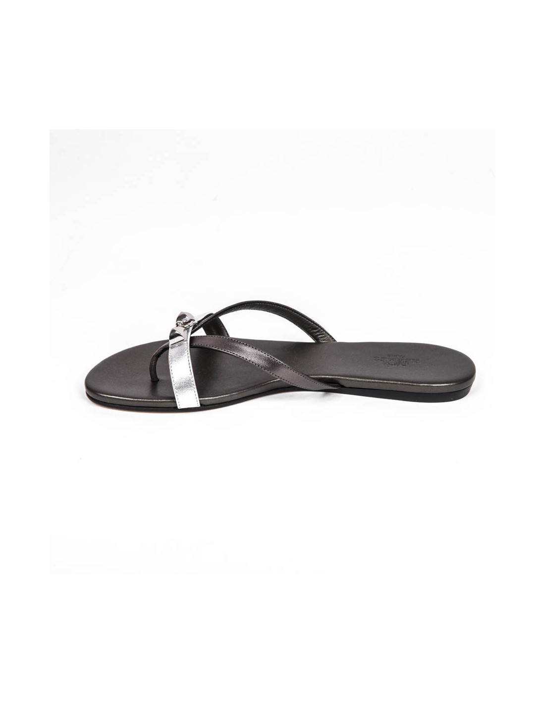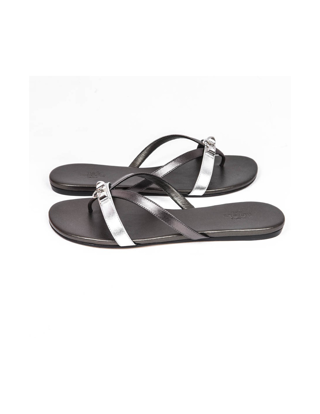 Sandales "Corfou Nappa" Hermès cuir métallisé canon de fusil et argent avec une