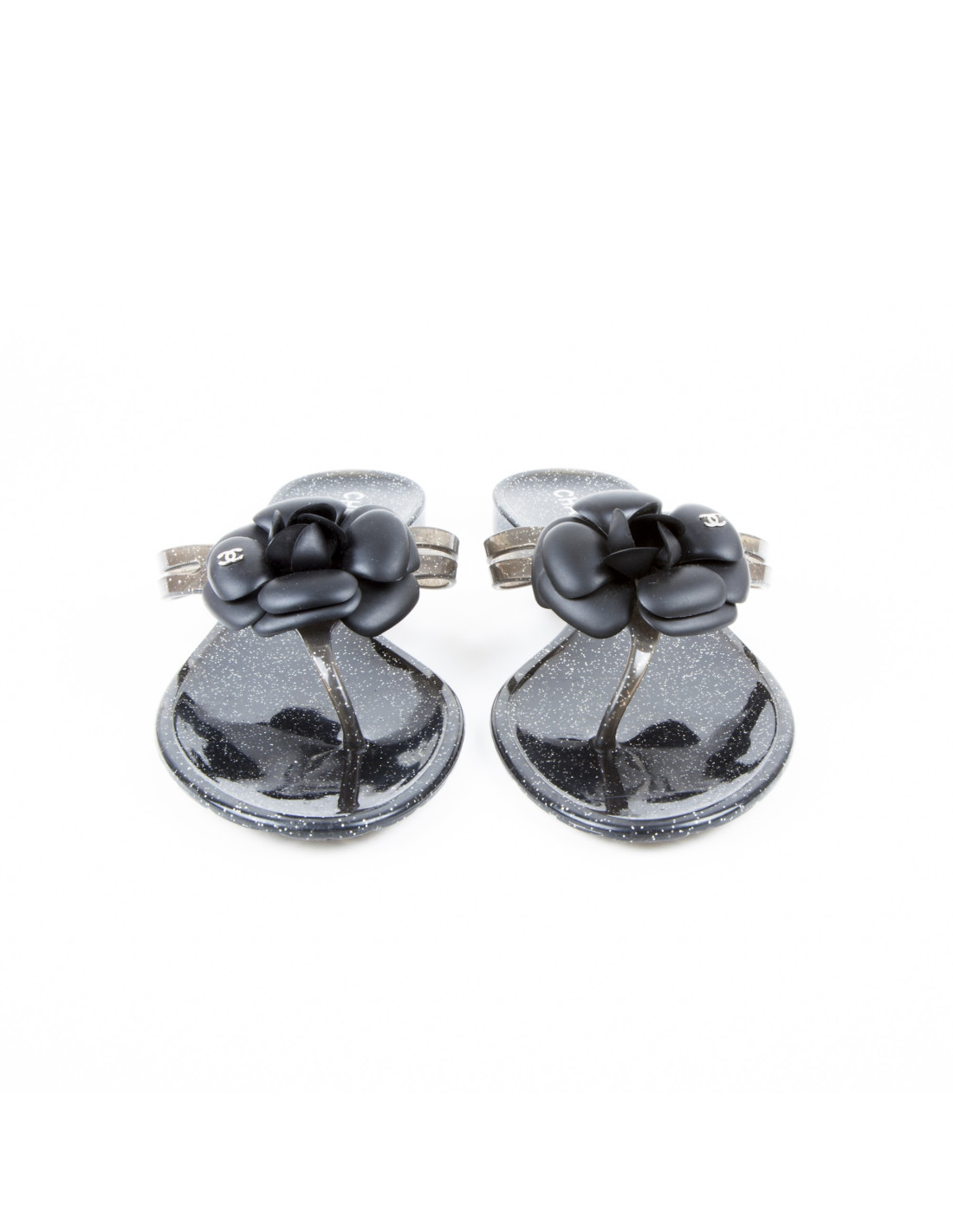 Sandales CHANEL T 40 noires avec inclusions de paillettes
