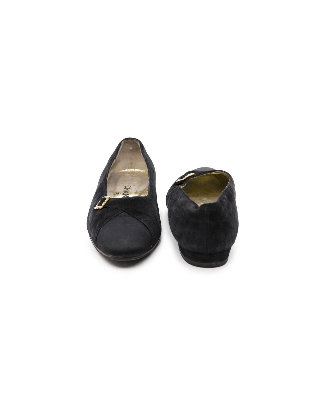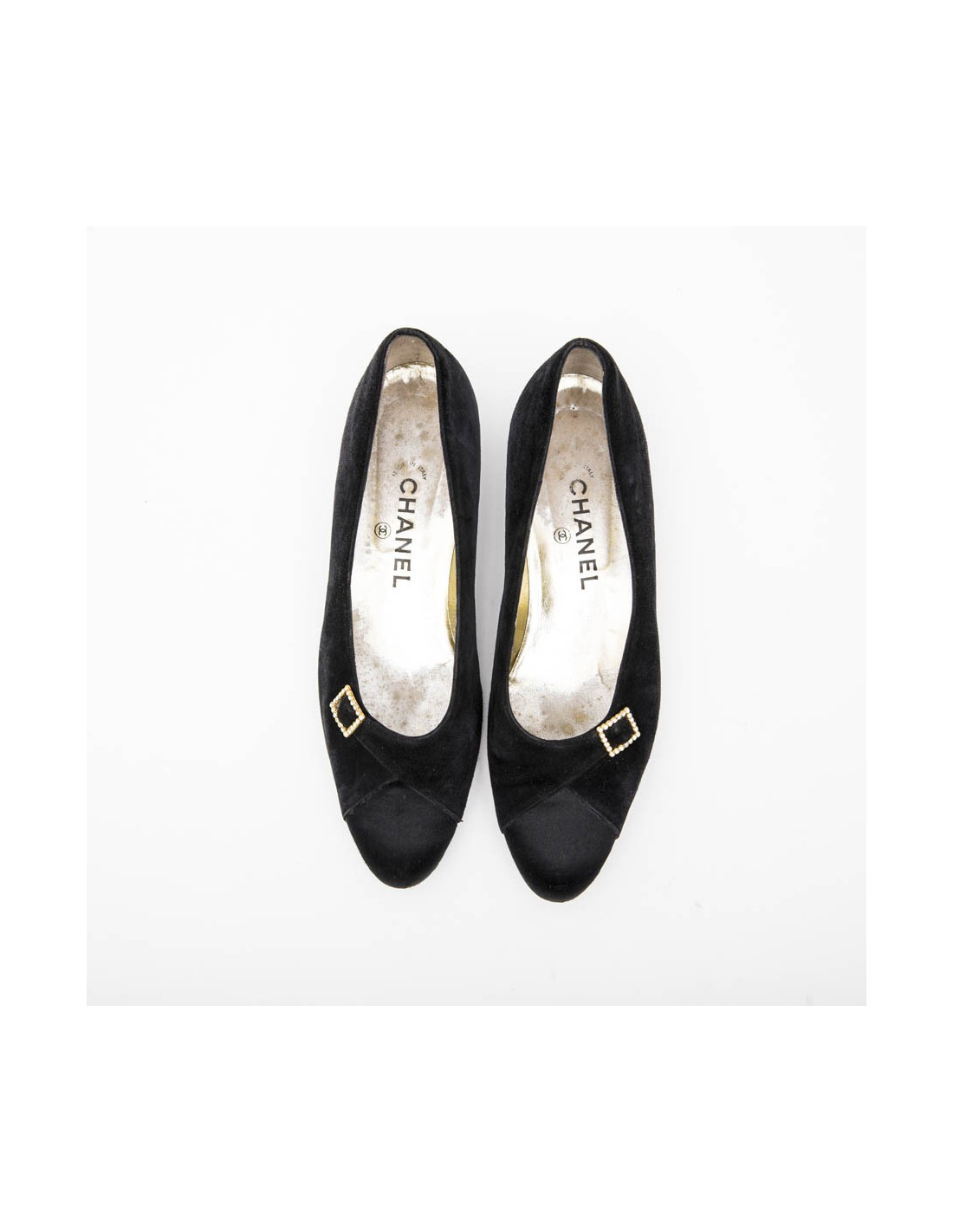 Ballerines Couture Chanel en veau velours et satin bleu marine . Taille 39.