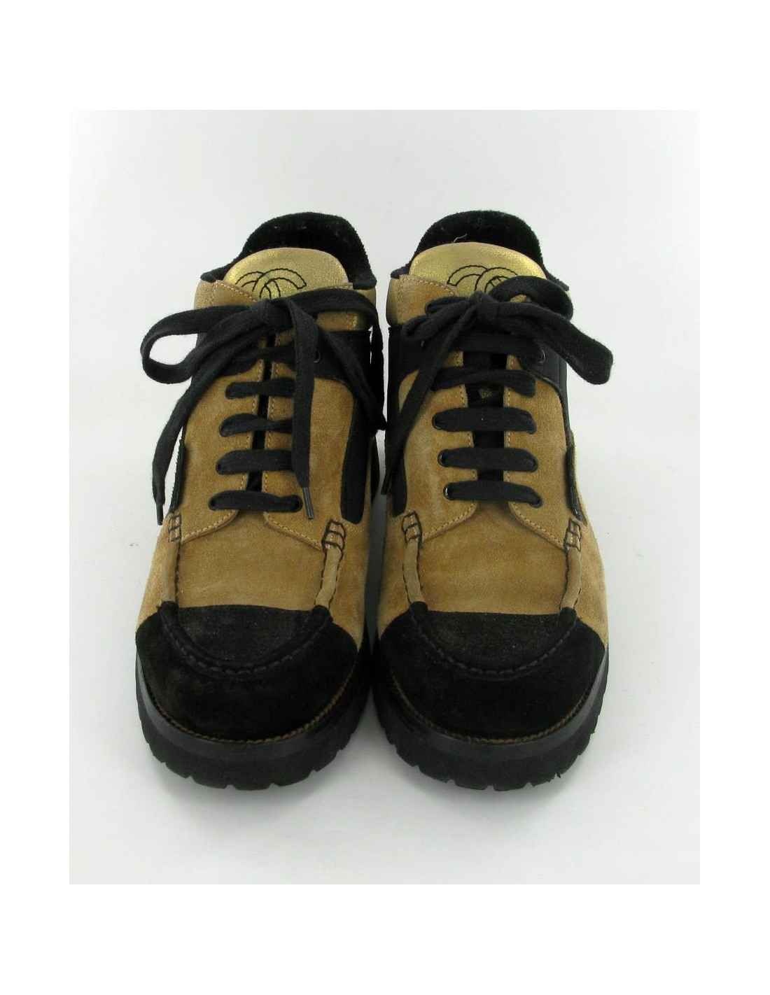 Baskets CHANEL bicolores : noir et beige et doré T38.5